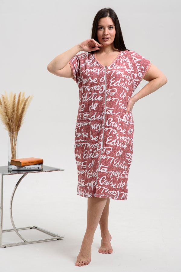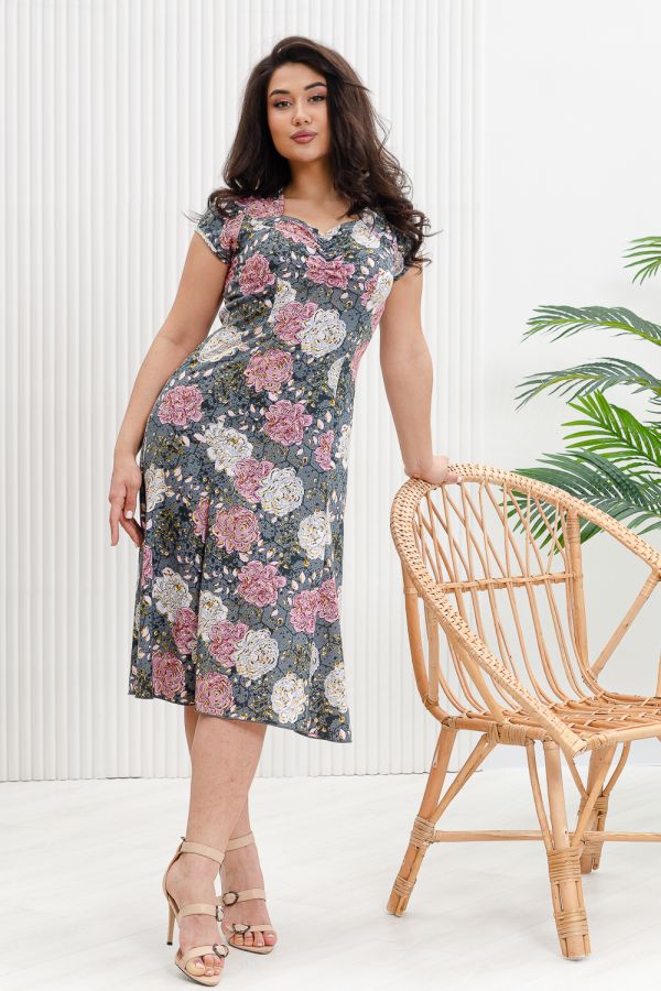Легкое летнее платье из кулирки. Три варианта дизайна — пионы, орхидеи и сакура, рукава короткие, общая длина платья чуть ниже коленей. Размеры от 48 до 66.