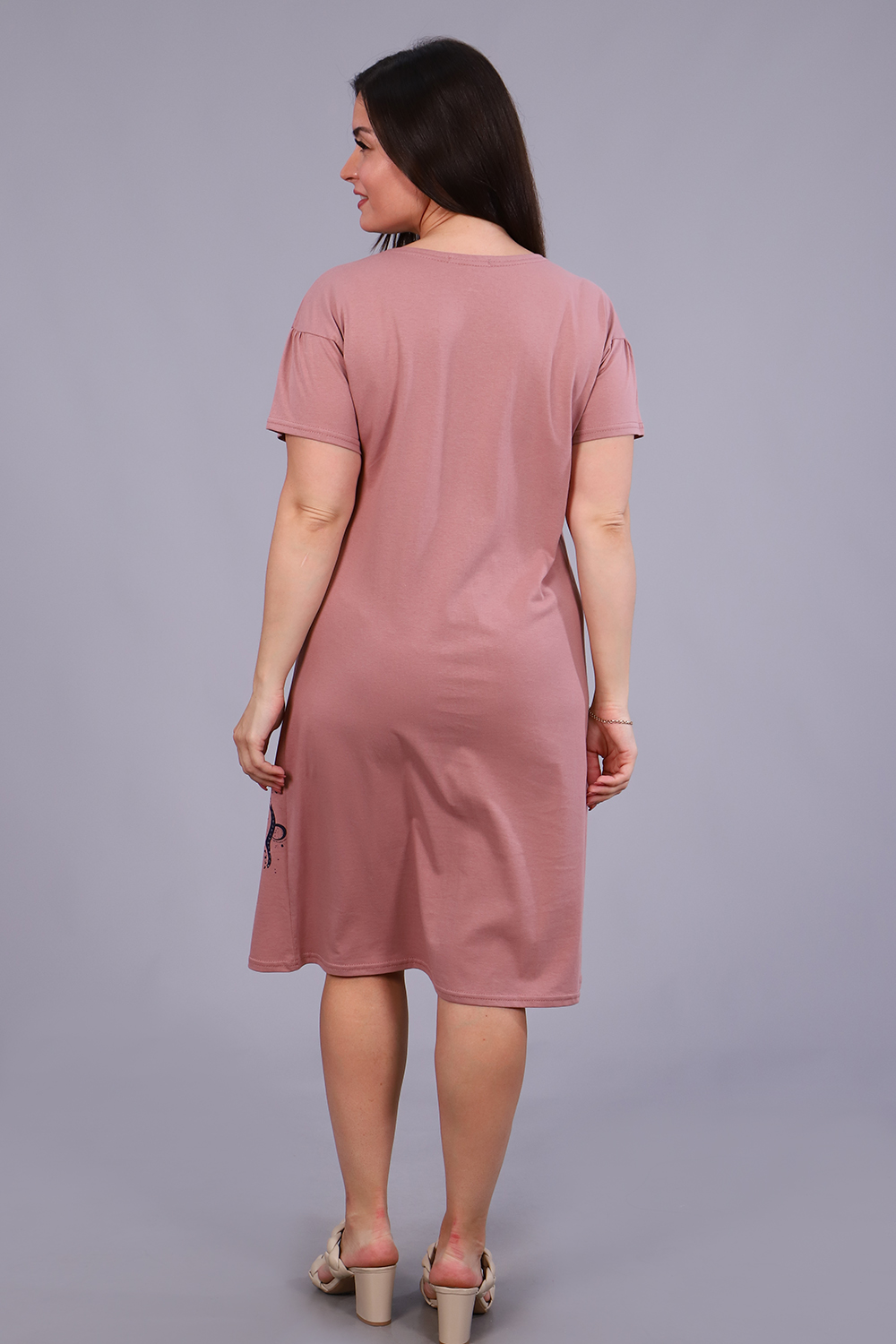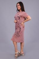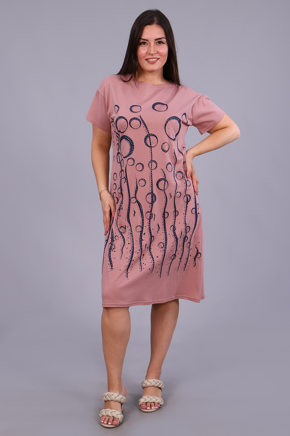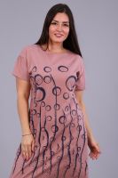Платье женское с принтом из приятного к телу трикотажа. Модель полуприлегающего силуэта, круглая горловина, спущенное плечо, фигурная пройма, короткий слегка присборенный свободный рукав. Уютное, мягкое платьице необходимая вещь в гардеробе любой женщины, подойдёт для дома, отдыха и приятных прогулок.