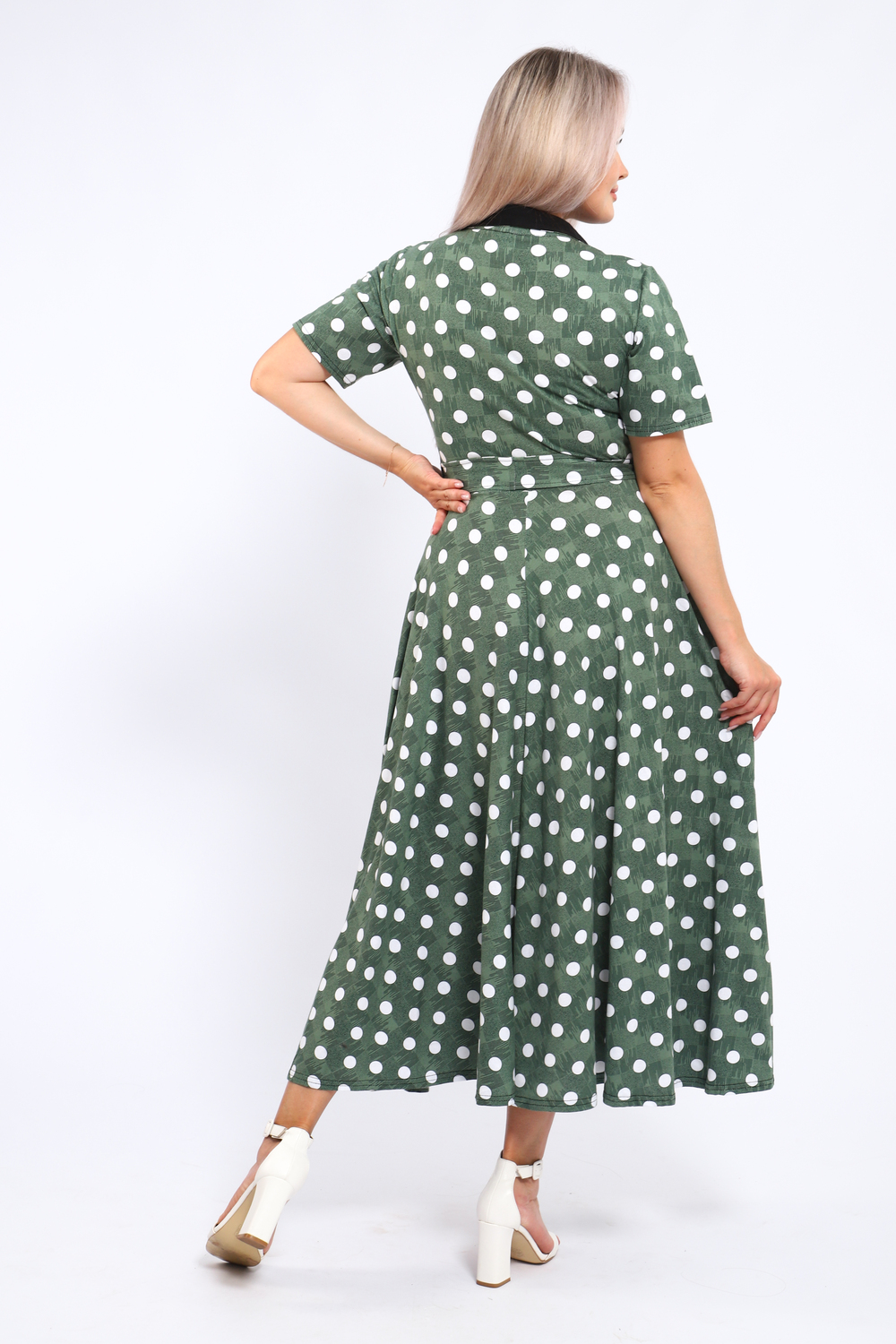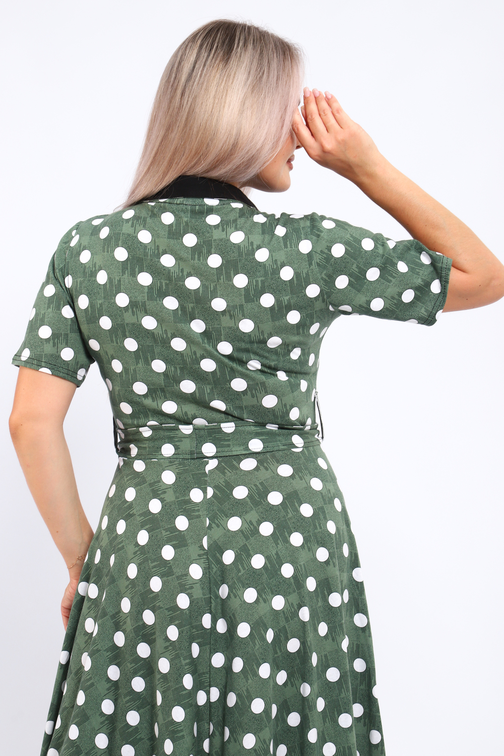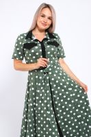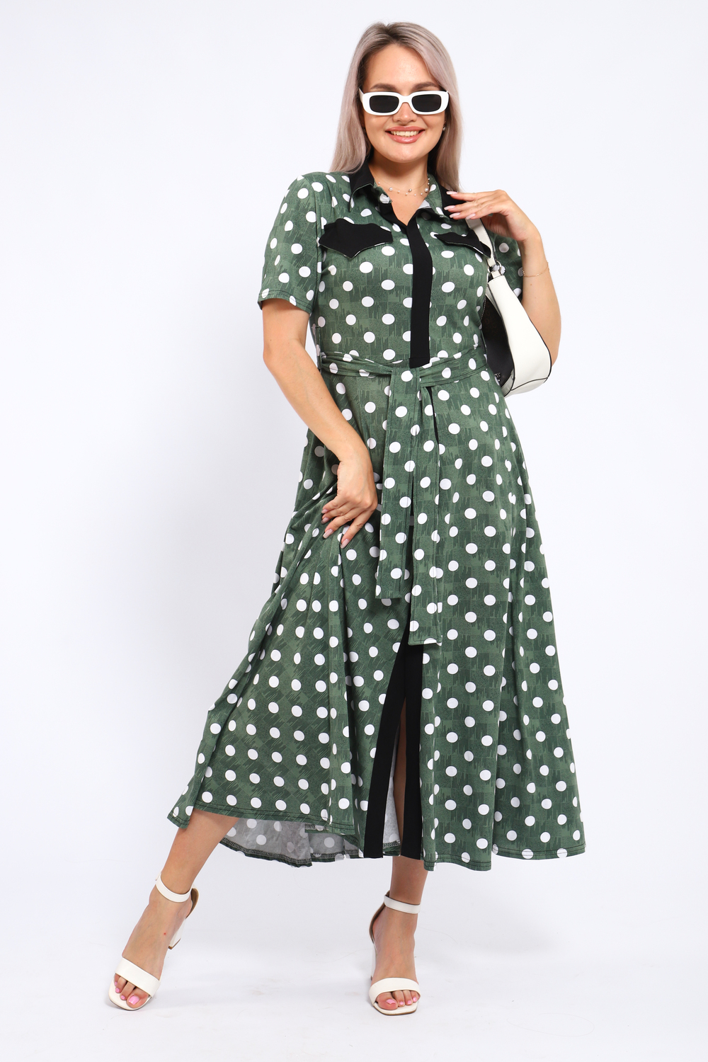 Платье, которое сочетает в себе комфорт и уникальный дизайн. Модель выполнена из мягкого материала, что делает её идеальной для повседневной носки. Свободный крой с расклешённой юбкой и акцент на талии с помощью пояса создают воздушный и женственный силуэт. Контрастное сочетание жёлтого и чёрного в гороховом принте — смелое и при этом очень гармоничное решение. Это платье — отличный выбор для прогулок, встреч с друзьями или офиса. Носите его с босоножками на каблуке для создания изысканного образа или с кедами для более расслабленного стиля.