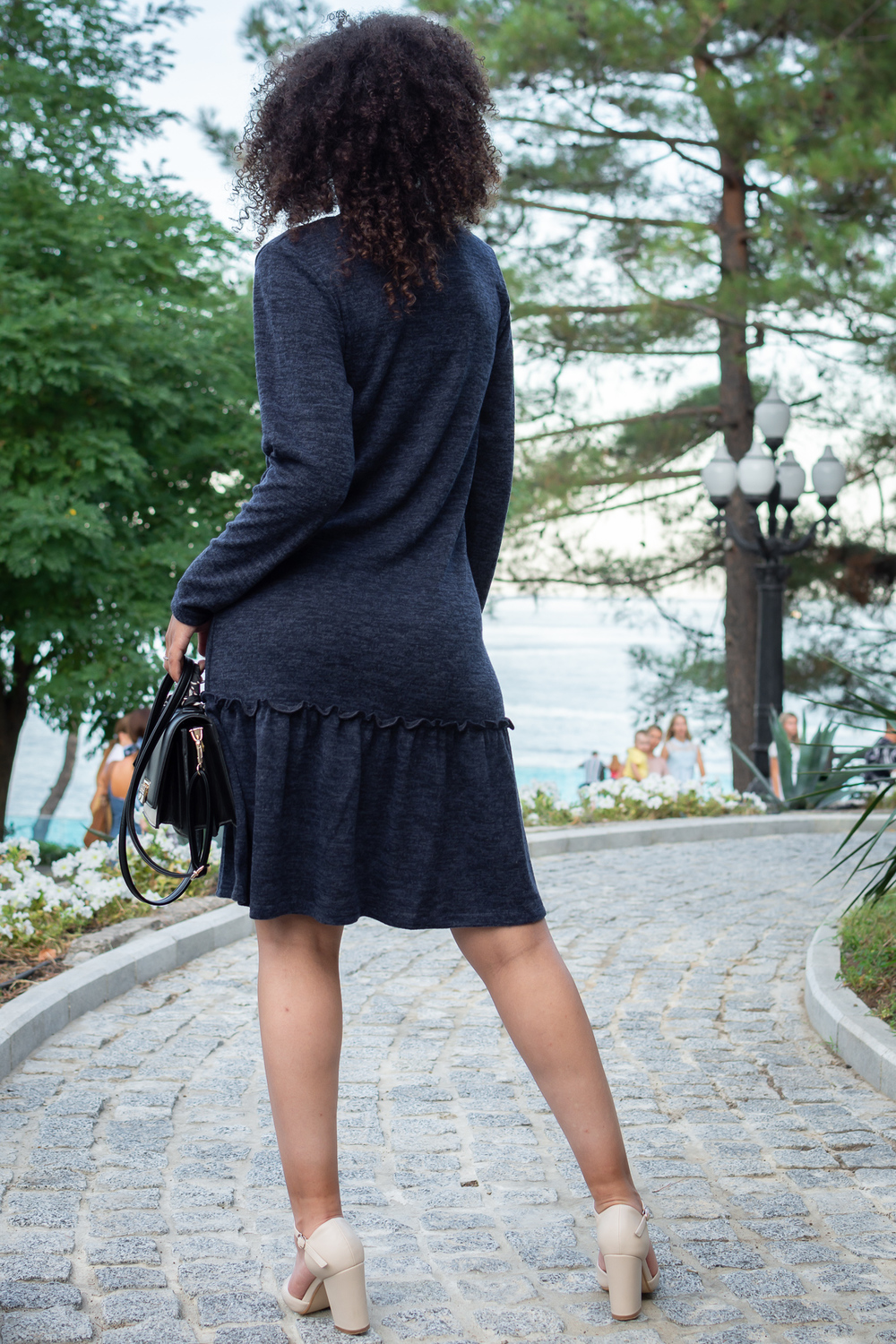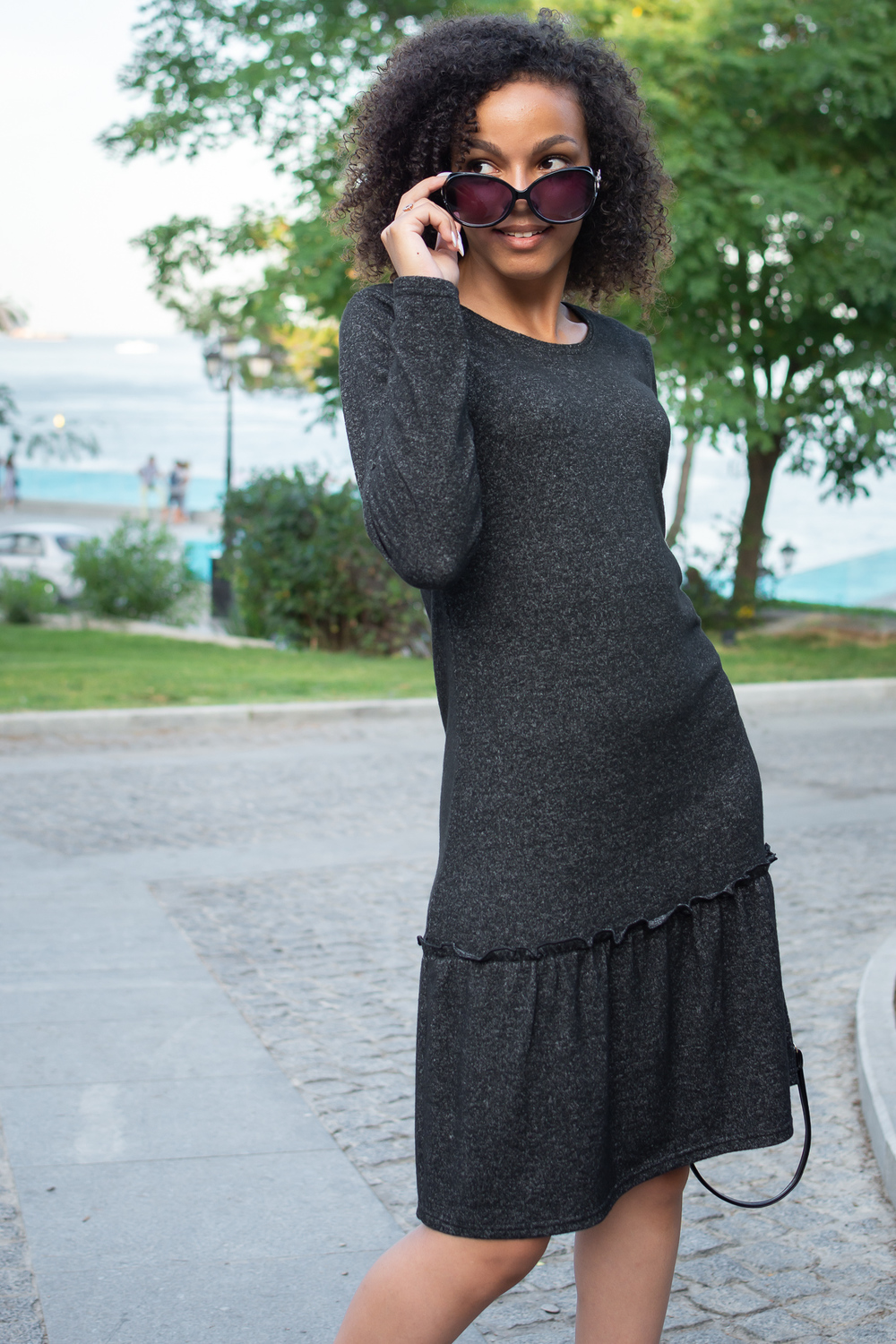Повседневное платье из кашемира. Легкое и теплое! Волан украшает платье, придает образу романтичности.
