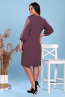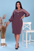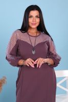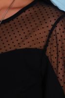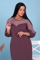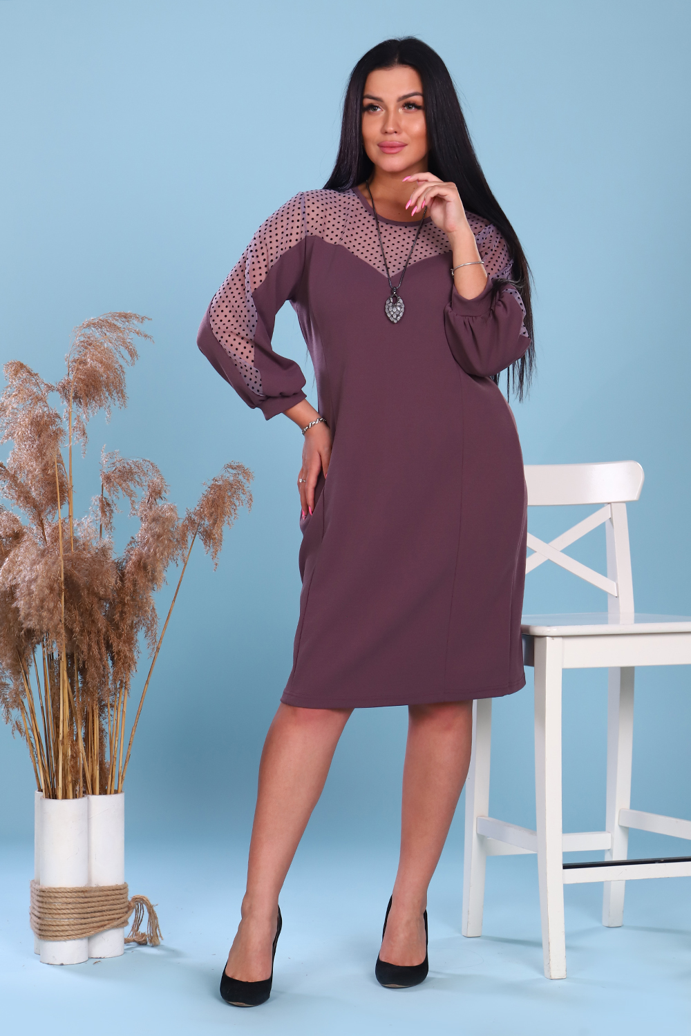 Платье женское - горловина круглая под окантовку, по груди и рукавам сетка в горошек, рукав 3/4 на манжете. Платье с рельефом по переду, длина до середины колена, по спинке шов. На модели 50 размер. Аксессуары в комплект не входят