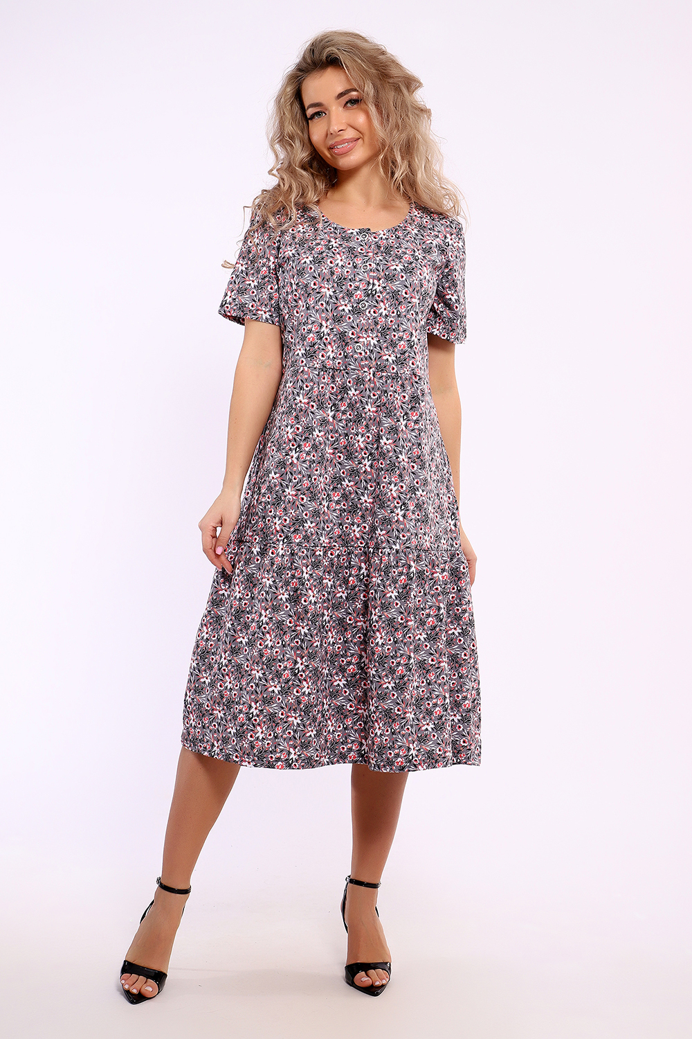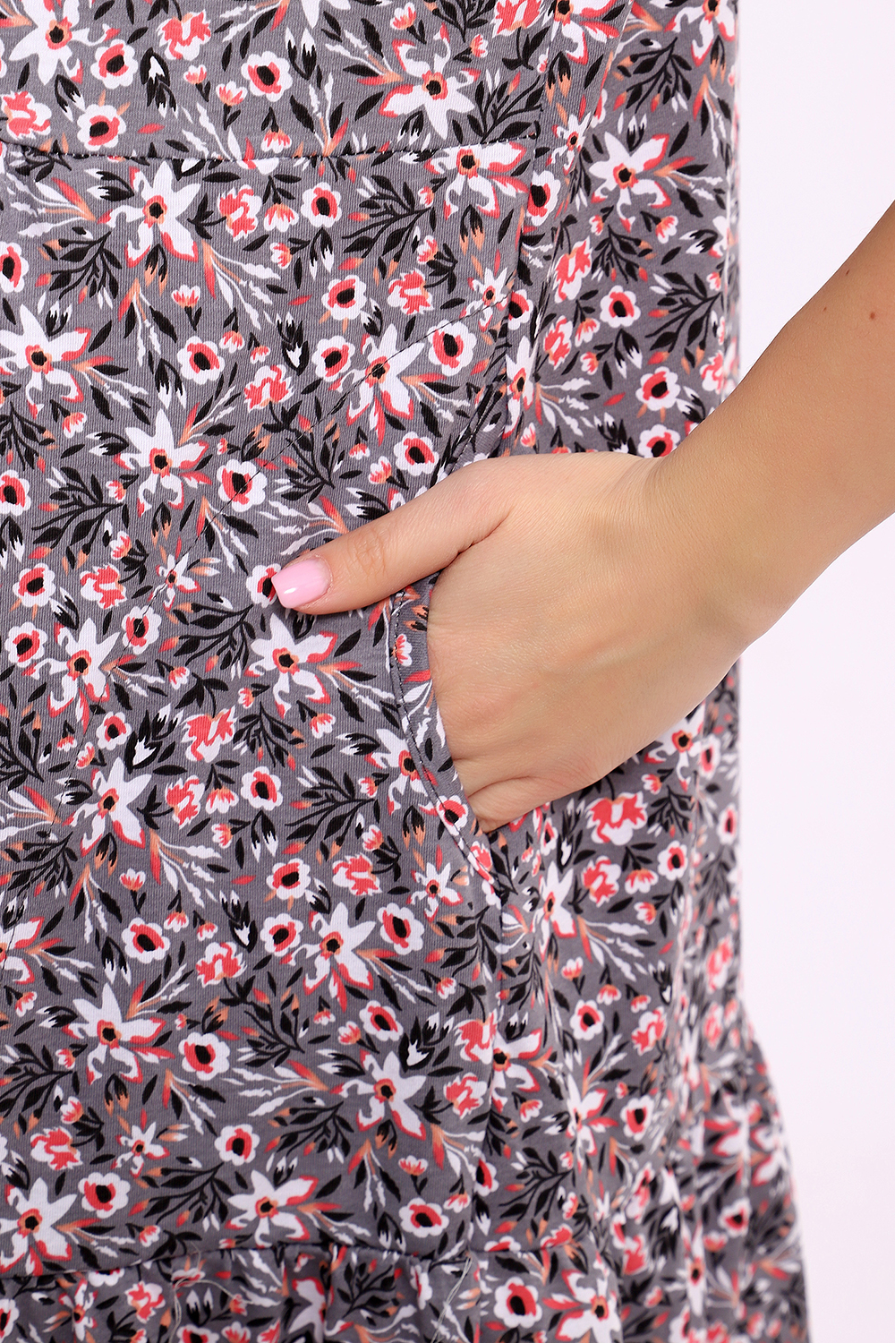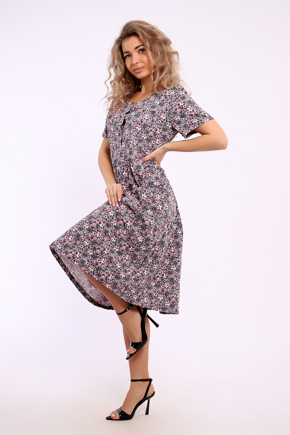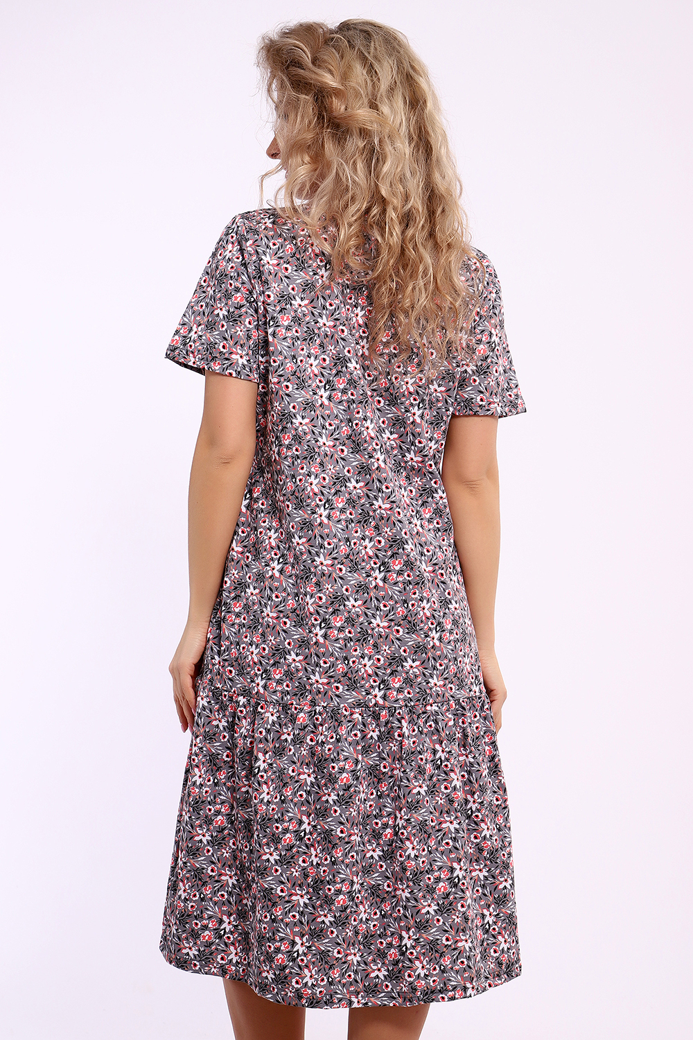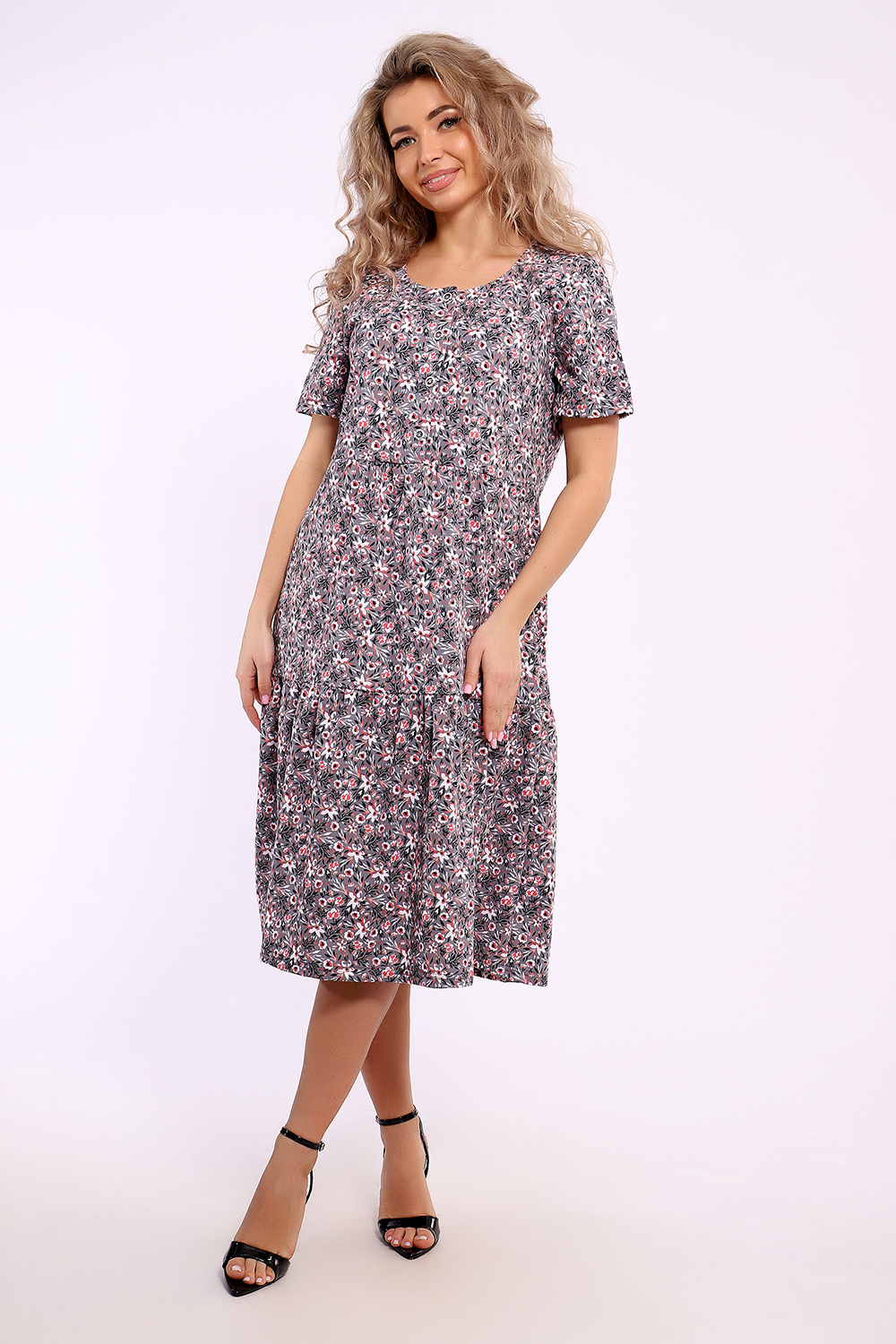 Платье трикотажное из хлопковой кулирки в стиле кантри, в верхней части застегивается на пуговицы. Рукав до локтя.