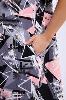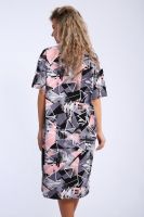 Платье свободного прямого кроя, рукав короткий, два боковых кармана. Яркий геометрический рисунок.