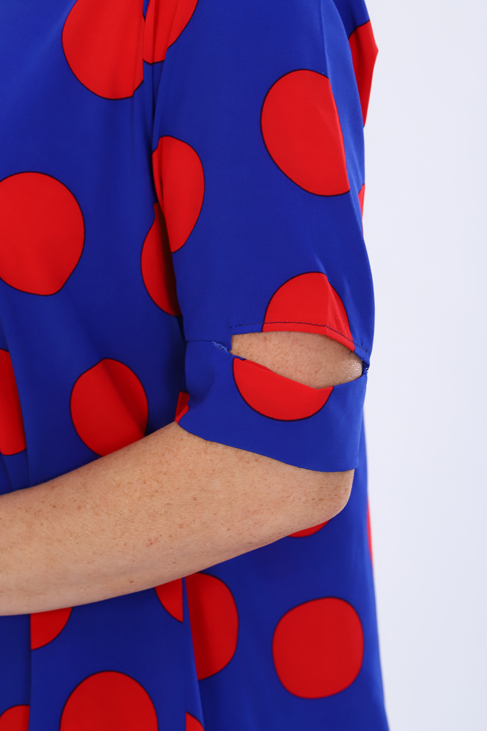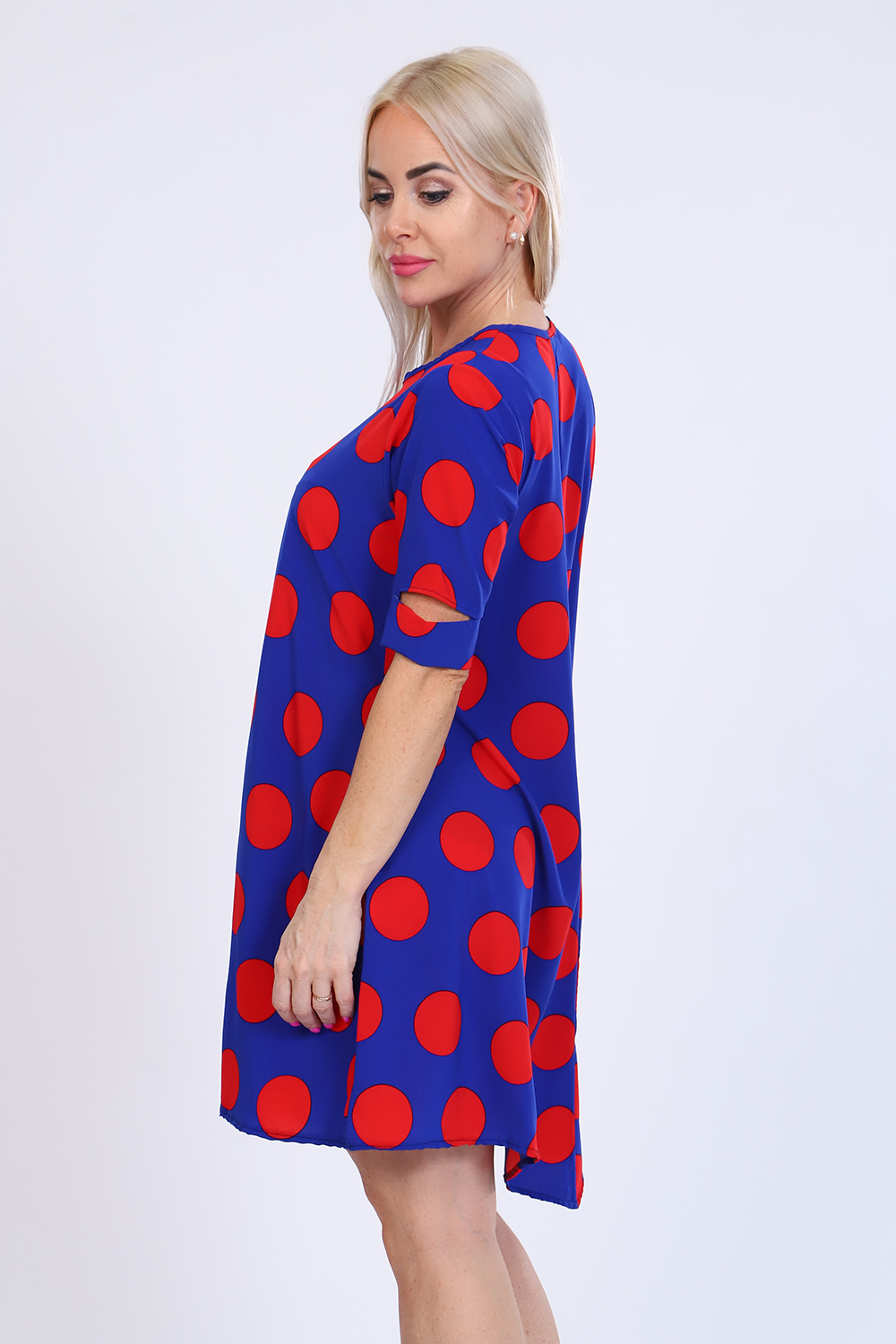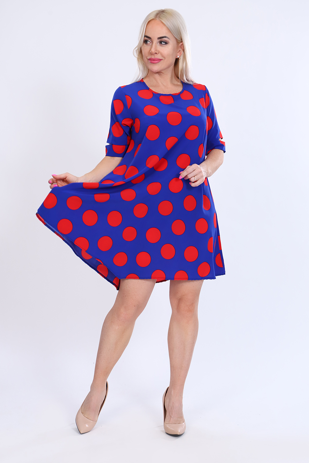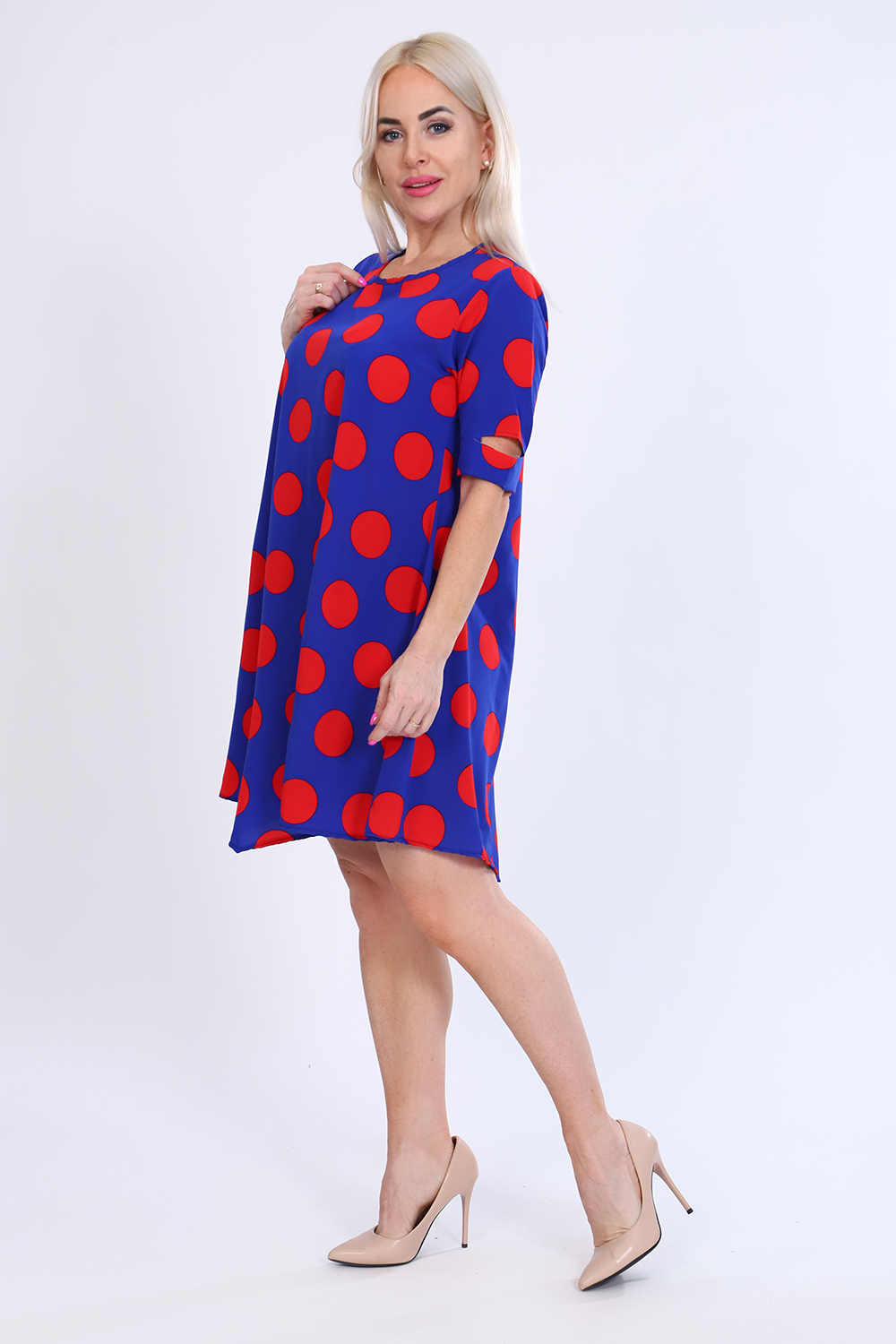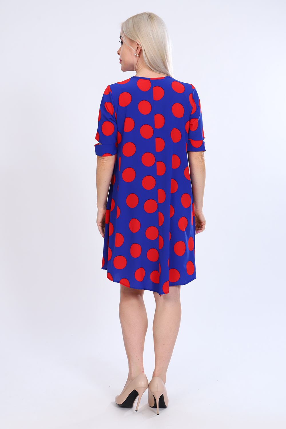 Платье женское расклешенного силуэта, округлый воротник, короткий рукав, задняя полочка длиннее передней. Легкое и удобное.