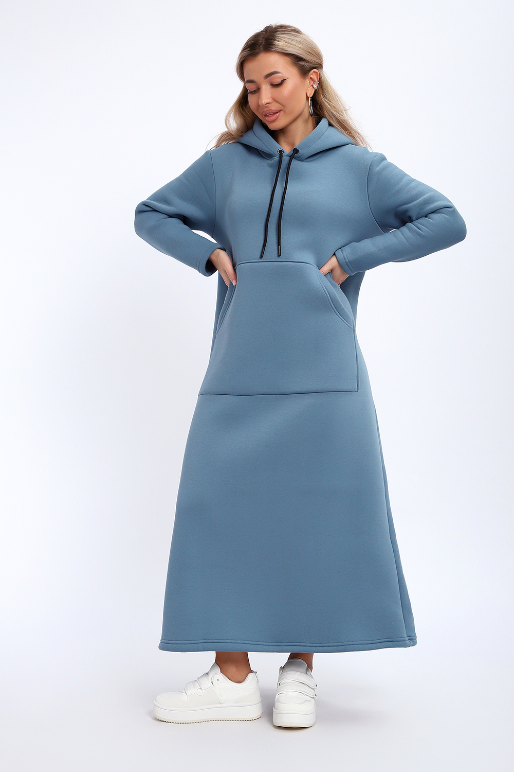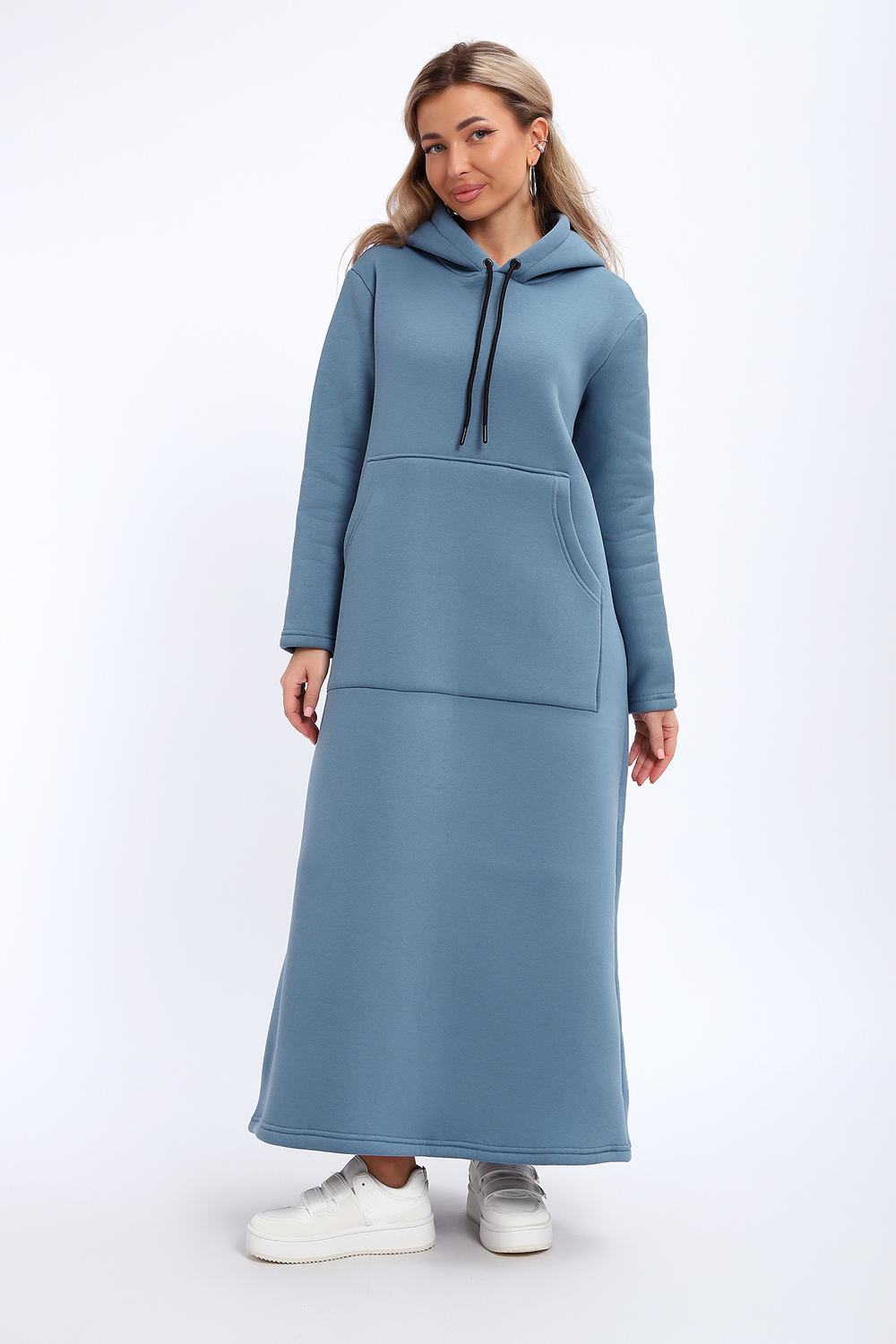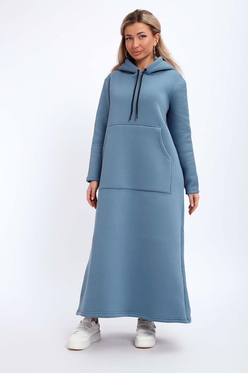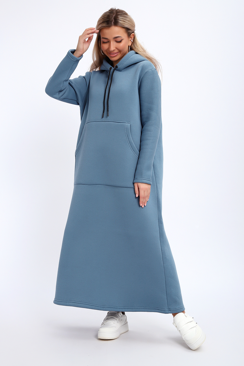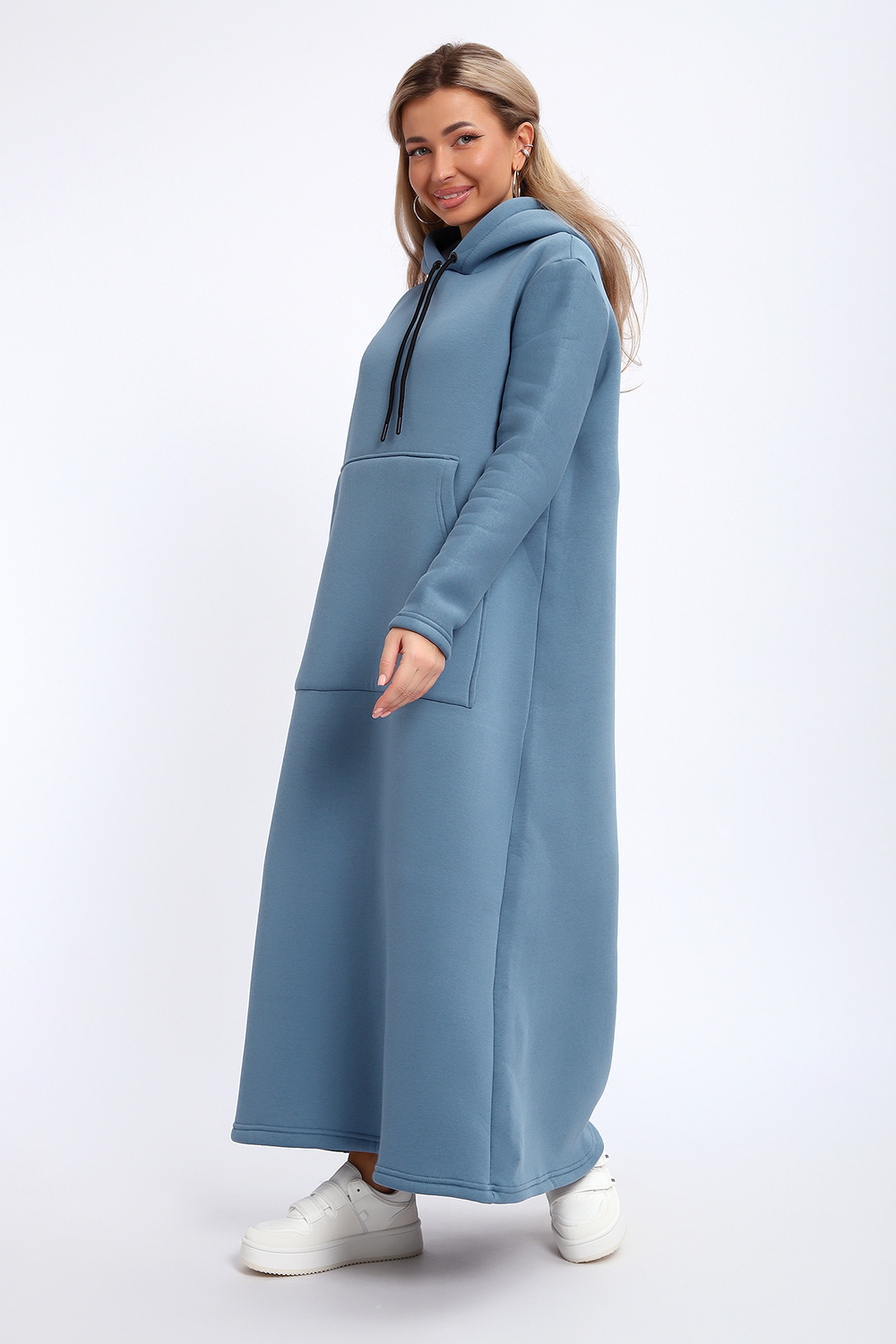 Стильное спортивное платье свободного силуэта изготовлено из мягкого, хлопкового 3-х ниточного футера качества карде с начёсом, который имеет большую плотность (320 гр/м кв), Длинный рукав, карман кенгуру очень удобны и функциональны