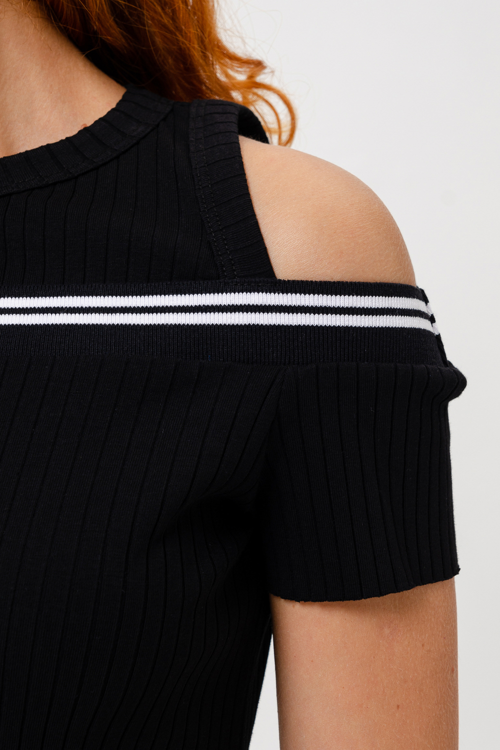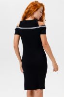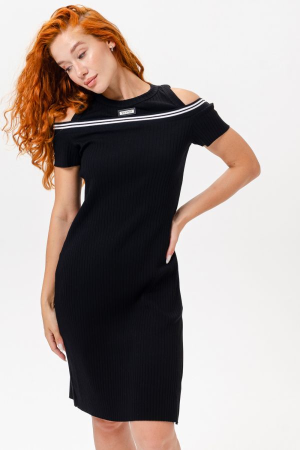 Женское платье из лапши полуприлегающего силуэта. Кокетливые вырезы для плеч делают платье особенным.