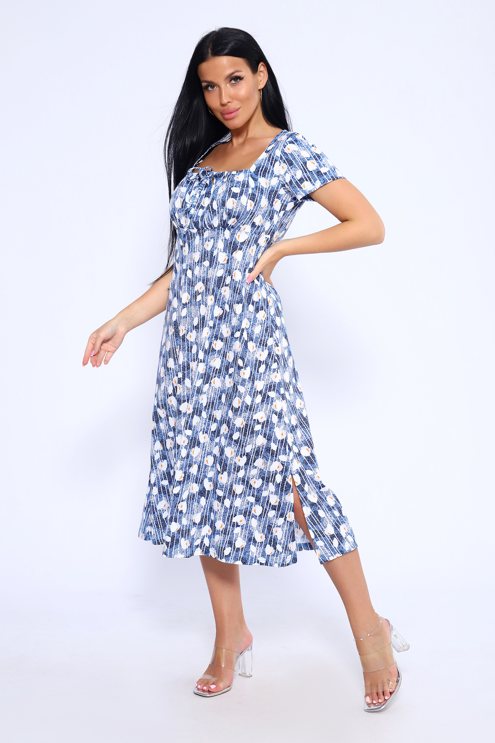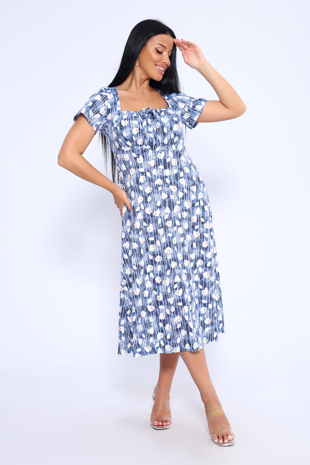 Длинное романтичное платье с короткими рукавами, декорировано квадратным вырезом декольте с завязками на груди. Милое, воздушное платье ниже колена с разрезами по боковым швам. Платье имеет свободный крой А-силуэта, который подходит для разного типа фигуры. Модель подойдет для прогулок, отдыха на пляже. Параметры модели 165 см,97-71-101 На модели представлен 46 размер.