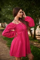 Платье женское с завышенной линией талии, длинным рукавом на эластичной тесьме.