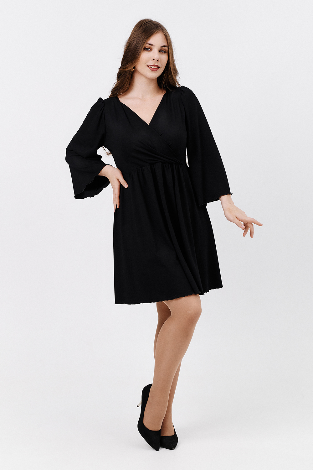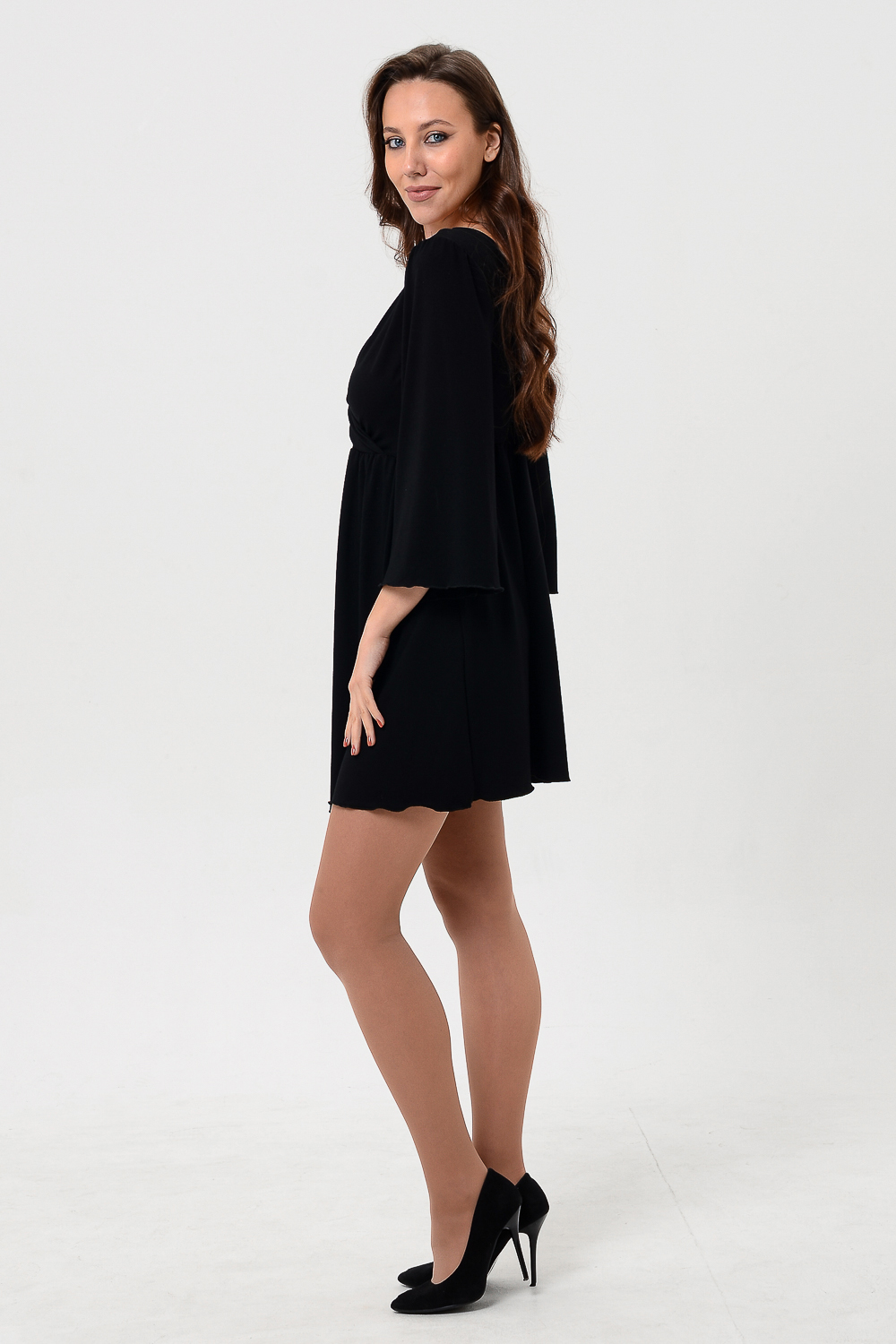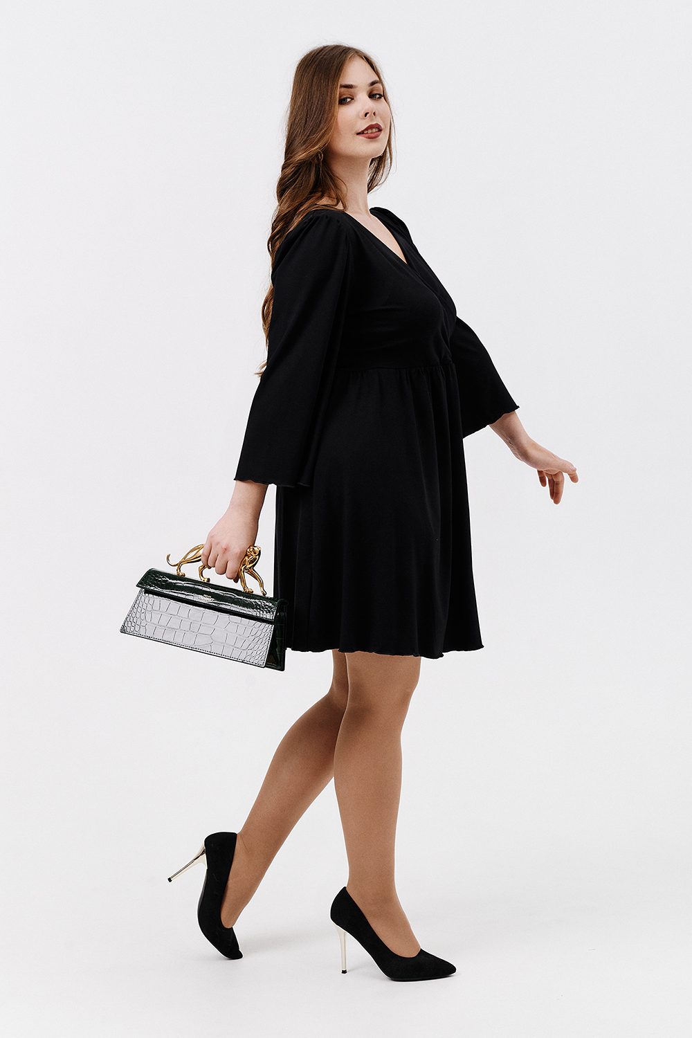 Стильное черное маленькое платьице подойдет не только как вечерний наряд на праздник, но и как классическое в офис. Дополнив данную модель другими аксессуарами или контрастным ремнём, ваш образ может выглядеть по-разному каждый день. Длина платья измерена по спинке и от плеча