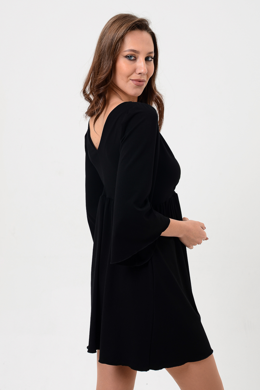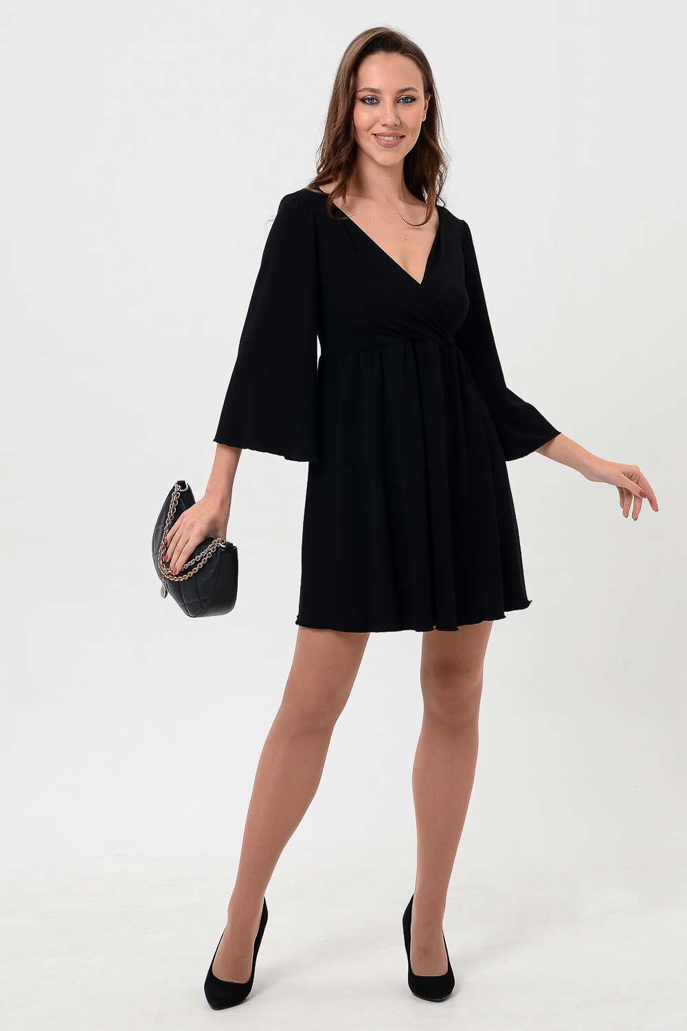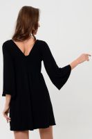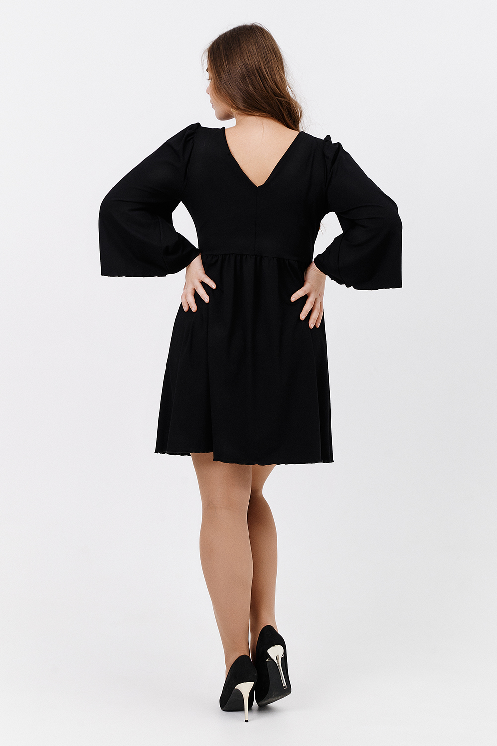 Стильное черное маленькое платьице подойдет не только как вечерний наряд на праздник, но и как классическое в офис. Дополнив данную модель другими аксессуарами или контрастным ремнём, ваш образ может выглядеть по-разному каждый день. Длина платья измерена по спинке и от плеча
