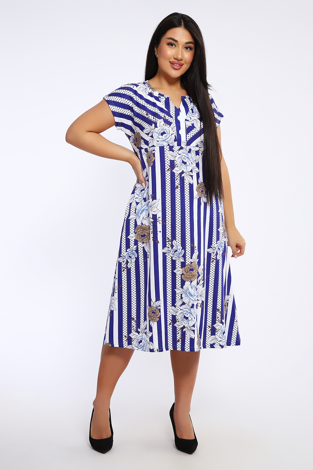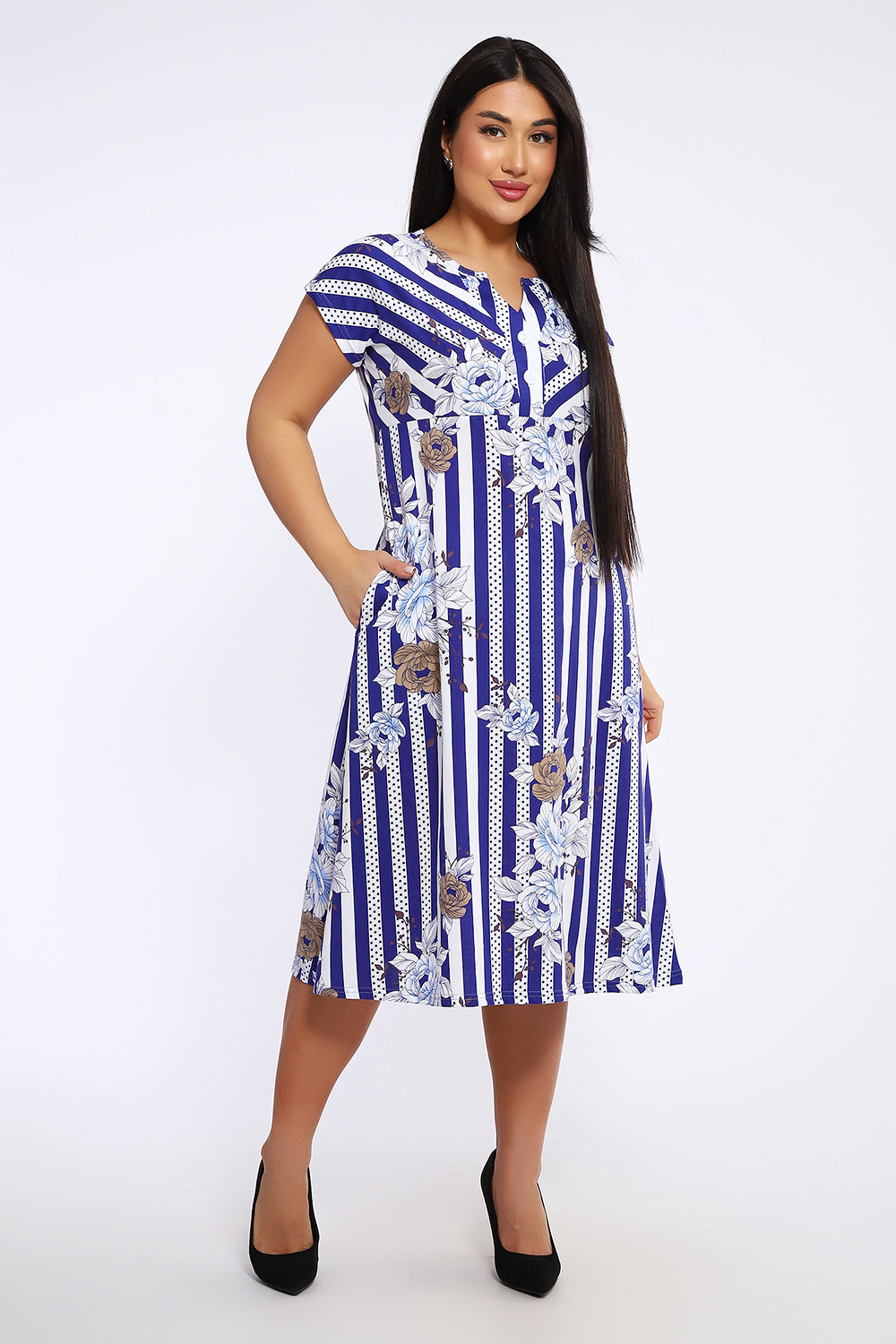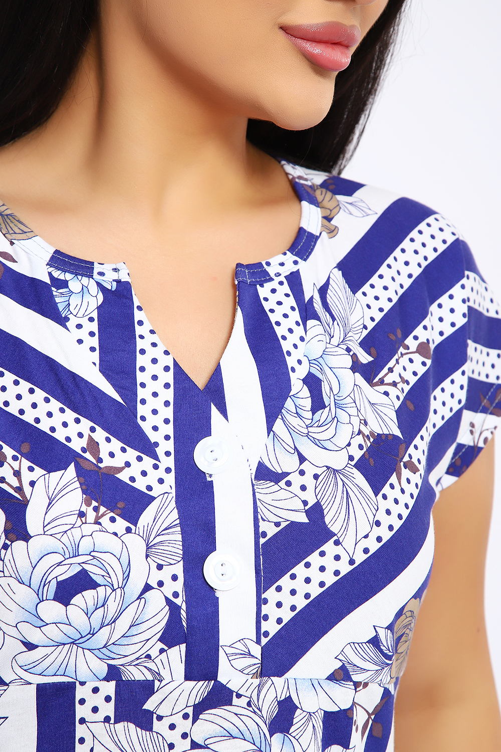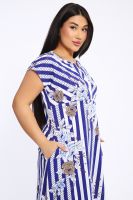 Платье женское удлиненное выполнено из кулирки 100% хлопок. Платье с подрезом, застежка-планка с оригинальной формой выреза, спущенный рукав, карманы в боковых швах. Платье удобное, комфортное, идеально для прогулок и отдыха.