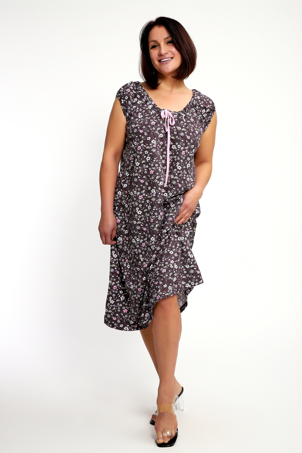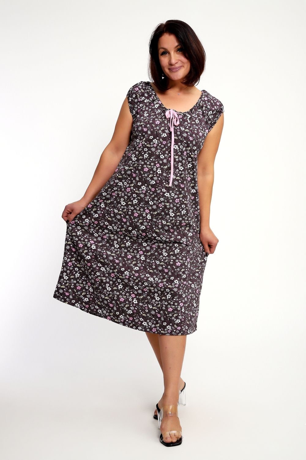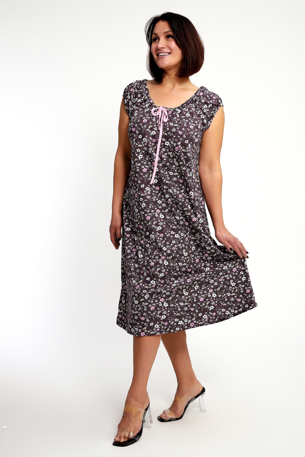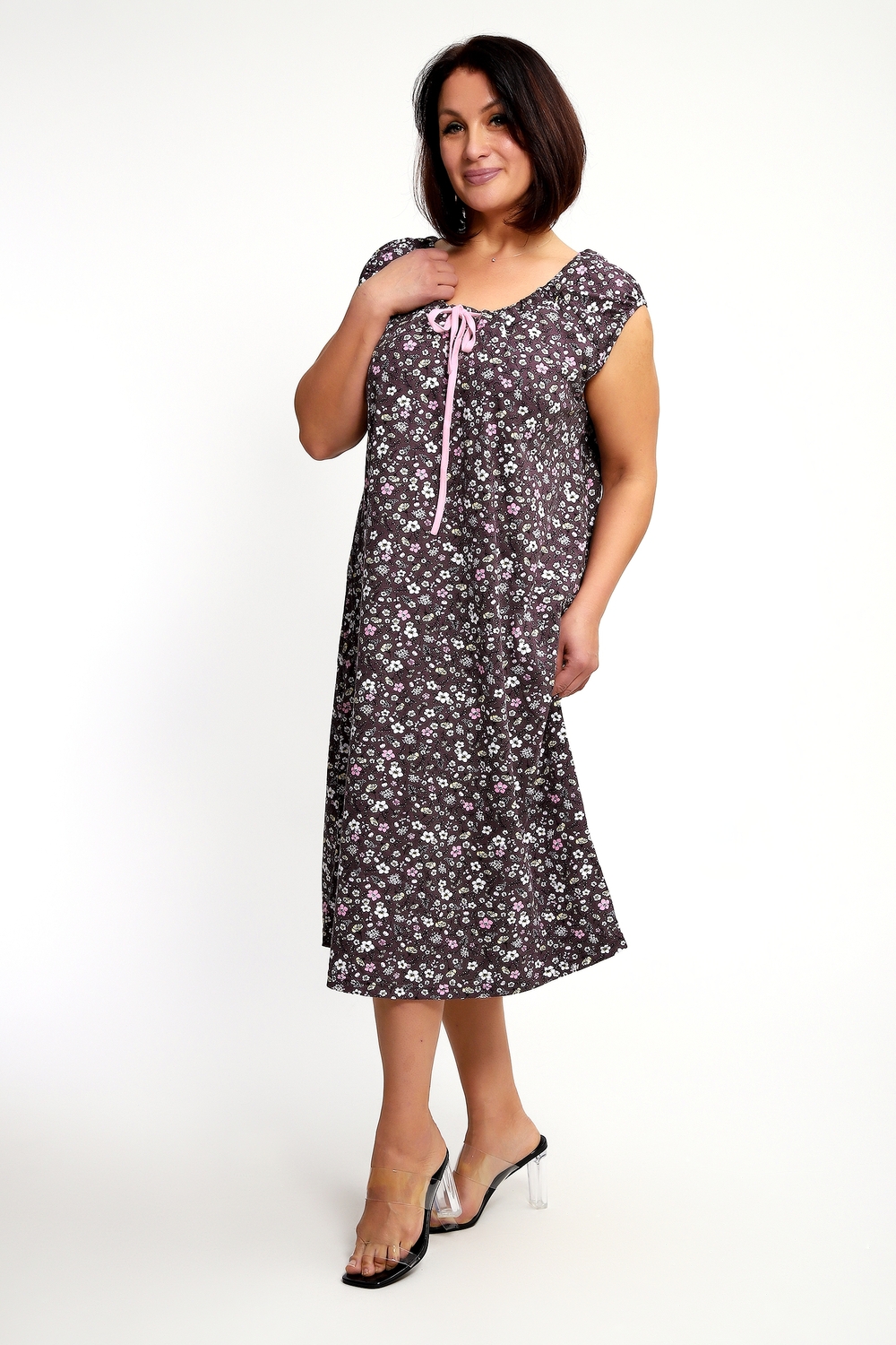 Платье женское с коротким рукавом и кулиской по горловине. Данная модель выполнена из трикотажного полотна кулирка ( хлопок 100%). Отличная модель для дома, свободный крой не будет стеснять ваши движения, очень комфортная и приятная к телу ткань порадует вас.