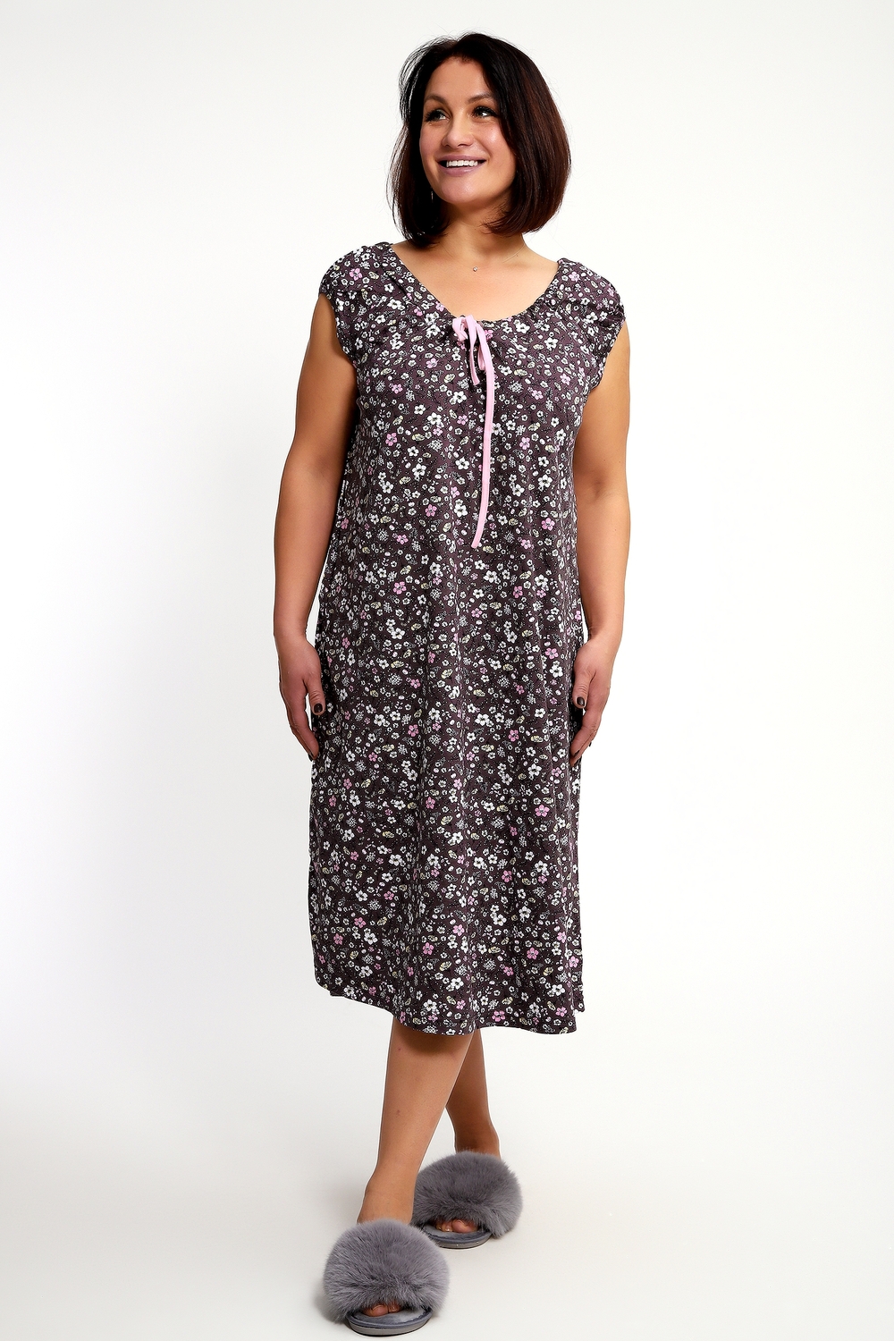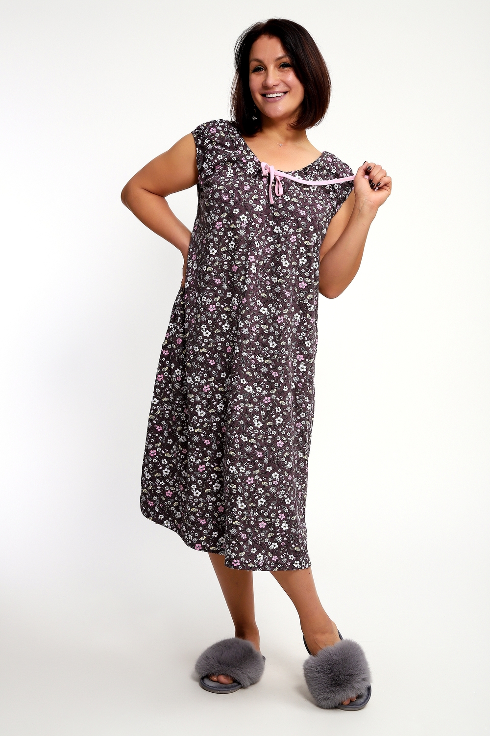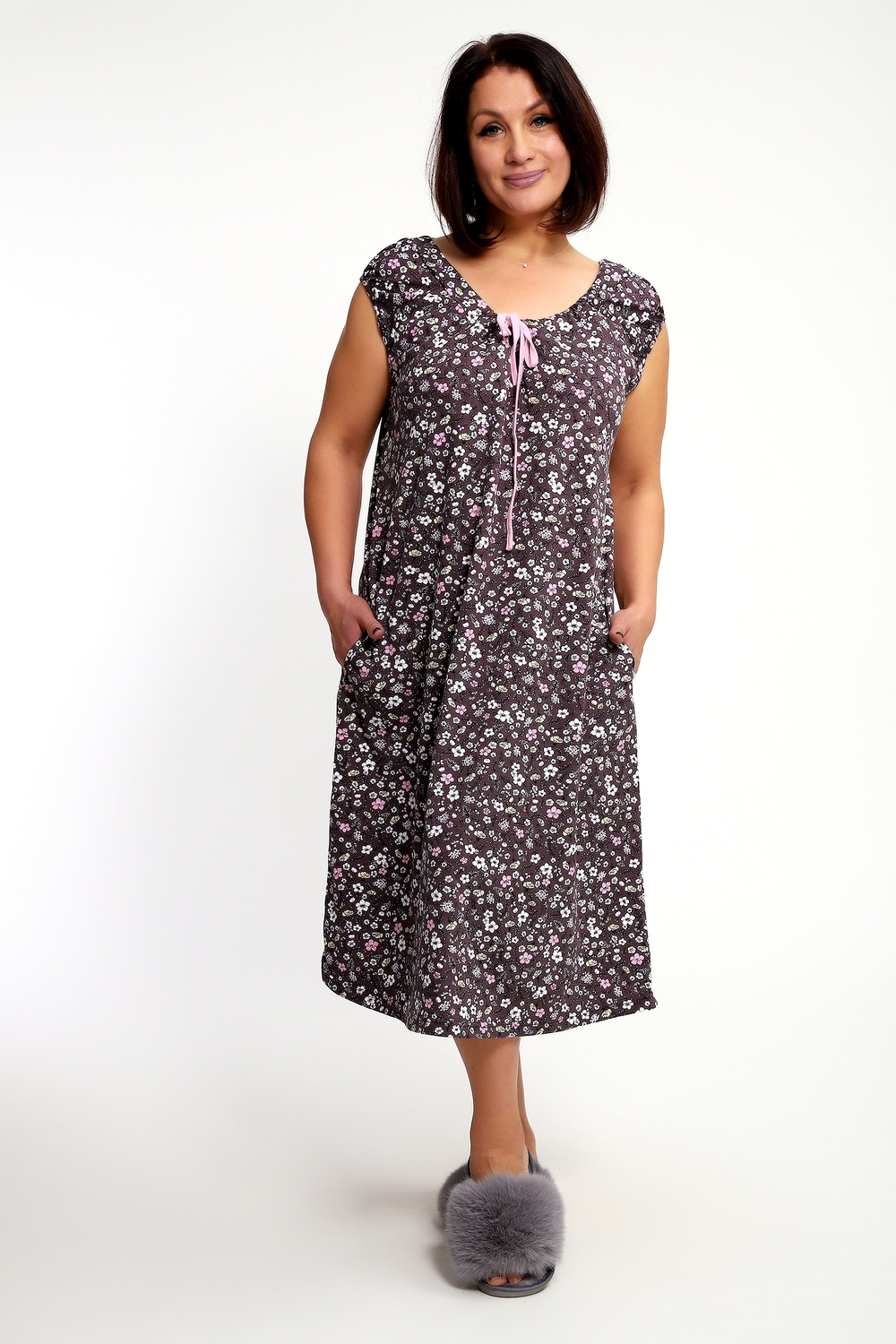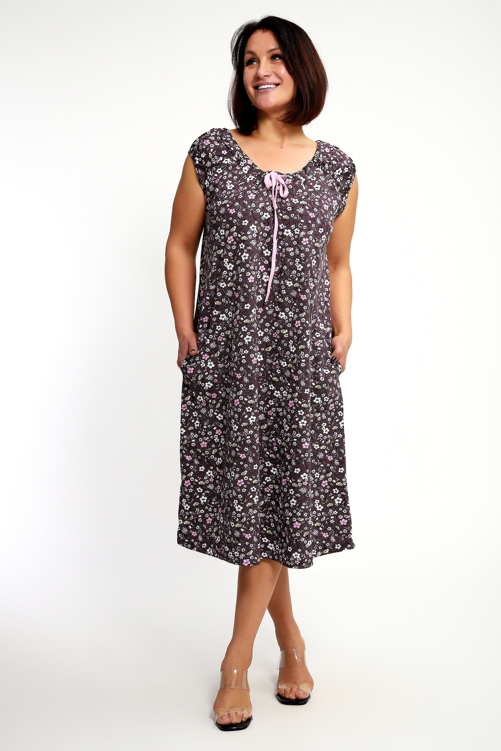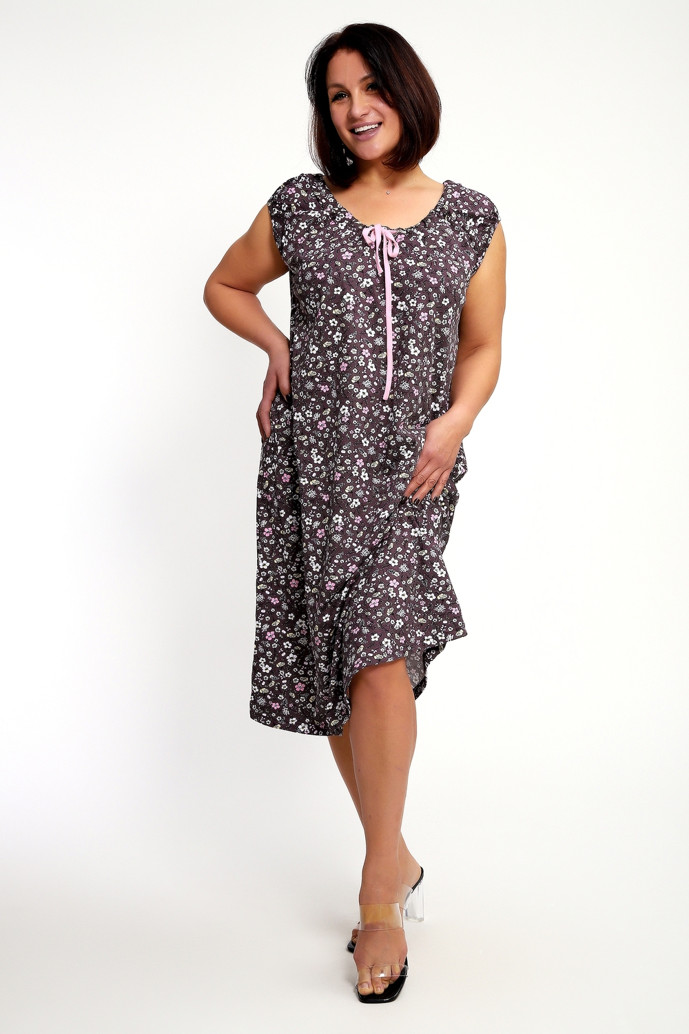 Платье женское с коротким рукавом и кулиской по горловине. Данная модель выполнена из трикотажного полотна кулирка ( хлопок 100%). Отличная модель для дома, свободный крой не будет стеснять ваши движения, очень комфортная и приятная к телу ткань порадует вас.