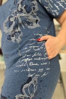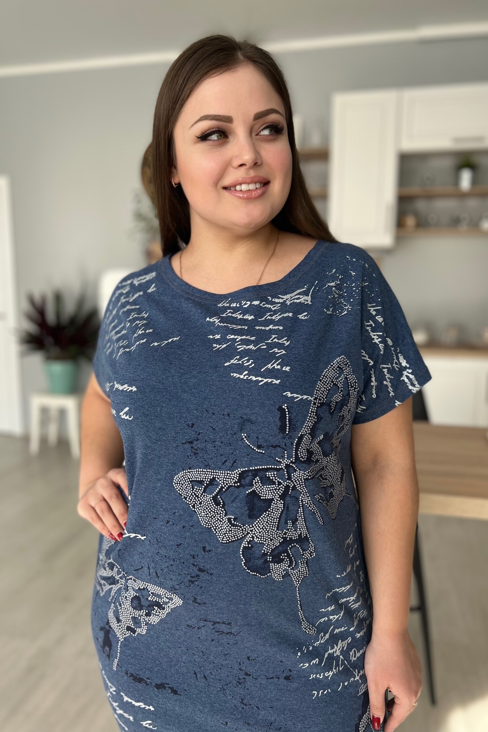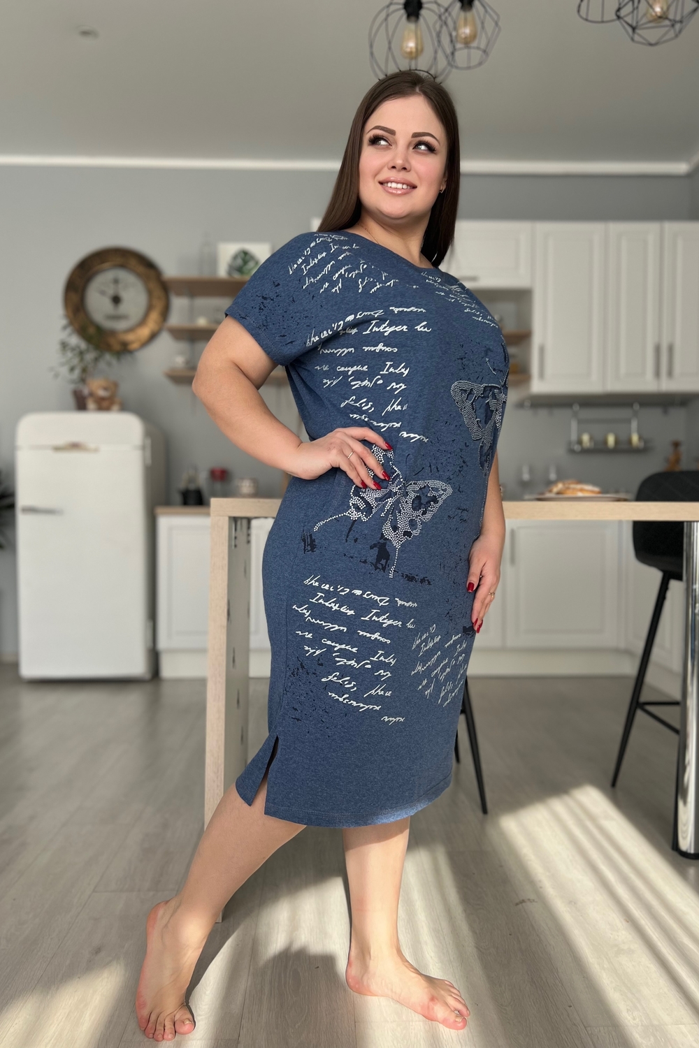 Платье женское прямого силуэта. Рукав цельнокроенный короткий. В боковых швах два внутренних кармана, внизу небольшие разрезы. На полочке красивый принт в виде бабочек. На модели 52 размер