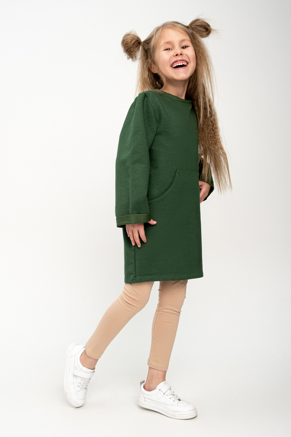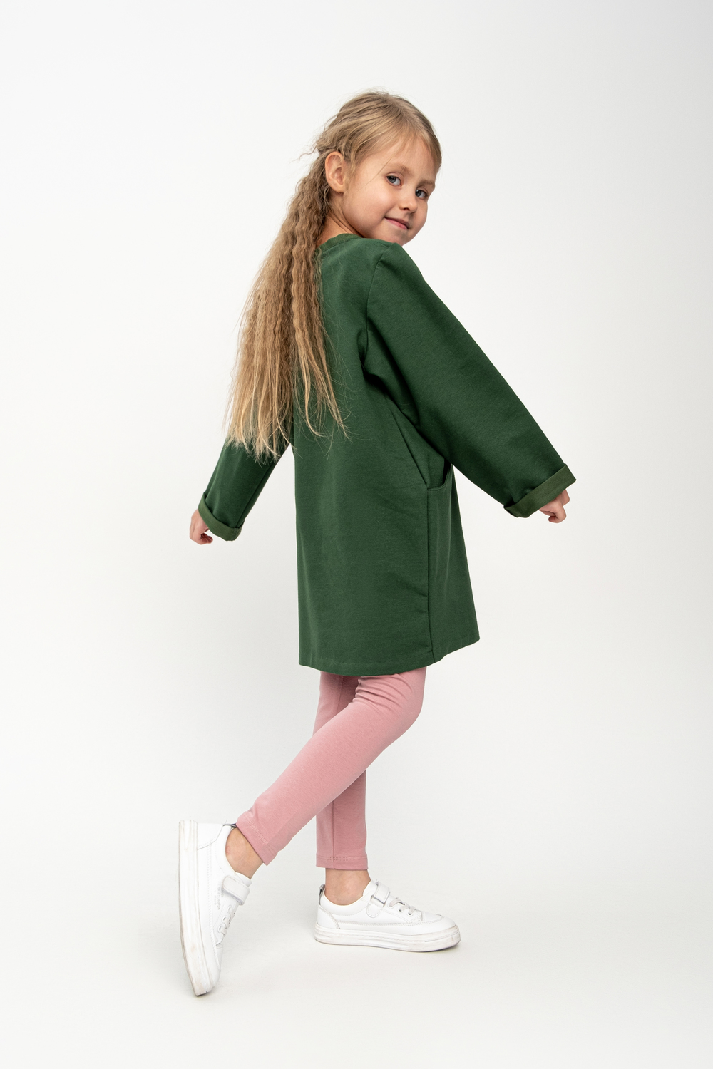 Повседневное платье-туника для девочки. Стильное платье выполнено из футера двунитки. Простое в уходе, легко стирается и утюжится. По мере роста ребёнка может носиться как туника с брюками.