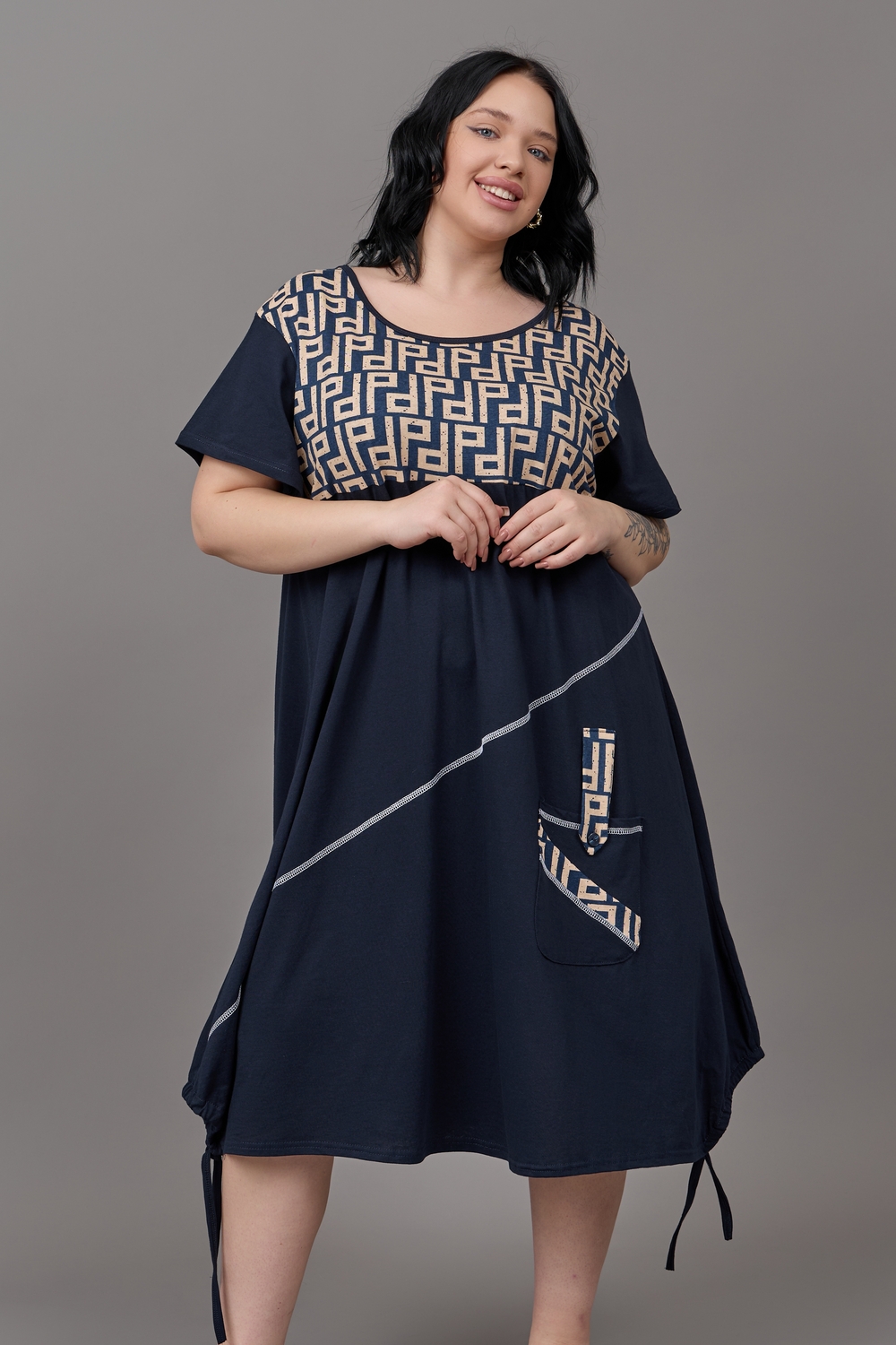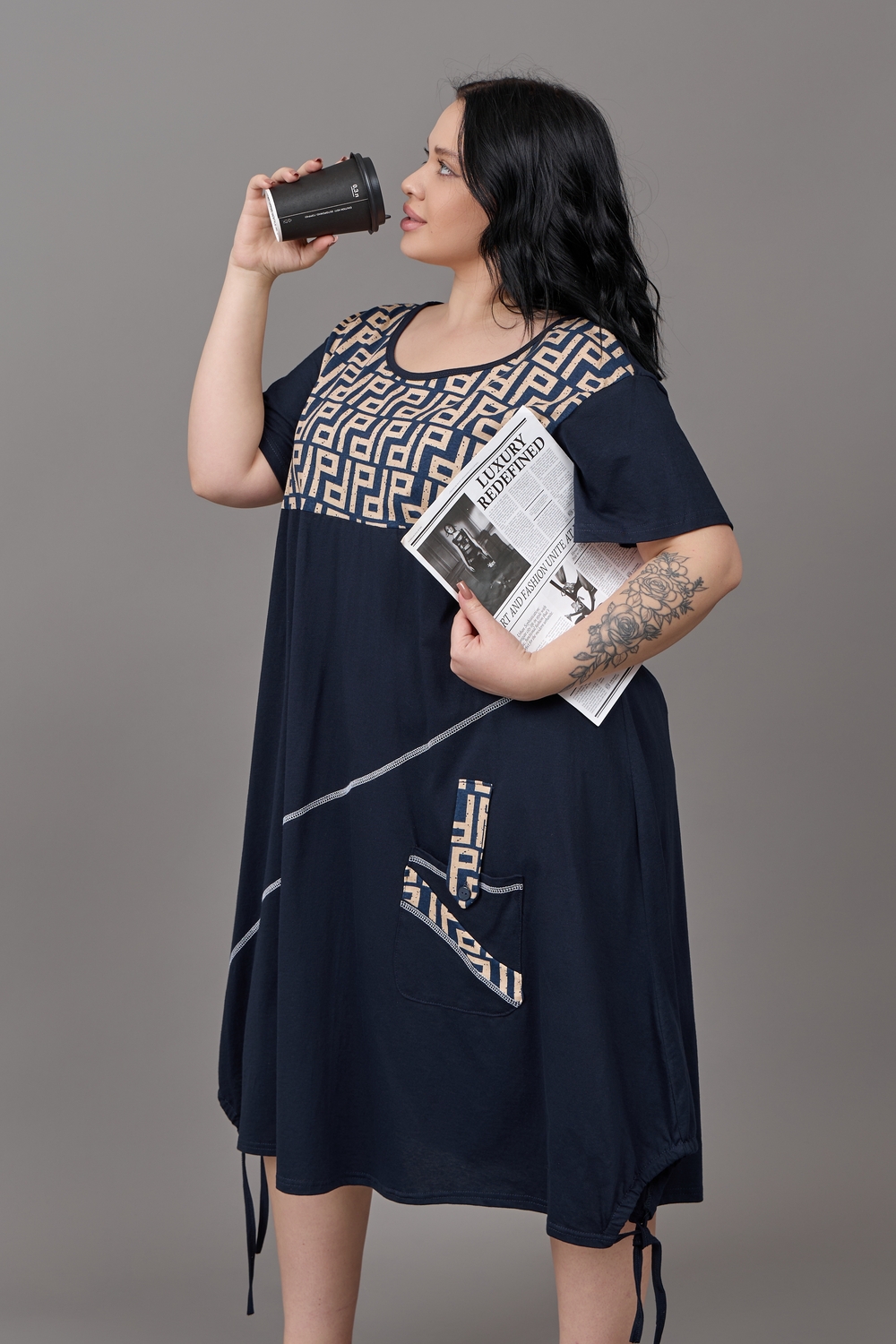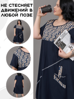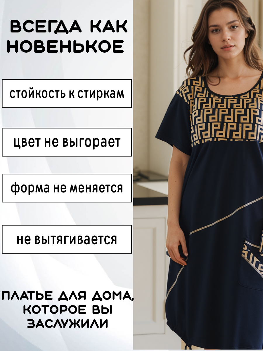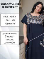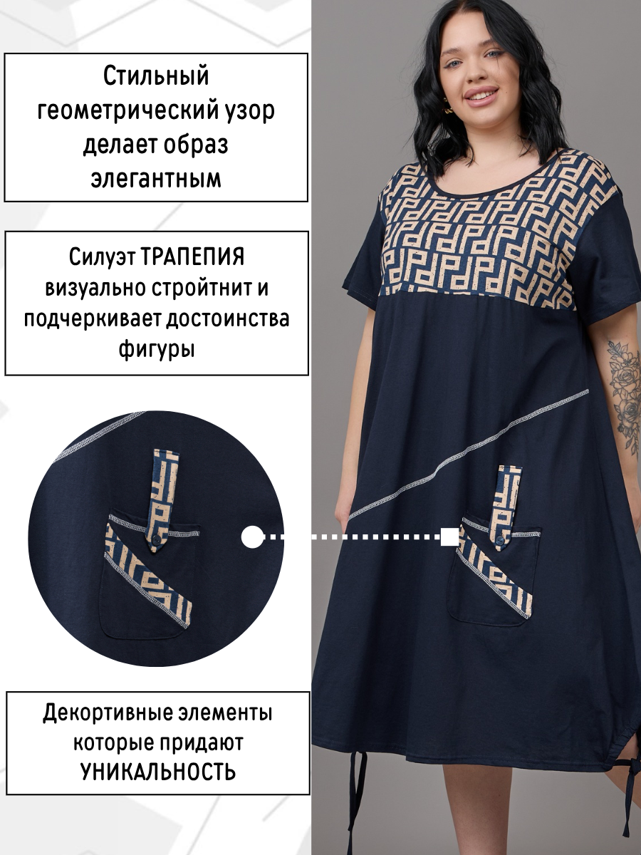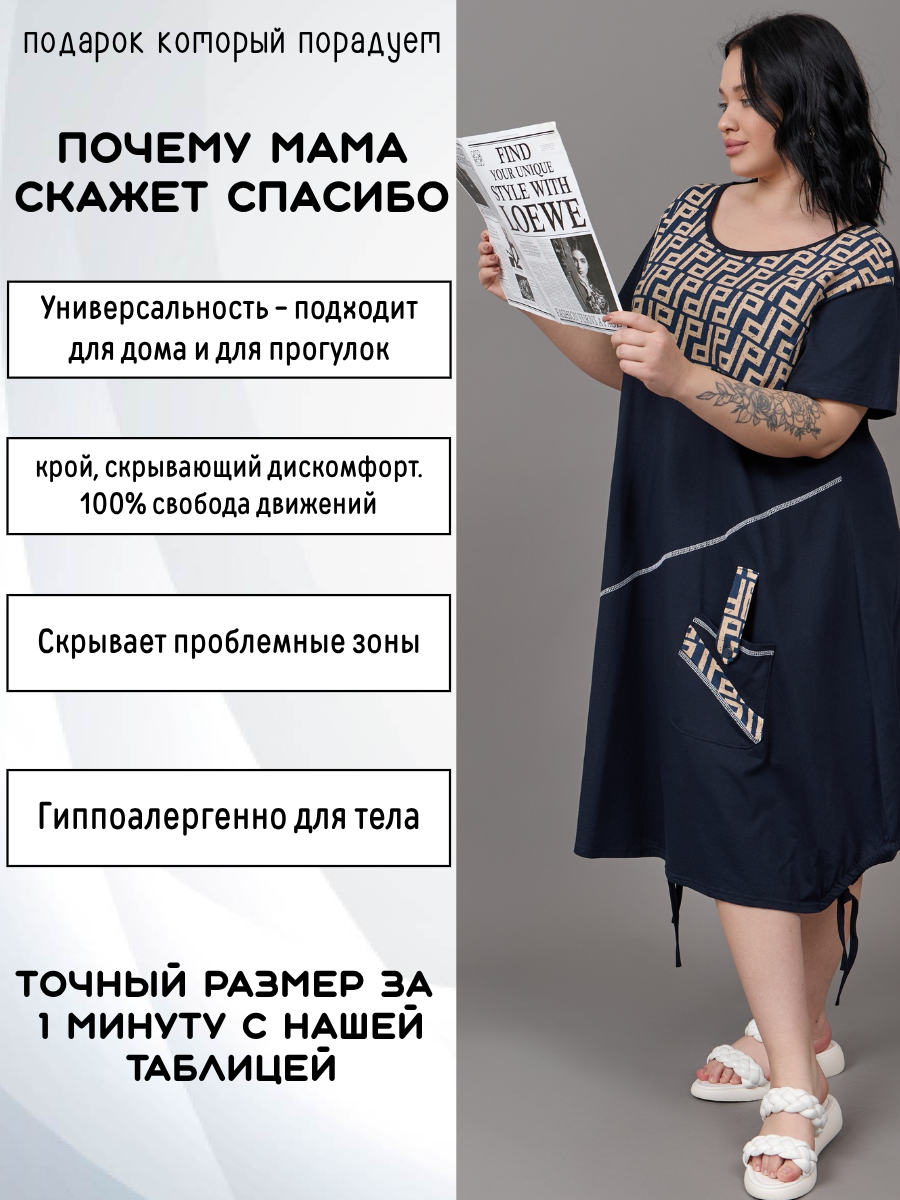 Представляем вам уютное домашнее платье больших размеров созданное для комфорта и стиля в каждый день. Это хлопковое платье свободного кроя с расклешенной юбкой миди идеально подойдет для женщин plus size, обеспечивая свободу движений и ощущение легкости. Черный цвет с классическим рисунком "гусиная лапка" придает ему элегантный вид, а округлый вырез горловины и рукава 3/4 добавляют женственности. Наличие накладных карманов - практичный бонус для хранения мелочей. Свободный покрой и мягкий ивановский трикотаж из 100% хлопка подарят вам максимальный комфорт в течение дня. Это платье станет незаменимым спутником для отдыха дома, создавая атмосферу уюта и расслабленности.