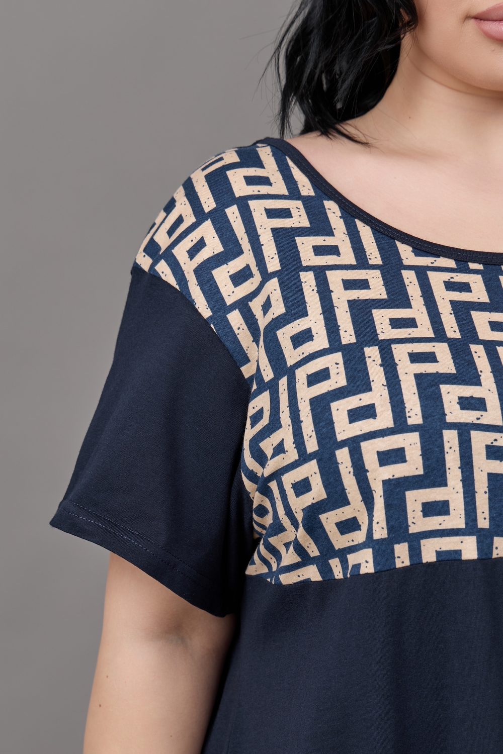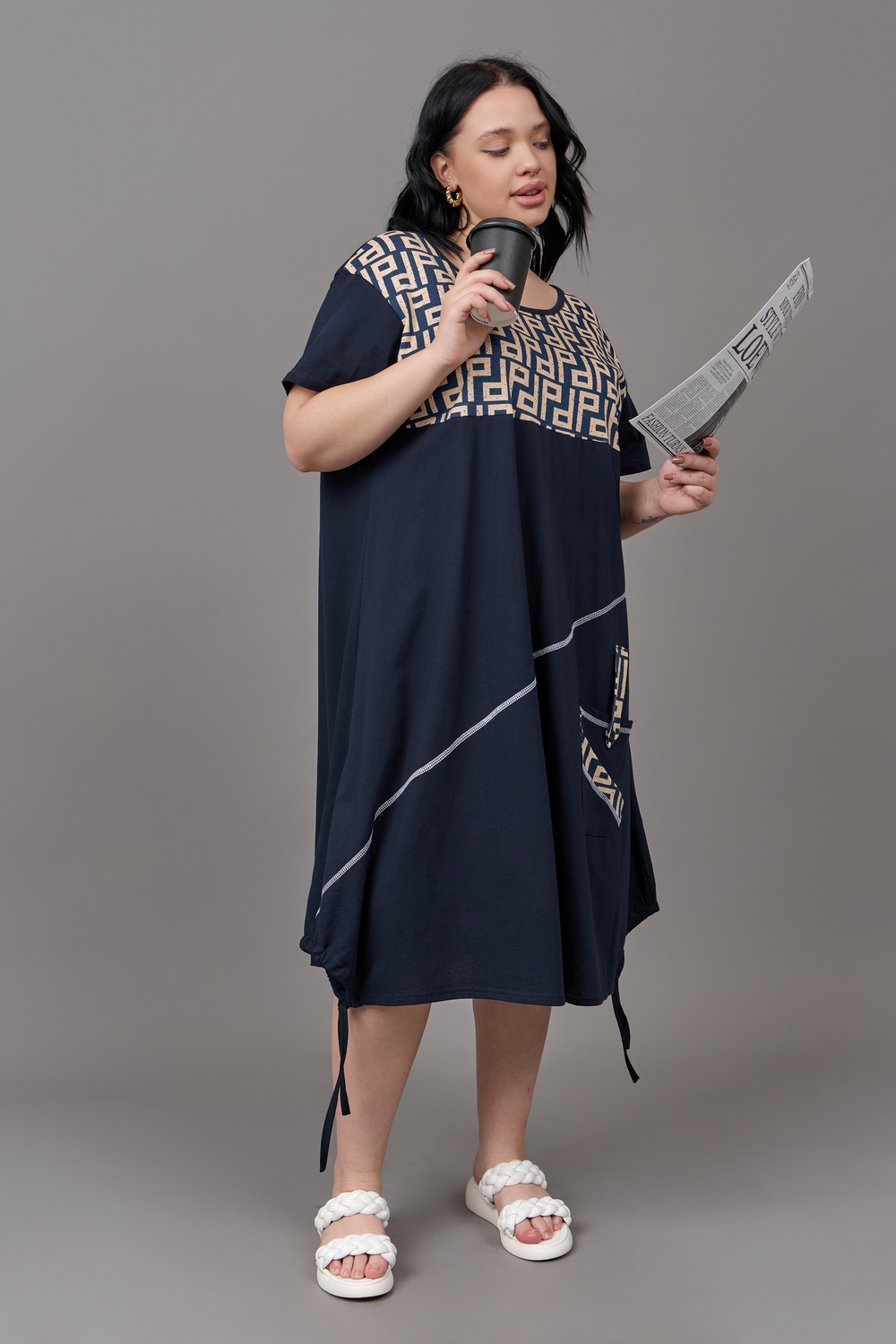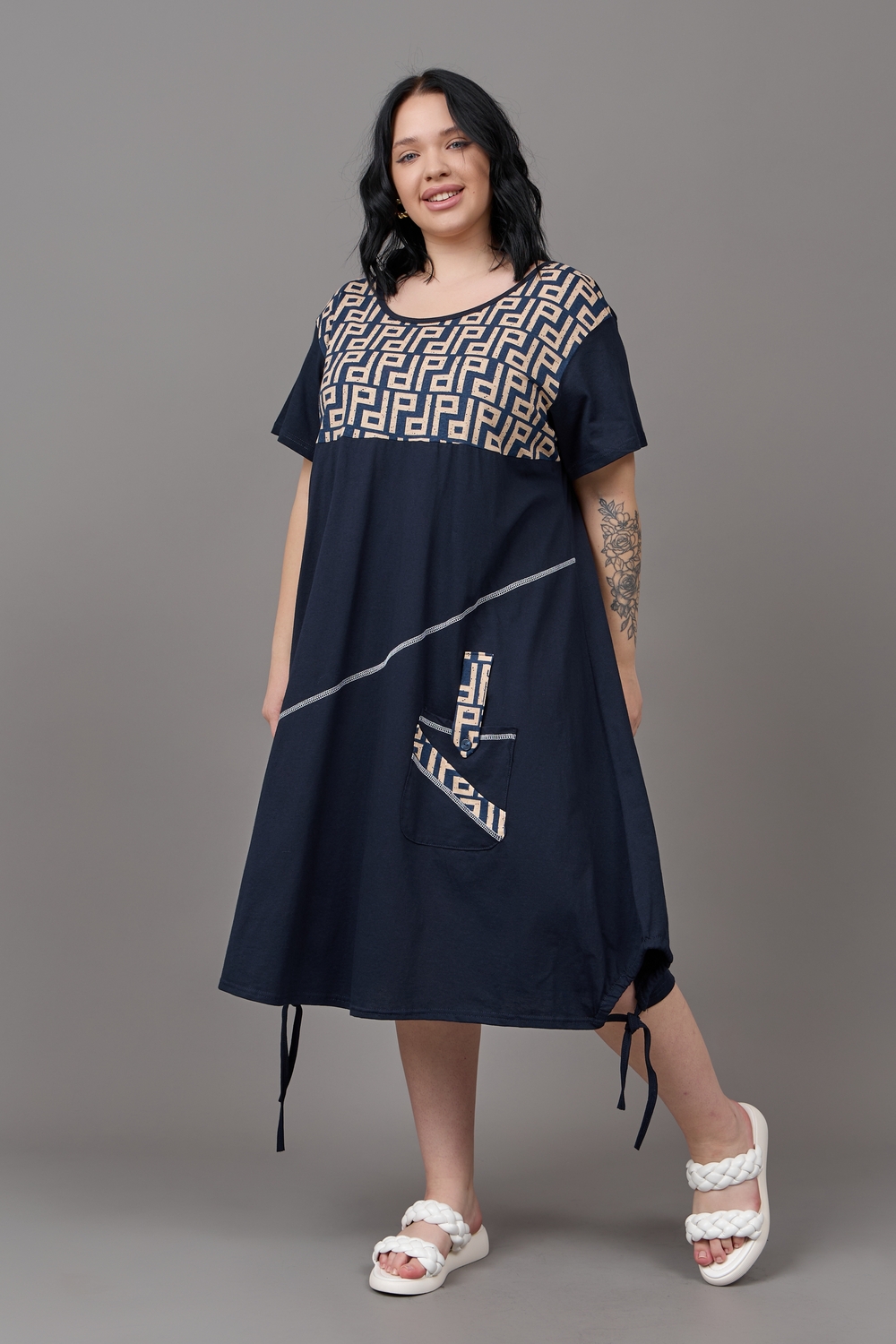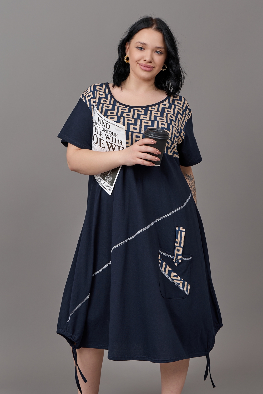 Представляем вам уютное домашнее платье больших размеров созданное для комфорта и стиля в каждый день. Это хлопковое платье свободного кроя с расклешенной юбкой миди идеально подойдет для женщин plus size, обеспечивая свободу движений и ощущение легкости. Черный цвет с классическим рисунком "гусиная лапка" придает ему элегантный вид, а округлый вырез горловины и рукава 3/4 добавляют женственности. Наличие накладных карманов - практичный бонус для хранения мелочей. Свободный покрой и мягкий ивановский трикотаж из 100% хлопка подарят вам максимальный комфорт в течение дня. Это платье станет незаменимым спутником для отдыха дома, создавая атмосферу уюта и расслабленности.
