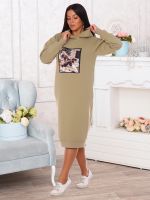 Платье женское утепленное с оригинальной нашивкой в технике 3D с двойным капюшоном. Манжеты и низ выполнены из кашкорсе.