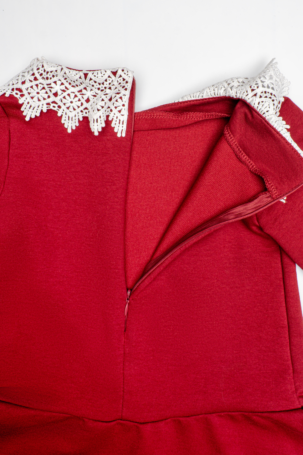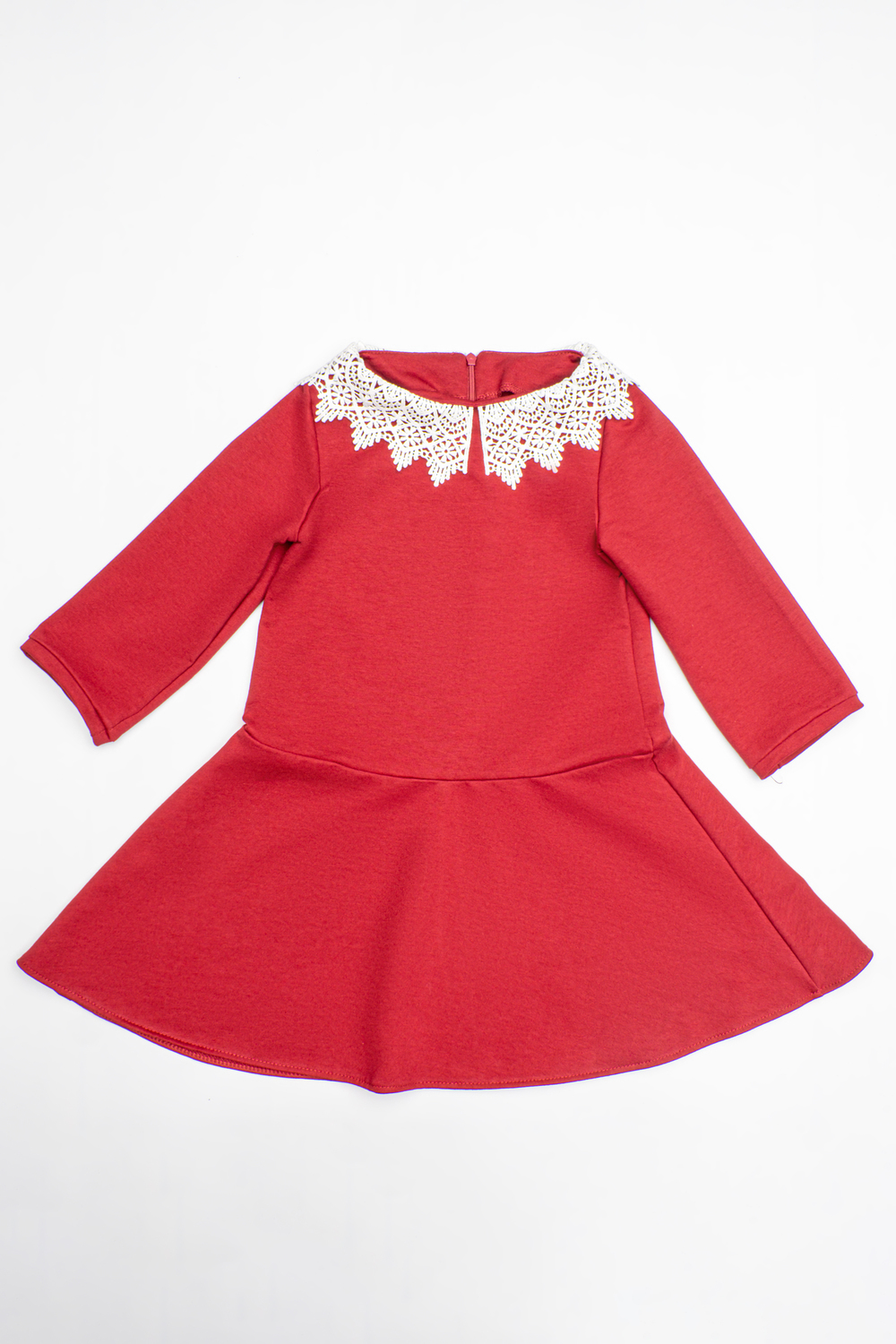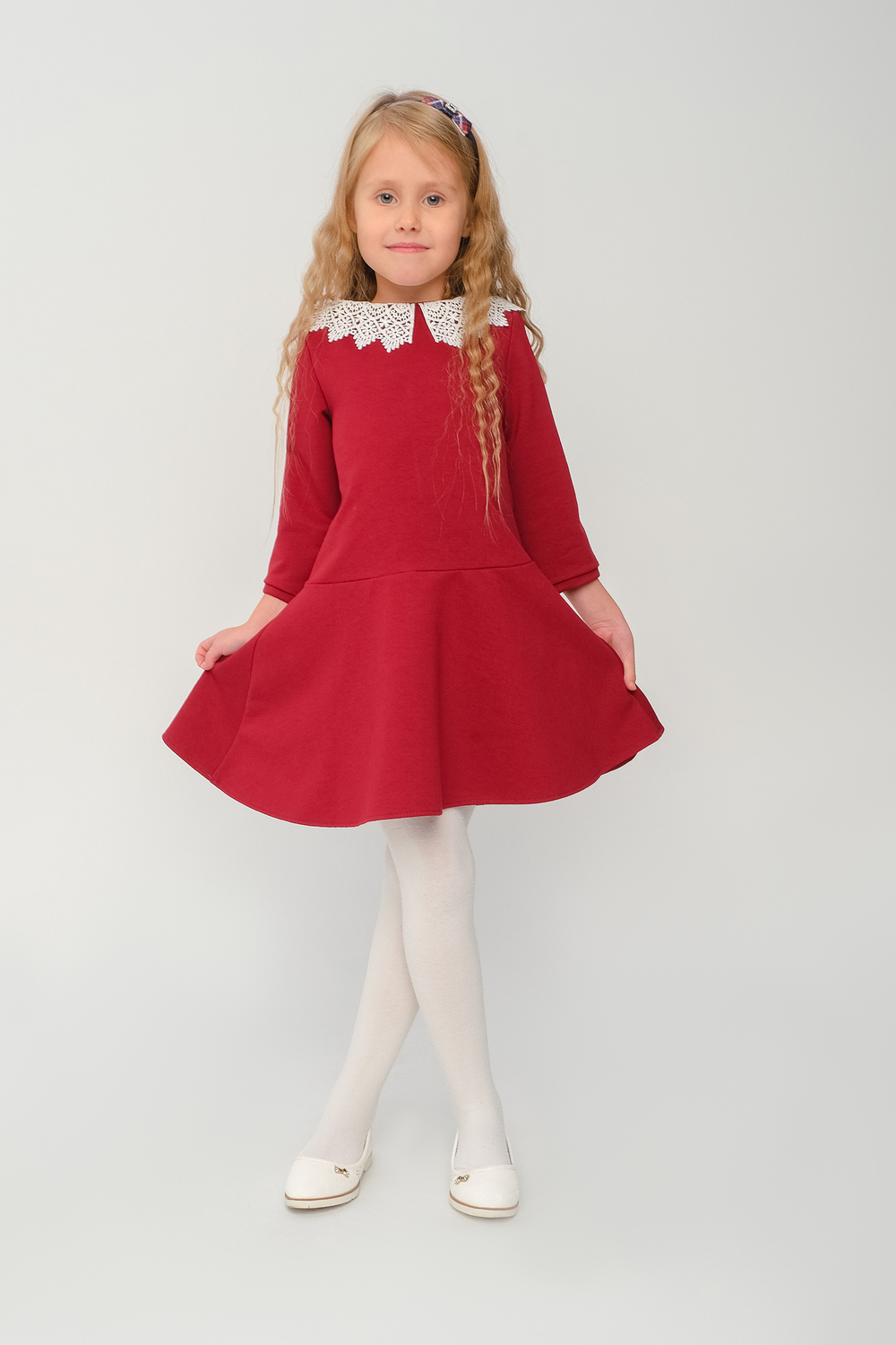 Классическое платье с кружевным воротником для девочки для особых случаев и для повседневного наряда. Стильное платье выполнено из трикотажного полотна двунитки, с кружевным воротником, с потайной молнией по спинке. Простое в уходе, легко стирается и утюжится.