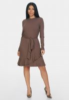 Это изысканное платье женское больших размеров из лапши— настоящий шедевр для модницы, которая ценит комфорт и стиль. Свободный крой обеспечивает удобство движений, а мини-длина придаёт образу дерзость и современный акцент. Длинные рукава с изящными линиями создают неповторимый силуэт и добавляют образу воздушности. Круглая горловина добавляет образу нежности и изящества, делая его гармоничным и сбалансированным. Воланы снизу придают платью лёгкость и игривость, создавая интересные визуальные эффекты.