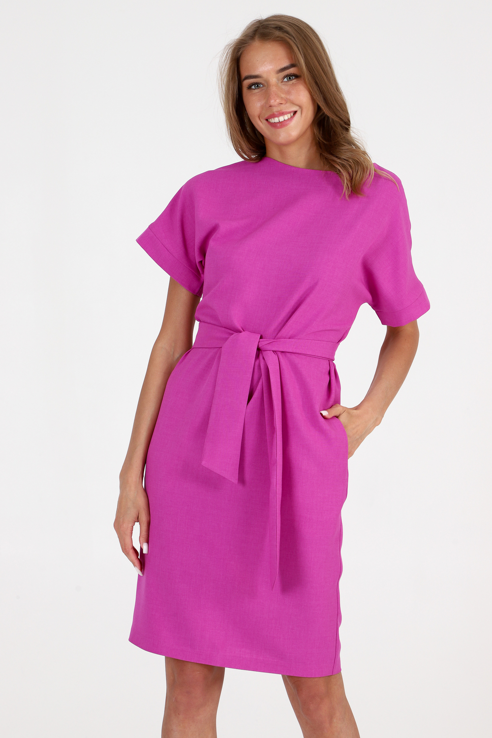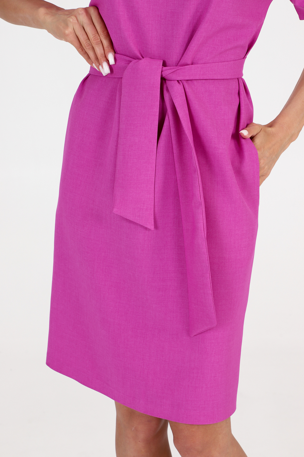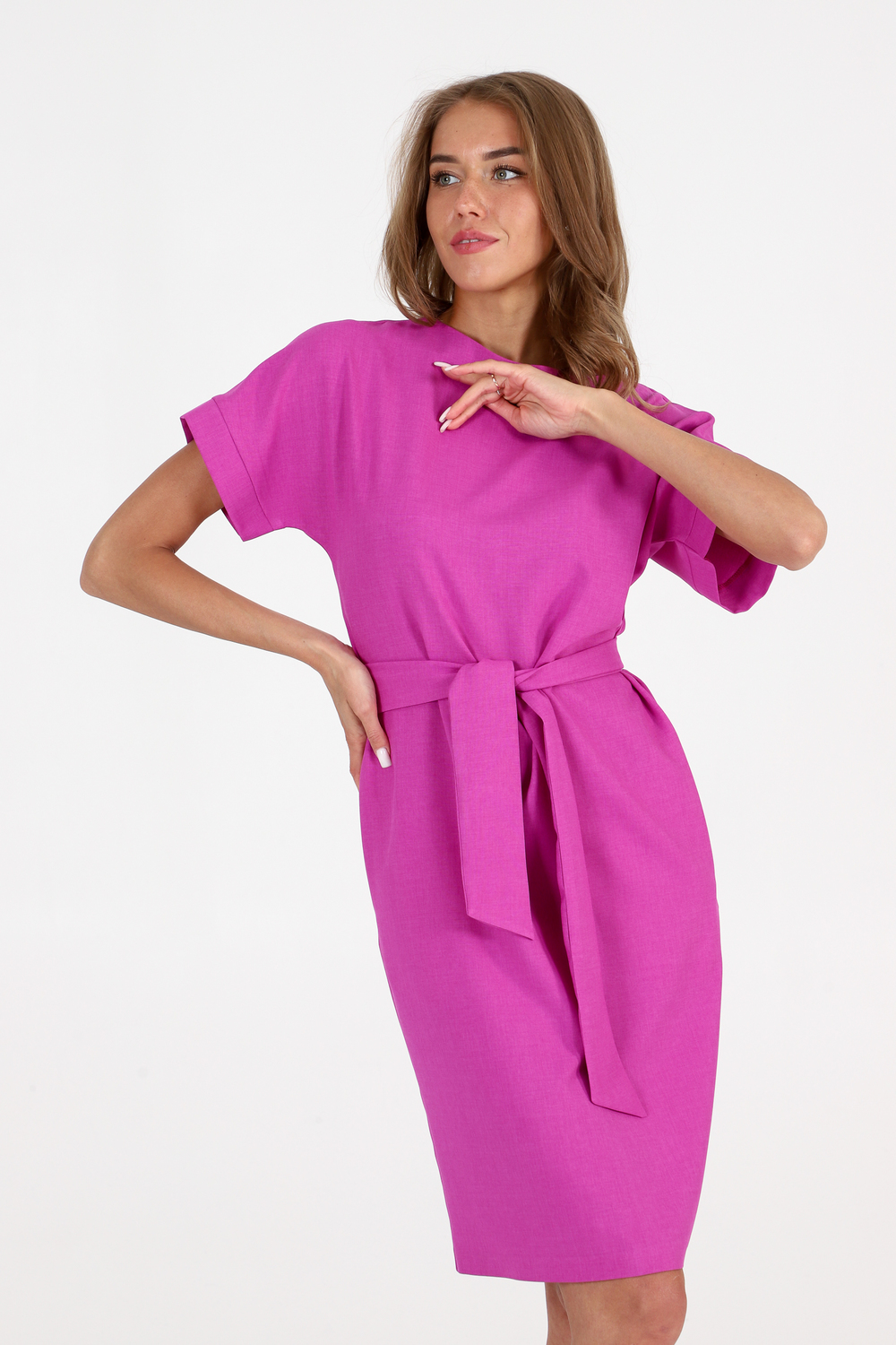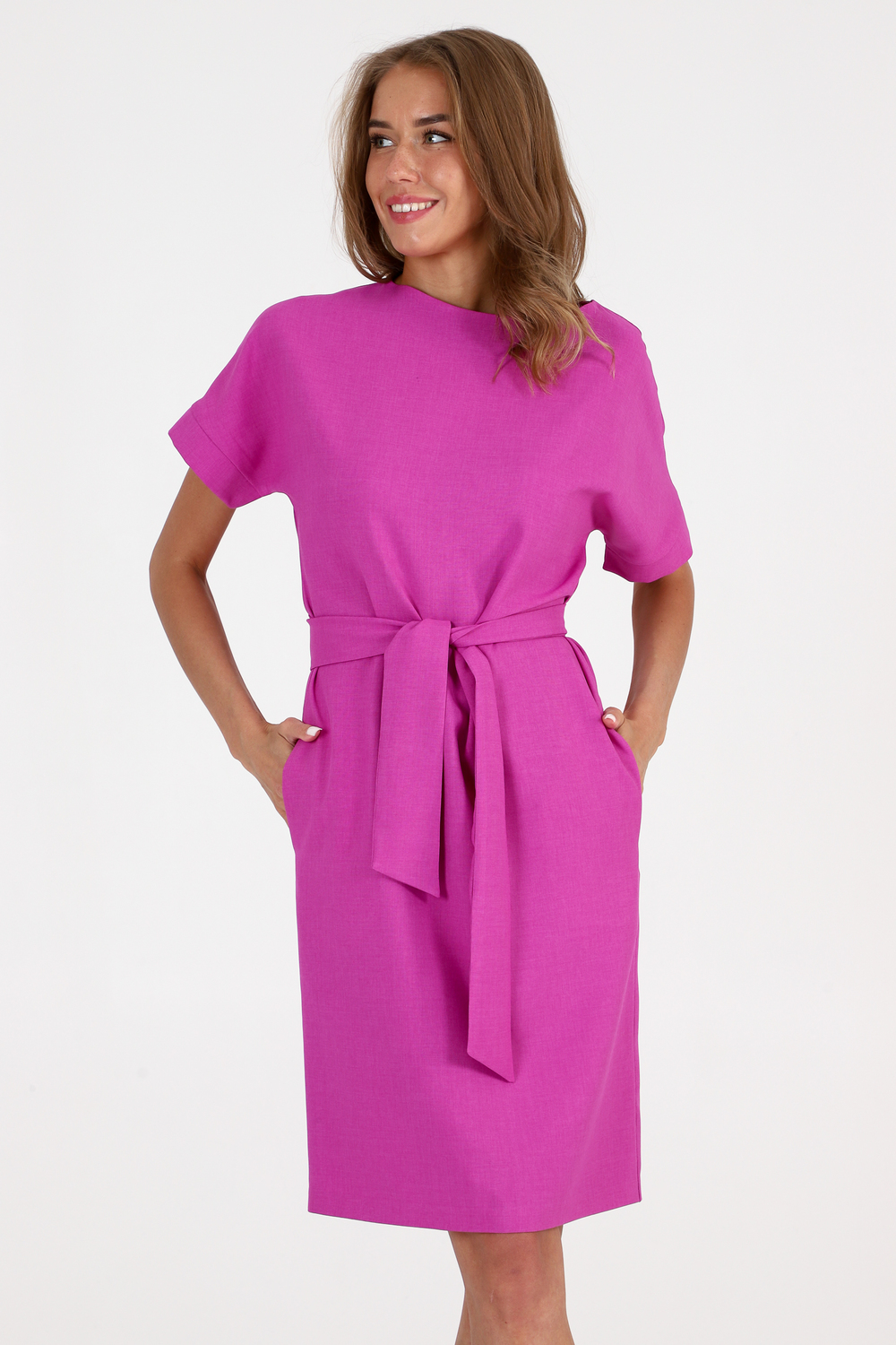 Платье прямого кроя - с поясом сочетает в себе строгость и женственность. Материал - искуственный лен.