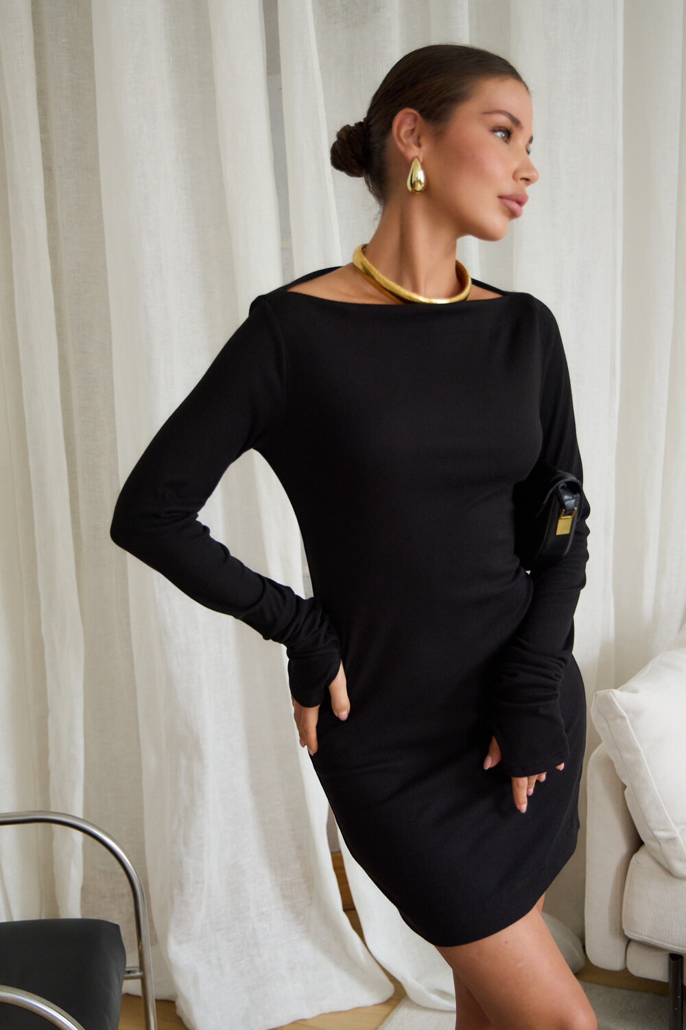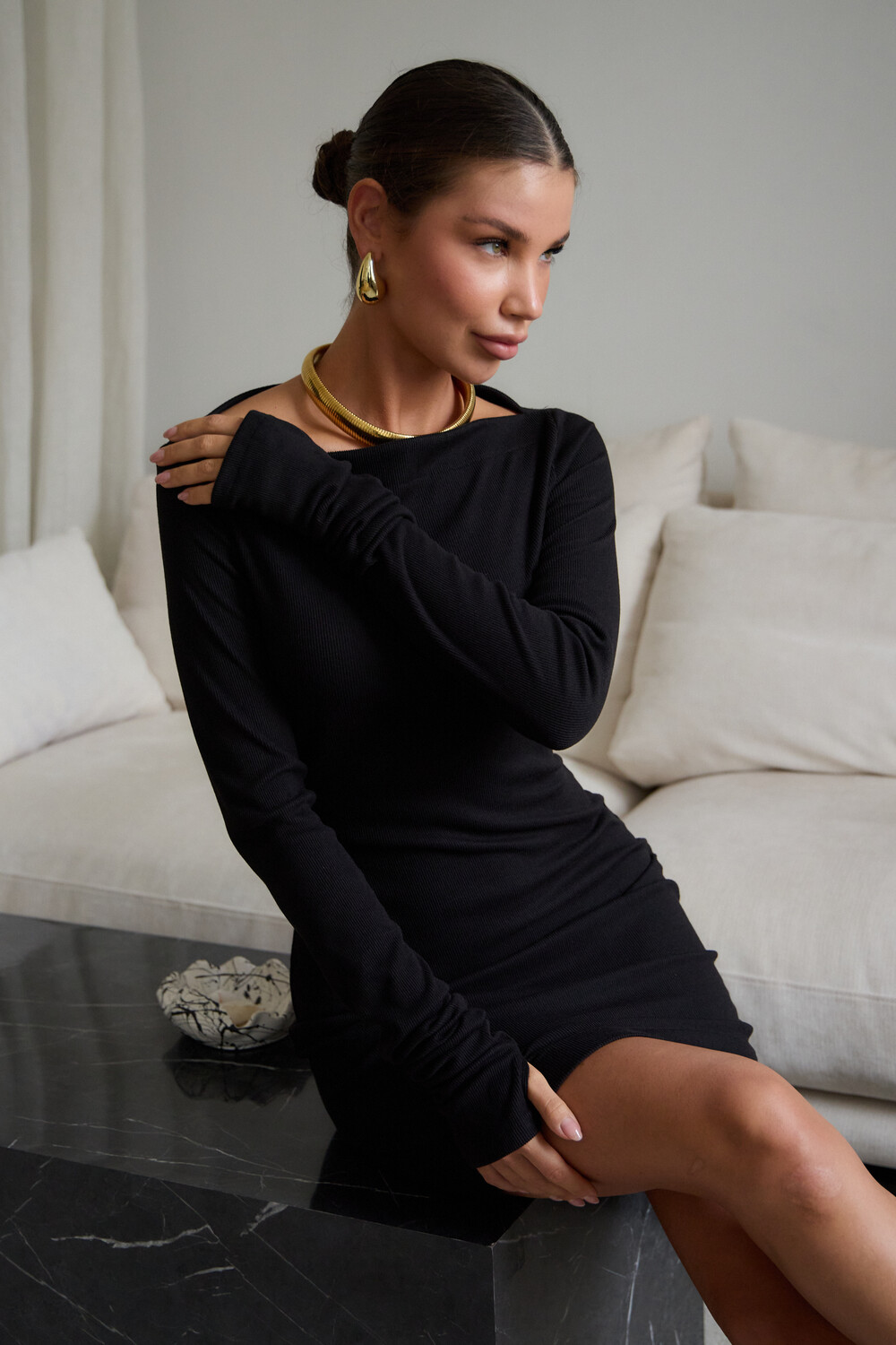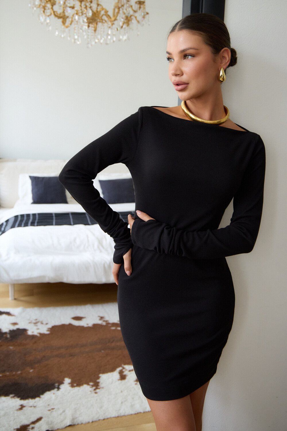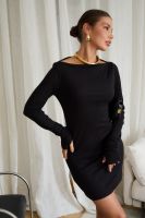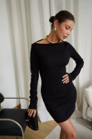 Маленькое черное платье – классика, неподвластная времени, способная покорить ваше сердце и стать верным спутником в любой ситуации. Будь то строгие будни в офисе, где оно элегантно дополнится строгим жакетом, или зажигательная вечеринка, где его дерзкий силуэт подчеркнут шпильки, – оно всегда будет уместно. В поисках идеального вечернего наряда или платья для новогодней ночи, обратите внимание на эту модель. Прилегающий крой, кокетливая длина мини и удлиненные рукава с чувственными прорезями для пальцев создают неповторимый образ, исполненный женственности. Главная изюминка – возможность трансформации. Одно движение, и платье превращается в соблазнительный наряд на одно плечо или с открытыми плечами.