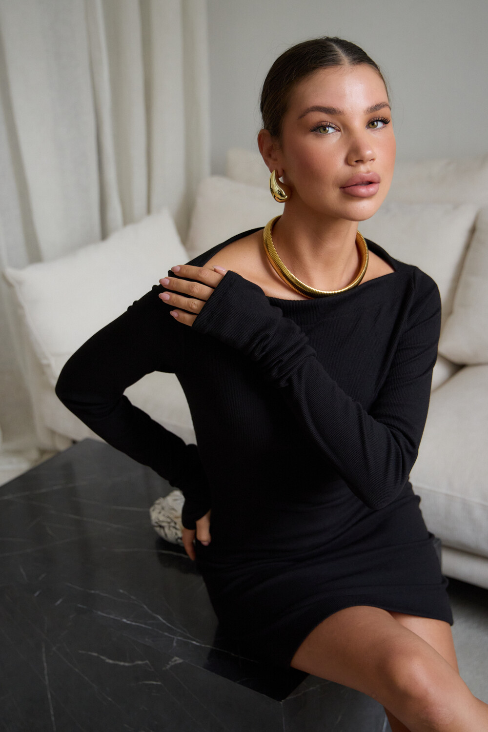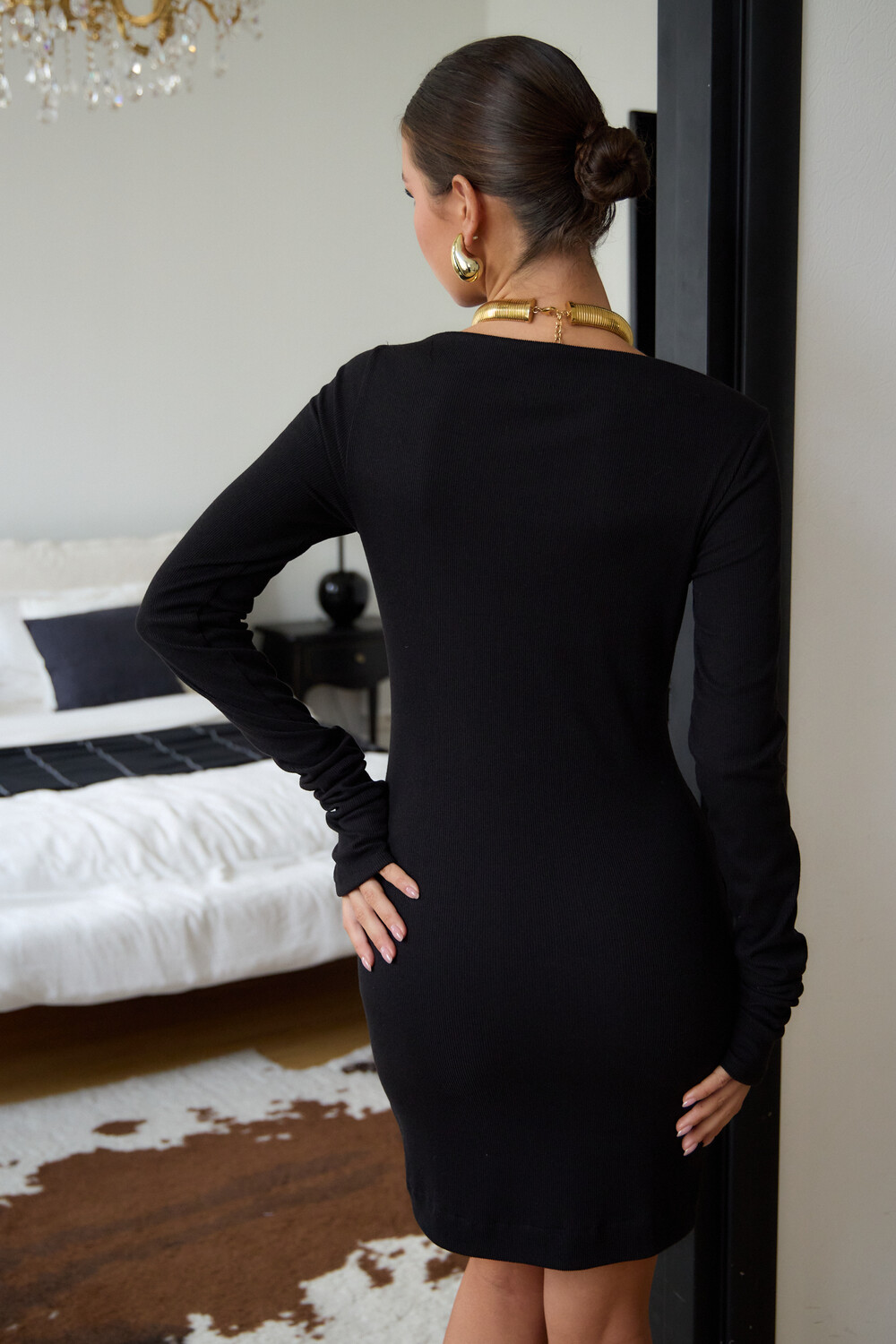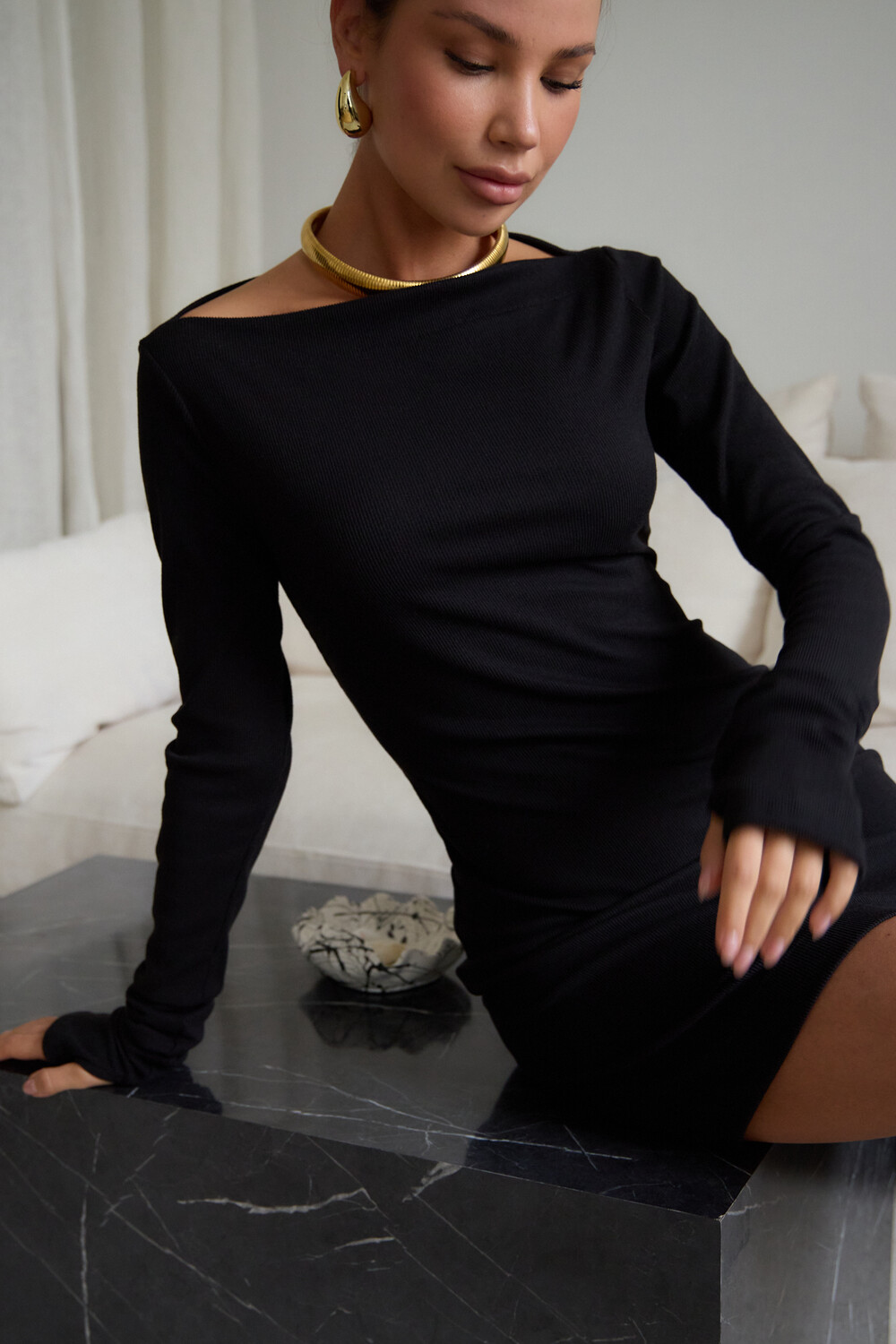 Маленькое черное платье – классика, неподвластная времени, способная покорить ваше сердце и стать верным спутником в любой ситуации. Будь то строгие будни в офисе, где оно элегантно дополнится строгим жакетом, или зажигательная вечеринка, где его дерзкий силуэт подчеркнут шпильки, – оно всегда будет уместно. В поисках идеального вечернего наряда или платья для новогодней ночи, обратите внимание на эту модель. Прилегающий крой, кокетливая длина мини и удлиненные рукава с чувственными прорезями для пальцев создают неповторимый образ, исполненный женственности. Главная изюминка – возможность трансформации. Одно движение, и платье превращается в соблазнительный наряд на одно плечо или с открытыми плечами.