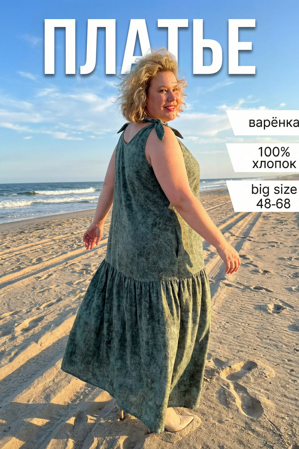Платье-сарафан летний длинный женское больших размеров — это идеальный выбор для женщин. Он подчеркнет красоту и элегантность каждой женщины, обеспечивая комфорт в повседневной жизни. Изготовленное из легкого хлопка, это платье отличается воздухопроницаемостью, что особенно актуально в жаркую погоду. Длинное платье прекрасно сидит на девушках больших размеров, радуя мягкой текстурой и стильным дизайном. В этом сарафане легко создать эффектный образ, который привлечет внимание окружающих. Хлопок в составе ткани не только приятен на ощупь, но и обеспечивает свободу движений, позволяя наслаждаться летом. Сарафан на широких бретельках станет отличным дополнением к гардеробу женщин, которые ценят моду и комфорт. Носите его с любимыми аксессуарами и обувью, создавая новые образы каждый день.Сарафан женский из полностью натурального нежного ХЛОПКА! Это базовая летняя вещь, идеально подходит для разных ситуаций: на работу и просто на прогулку с подружкой или с детьми, а также в отпуск. Прекрасен для тех, кто хочет подчеркнуть свою талию и для тех, кто напротив предпочитает скрыть недостатки фигуры, благодаря свободному фасону. Красивый и стильный сарафан макси, благодаря своей воздушности и натуральности, сидит свободно и отлично подойдет для беременных и кормящих мам. Модный сарафан миди является трендом среди девушек и женщин высокого и среднего роста. На невысоких девушках он будет смотреться больше как макси. Благодаря длинной юбке и открытым плечам на бретелях, станет удачным решением для вечеринки или праздничного торжества. Сарафанчик шикарно смотрится как с туфлями на каблуке, так и с кроссовками. Покрой трапеция, широкий к низу с широким воланом, натуральная дышащая ткань очень приятная к телу.Ткань не скатывается, комфортная к телу.
