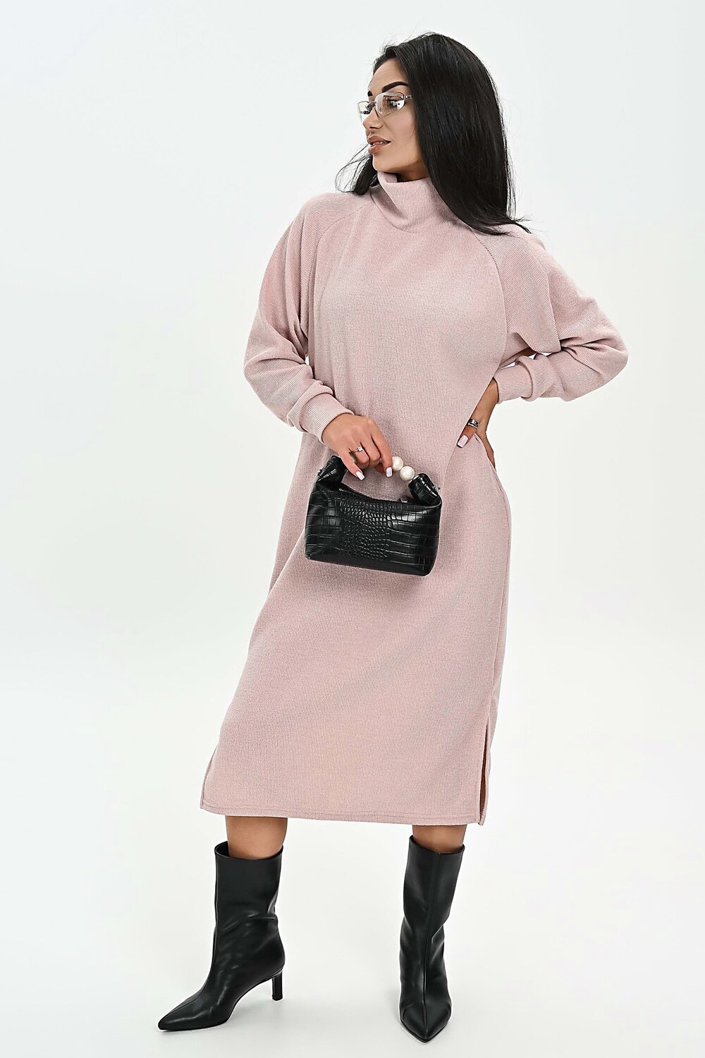 Это стильное вязаное платье черного, бежевого и белого цвета станет незаменимой вещью в вашем осенне-зимнем гардеробе. Модель прямого покроя с длинными рукавами и воротником-стойкой прекрасно подойдет для повседневной носки. Разрез на юбке добавляет образу изысканности и женственности. Платье выполнено из мягкого и приятного к телу материала с добавлением спандекса, что обеспечивает комфорт и свободу движений. Его универсальный черный цвет легко сочетается с различными аксессуарами и обувью.