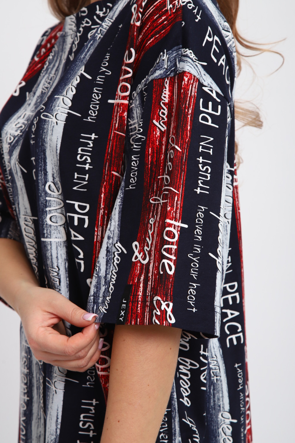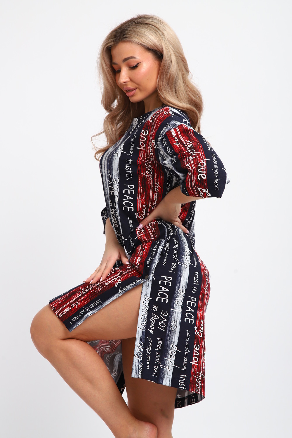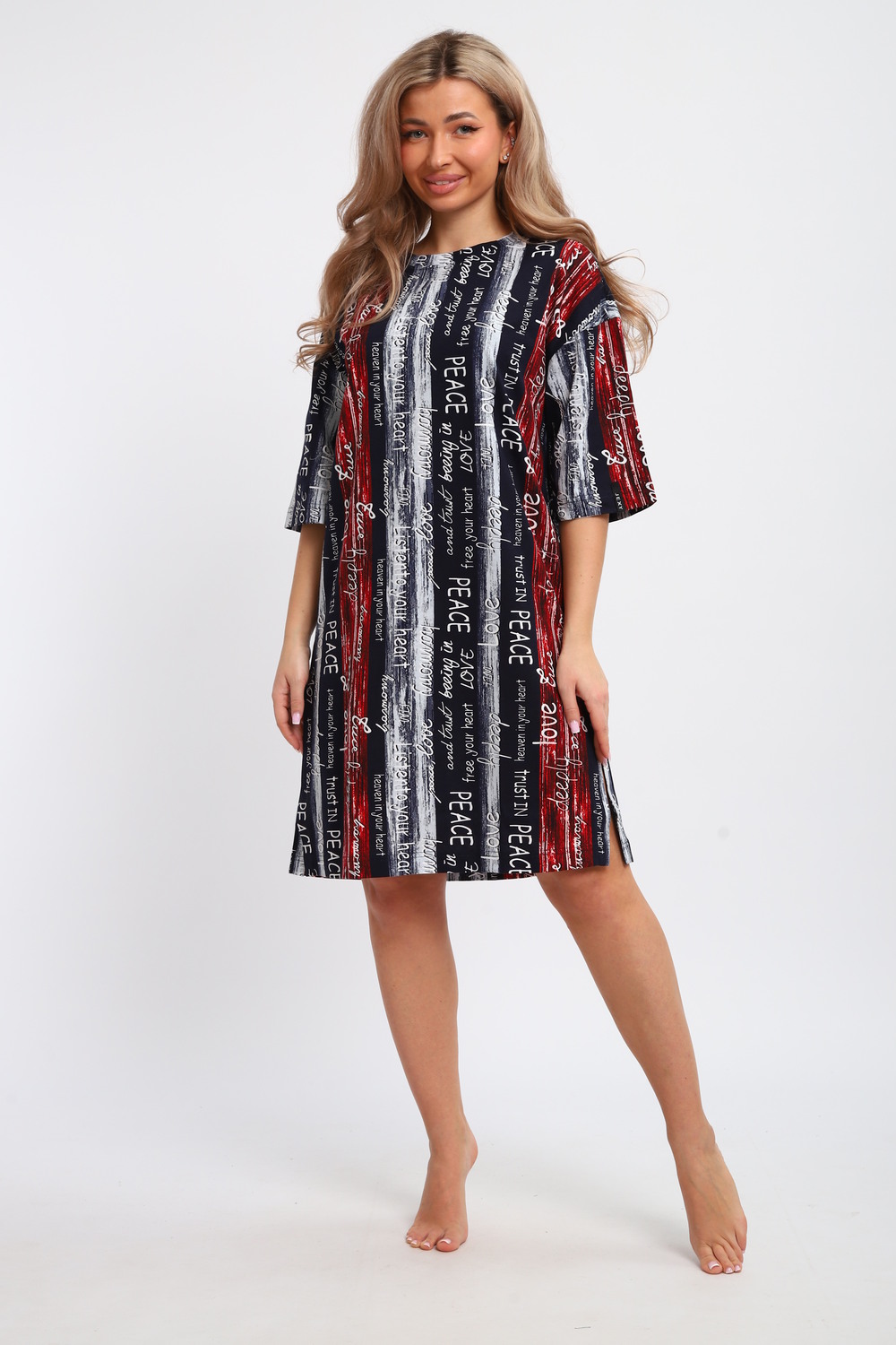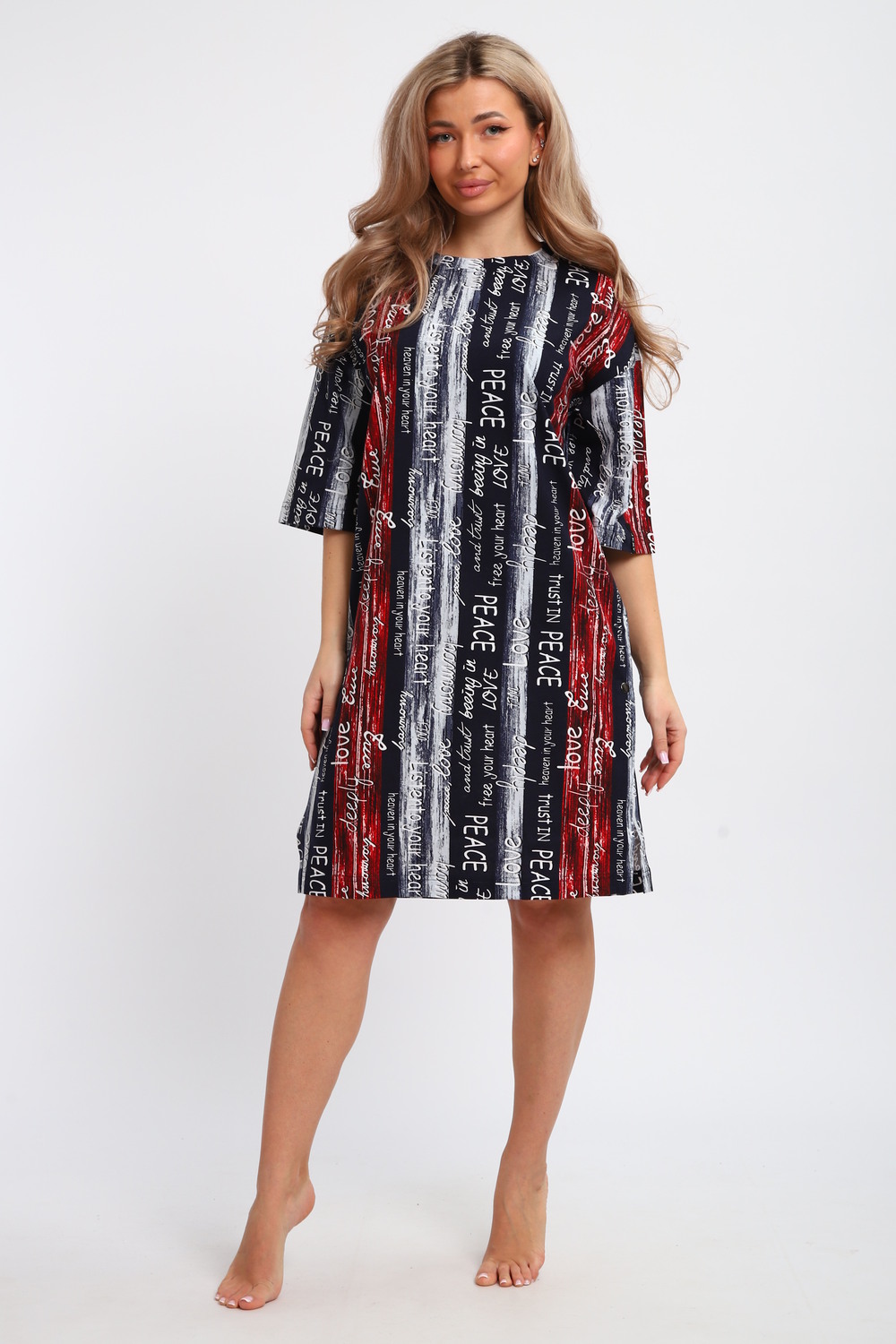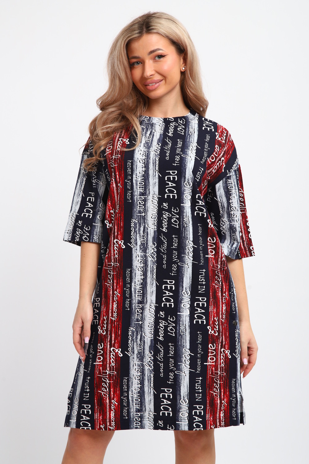 Платье-туника на клепках ТПК-01 [синий/красный/белый Полосы с буквами Love]