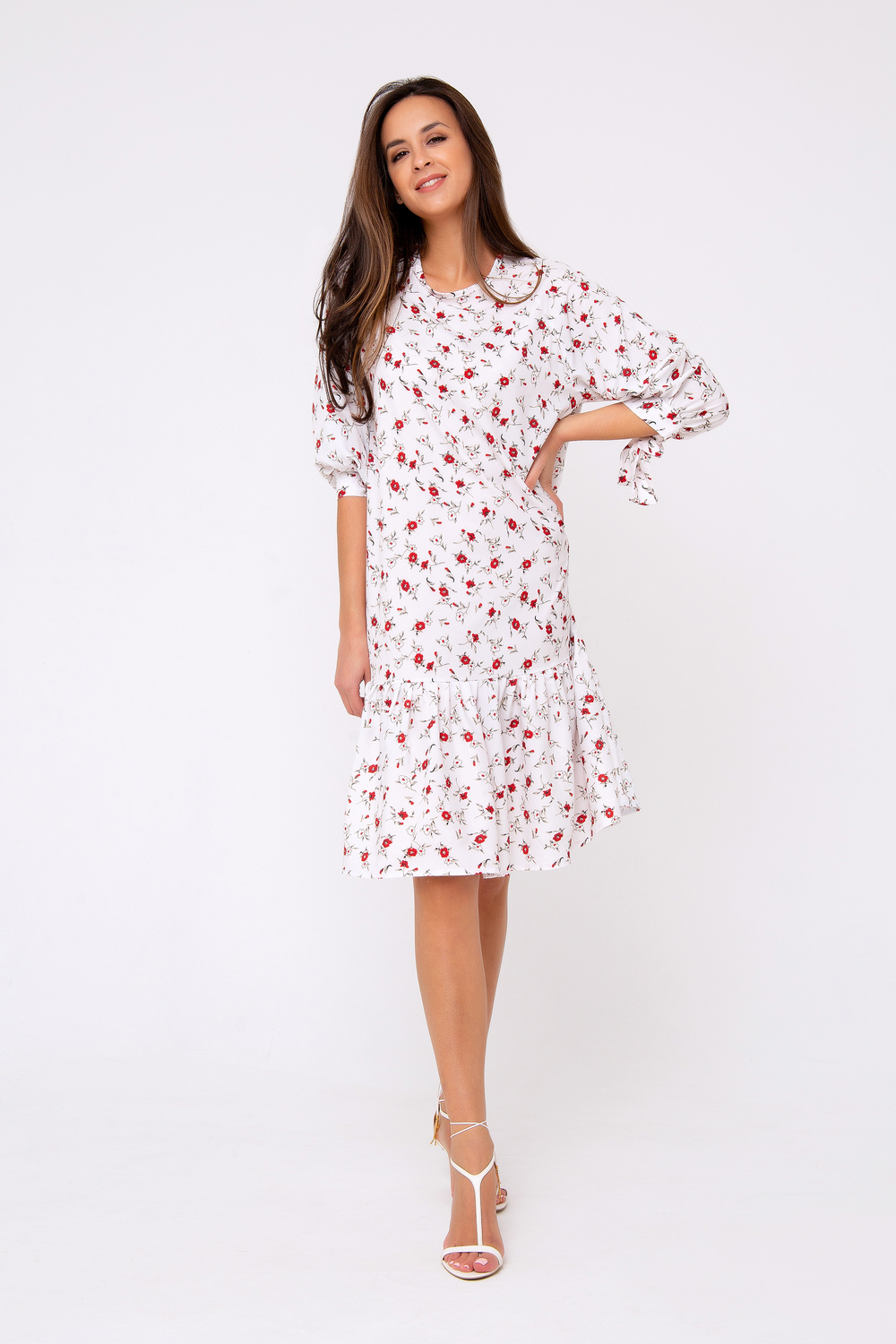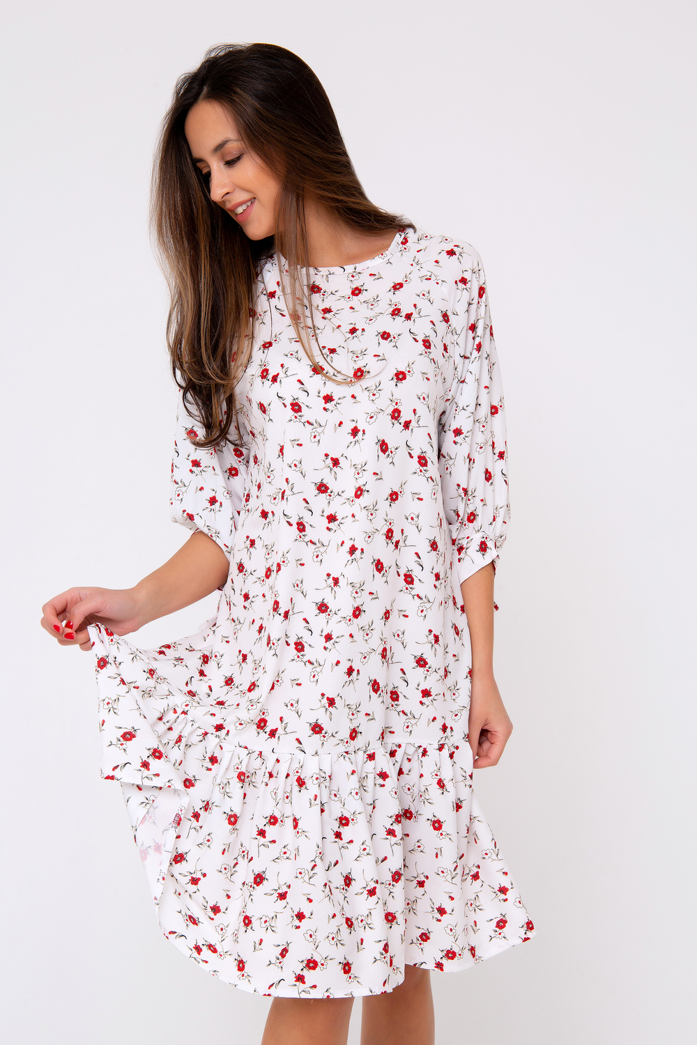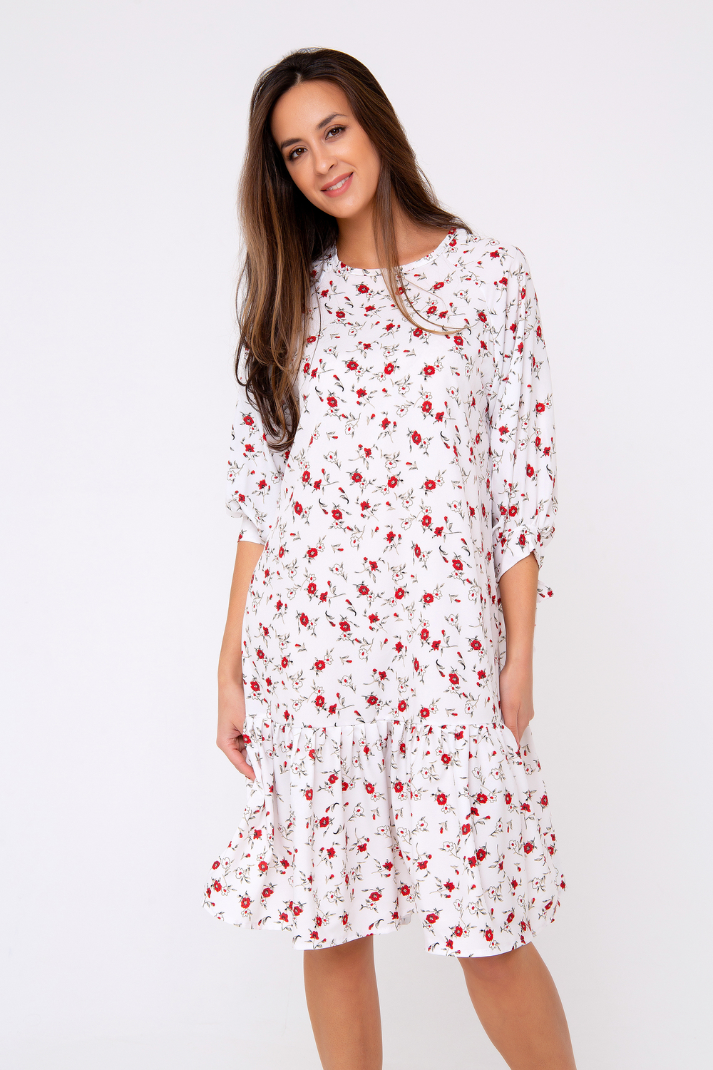 Новая премиум коллекция от Рапоза отличается весенними образами и пастельными тонами! Особенный лоск! Платье-миди свободного кроя выполнено в нежнейшем молочно-белом цвете. Женственность модели подчеркивает оригинальный принт в стиле «petit fleur» по всей длине изделия. Свободный крой подчеркнет только достоинства фигуры и добавит легкости и игривости всему образу в целом. Рукав - реглан. Горловина округлая. Модель дополнена воланом по краю изделия. Приобретите легкость, комфорт и свободу на каждый день, ведь эта вещь полюбится Вами с первого прикосновения. Все товары бренда Raposa производятся в России, используются ткани только премиального качества. Ограниченная коллекция только для этой весны! Длина изделия 98 см. Рост модели на фото 173 см (+ каблук).