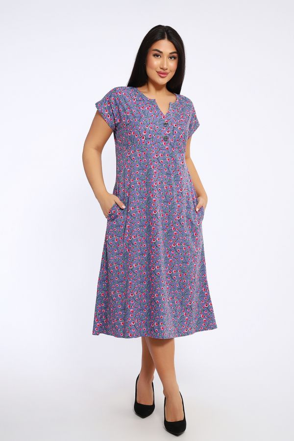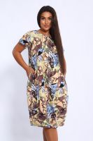 Стильное платье из кулирки. Свободный крой, округлый вырез горловины, длина "миди", разрезы в боковых швах, короткий втачной рукав, дизайнерский принт. Платье имеет большую размерную сетку и подойдет на любую фигуру. Карманы в боковых швах придают платью практичности. Платье сшито из самого качественного трикотажа – кулирки. Она состоит из чистого хлопка и неимоверно приятно в носке. Благодаря натуральному составу платье «дышит», не вызывает аллергий и раздражений. Ткань износостойкая и легко переживет множество стирок и глажек. Туника женская очень удобна и как платье на каждый день, и во время летних прогулок, пикников и веселых загородных поездок.