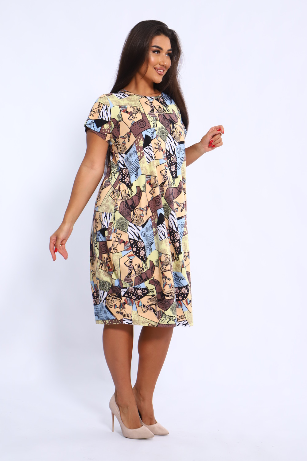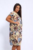 Стильное платье из кулирки. Свободный крой, округлый вырез горловины, длина "миди", разрезы в боковых швах, короткий втачной рукав, дизайнерский принт. Платье имеет большую размерную сетку и подойдет на любую фигуру. Карманы в боковых швах придают платью практичности. Платье сшито из самого качественного трикотажа – кулирки. Она состоит из чистого хлопка и неимоверно приятно в носке. Благодаря натуральному составу платье «дышит», не вызывает аллергий и раздражений. Ткань износостойкая и легко переживет множество стирок и глажек. Туника женская очень удобна и как платье на каждый день, и во время летних прогулок, пикников и веселых загородных поездок.