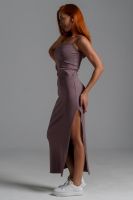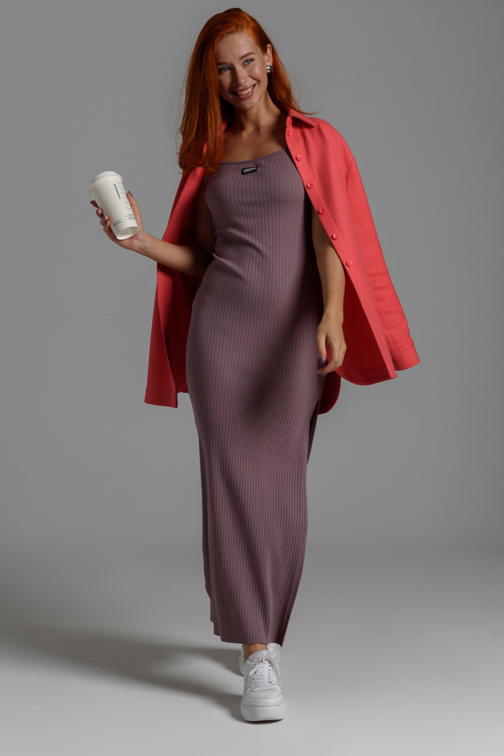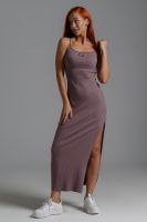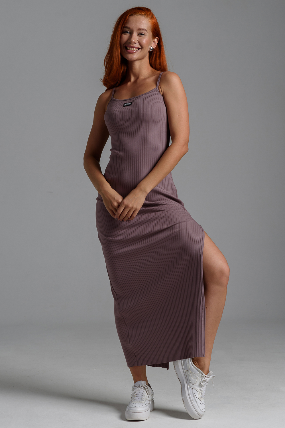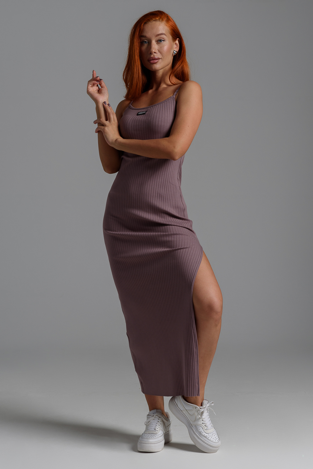 Длинное спортивное платье приталенного силуэта на тонких брительках.Мягкая ткань в рубчик обеспечивает комфорт.Идиальный вариант на каждый день или в отпуск,на море или путешествий и отдыха.Длинное сексуальное платье с разрезом идеально сочетается с любой спортивной обувью будь,то кросовки,кеды,сандали.