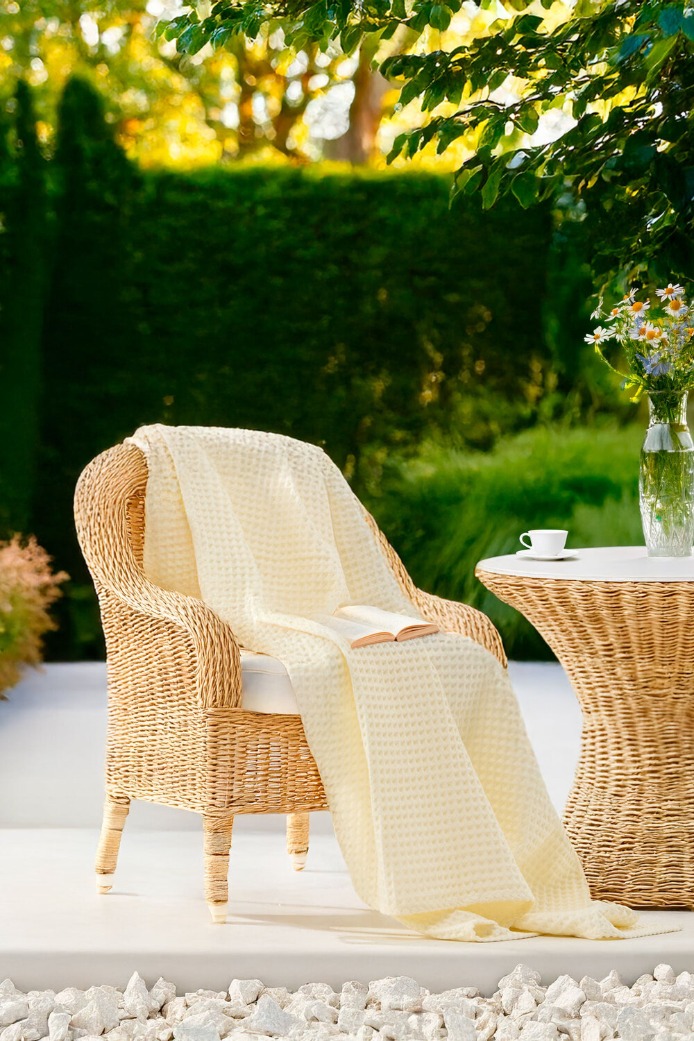 Плед вафельный 1,5 спальный 140х200 см однотонный хлопковый - универсальный элемент постельного белья для взрослых и детей с функциями легкого летнего одеяла, вафельной простыни, мягкого пледа, пляжного или банного покрывала. Плотность вафли - 320 г/м2. Отлично впитывает влагу, свободно пропускает воздух, согревает и сохраняет естественный режим терморегуляции, не вызывает аллергии и раздражения кожи даже у ребенка, обладает мягким массажным эффектом. Такой удобный вафельный плед согреет прохладной ночью, при этом под ним не жарко. Стильное и элегантное вафельное покрывало из вафли с крупными фактурными ячейками будет долгие годы украшать вашу спальню и делать каждое утро добрым.
