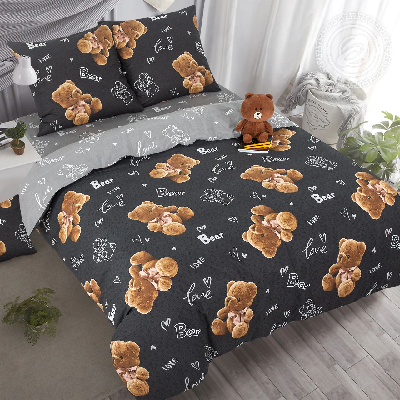 Постельное белье с мишками сейчас очень популярно. Оно ассоциируется с качеством, мягкостью и теплом. Комплект из поплина с изображением плюшевых игрушек не может не радовать и поднимает настроение. Это уютный и милый образ, как для детской, так и подростковой комнаты. Контрастные темные цвета гармонично сочетаются с пушистыми и нежными медведями. Это интересное и оригинальное решение для украшения интерьера. «Плюшевый мишка» – отличный подарок для всех!