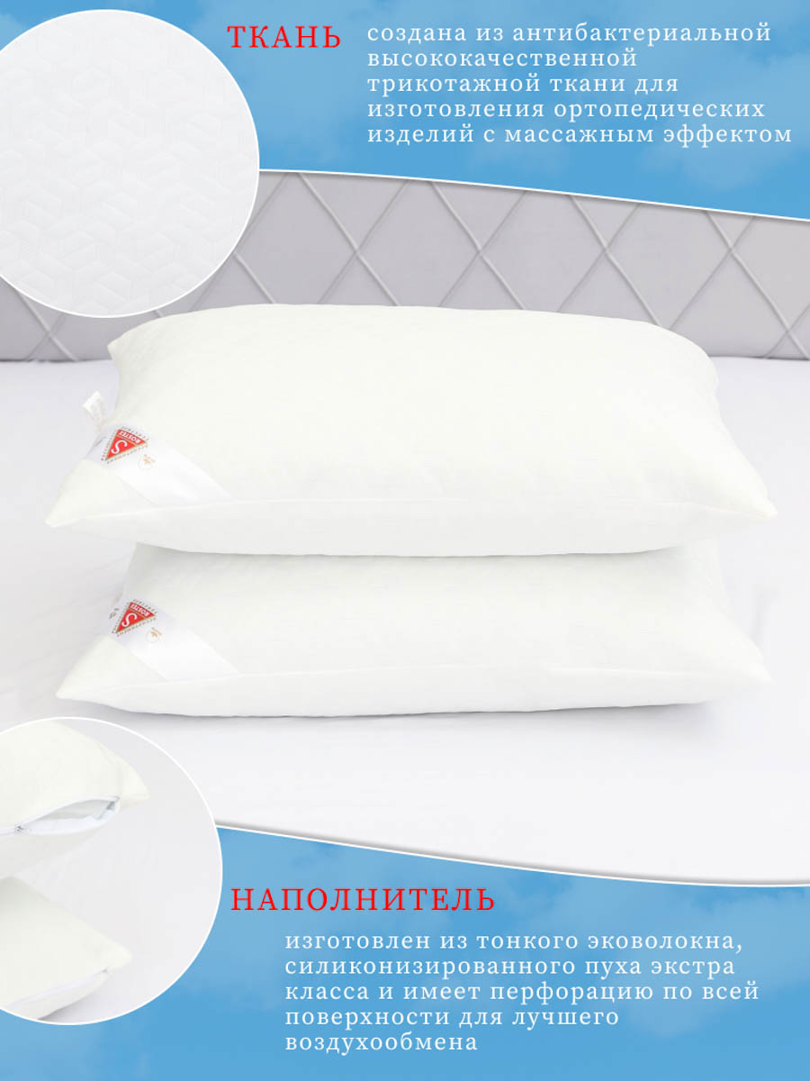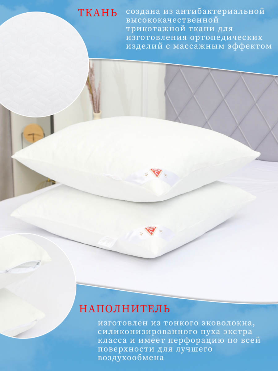 Подушка Анатомическая двухкамерная на молнии. Съёмный чехол удобен для стирки, состоящий из антибактериальной высококачественной трикотажной ткани, для изготовления артопедических изделий с массажным эфектом. Внутренний чехол состоящий из спанбонда на молнии для регулировки мягкости наполнителя, который состоит из тонкого эковолокна экстра класса и имеет перфорацию по всей поверхности для лучшего воздухообмена. Повторяет контуры тела, эффект запоминания, способствует свободной циркуляции крови, здоровая шея, здоровый позвоночник.