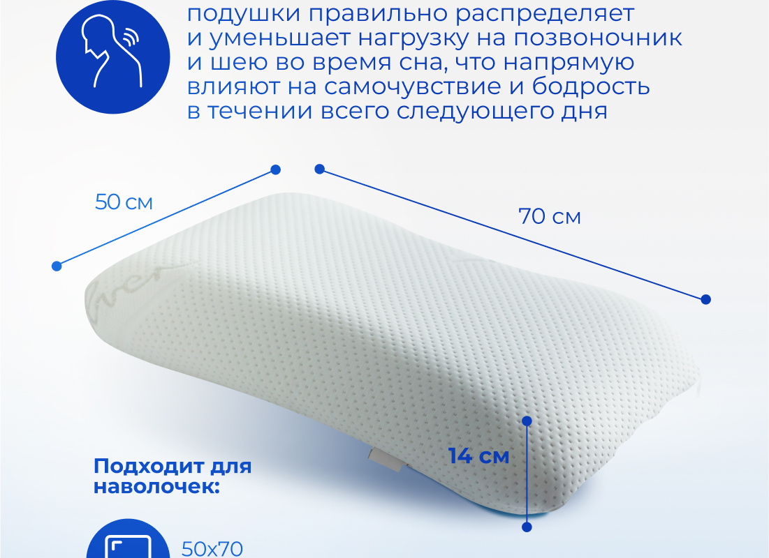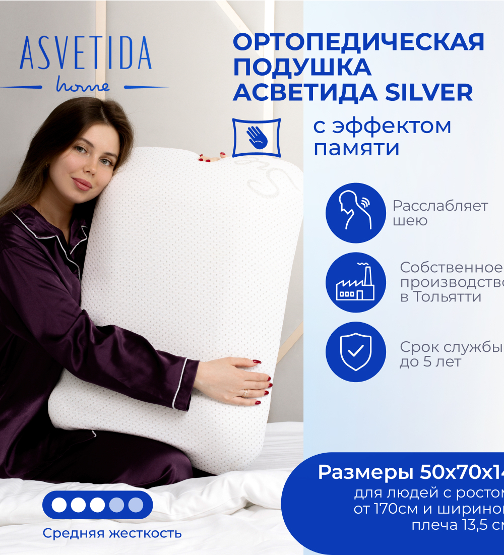 Подушка Асветида Silver 50х70х14 с эффектом памятисредней жесткости [в ассортименте]