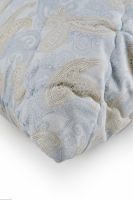 Жаккард — крупноузорчатая ткань, по внешнему виду напоминающая гобелен. Производится как из натуральных нитей — хлопка, льна, шелка, так и из синтетических, путем переплетения на специализированном жаккардовом станке. Особенности: легкость, термостойкость, прочность и долговечность.