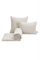 Изделия с льняным наполнителем выполнены также в льняной ткани, натуральной и приятной на ощупь. Отличаются высокой износостойкостью, обладают хорошей способностью к регулированию температурного баланса. Это настоящее наслаждение для ценителей натуральности! Льняное волокно – наполнитель исключительный по многим параметрам. Прежде всего, это гипоаллергенный материал, обладающий хорошей воздухопроницаемостью и теплоизолирующими свойствами. Он в несколько раз плотнее хлопка. Льняные постельные принадлежности подходят всем без исключения.