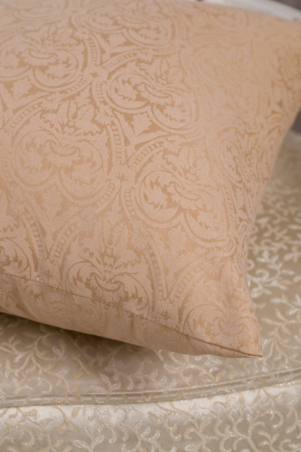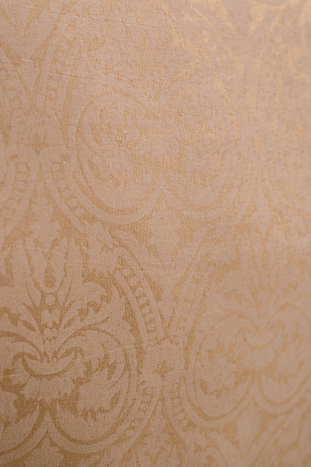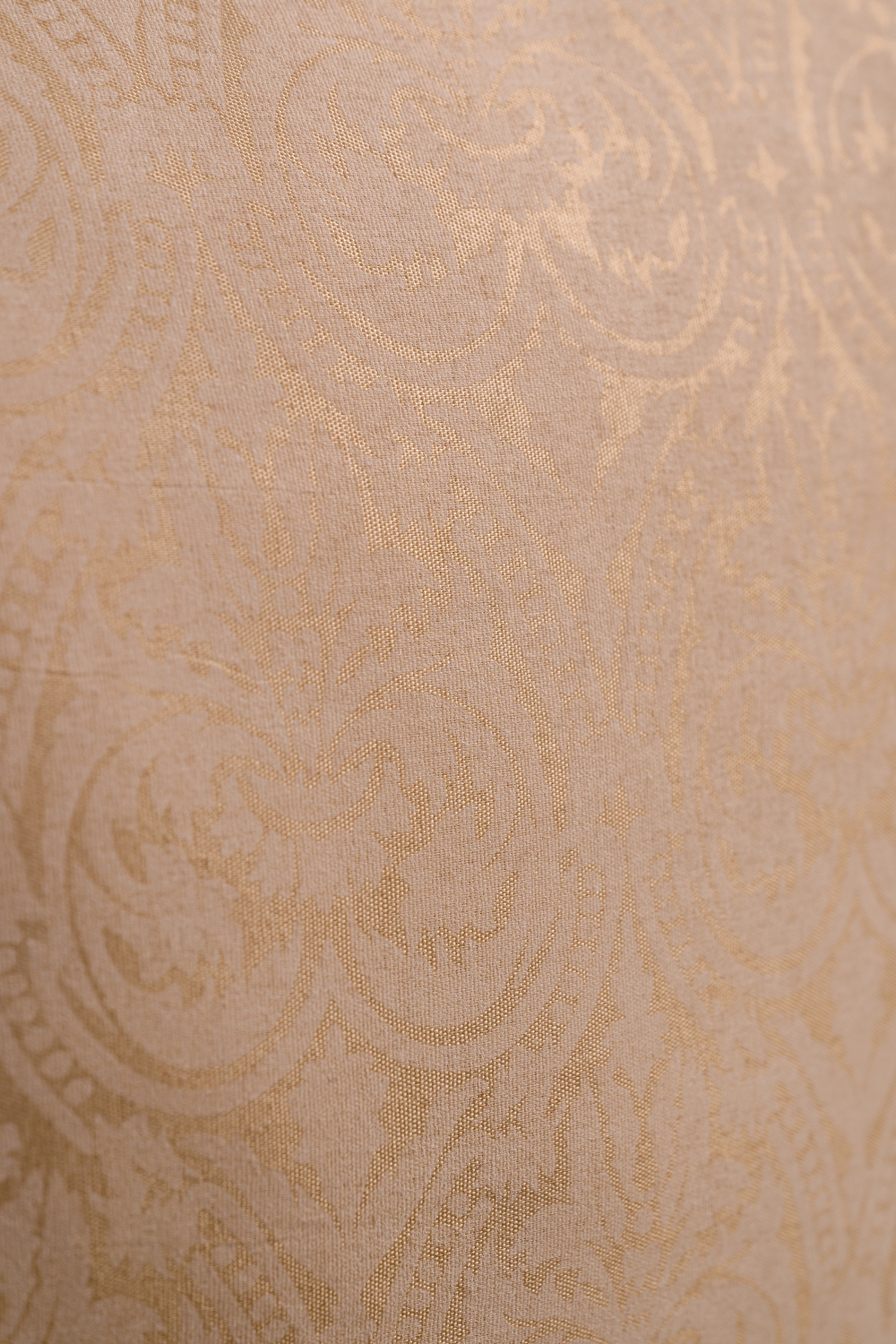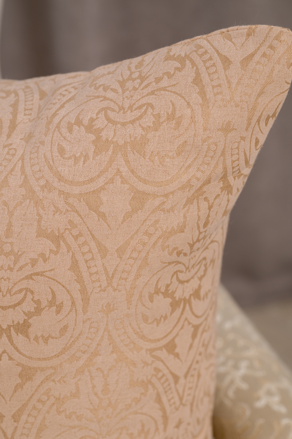 Жаккард — крупноузорчатая ткань, по внешнему виду напоминающая гобелен. Производится как из натуральных нитей — хлопка, льна, шелка, так и из синтетических, путем переплетения на специализированном жаккардовом станке. Особенности: легкость, термостойкость, прочность и долговечность.
