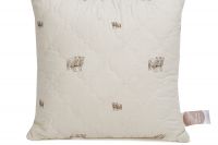 С давних времен известны лечебные свойства овечьей шерсти. Входящий в ее состав ланолин, а также микромассажные действия шерстинок, улучшают состояние кожи, снимают болевые ощущения, согревают. Сон на такой подушке расслабляет и оздоравливает. Упругий наполнитель из силиконизированного волокна и лебяжьего микроволокна хорошо поддерживает голову и шею во время сна.