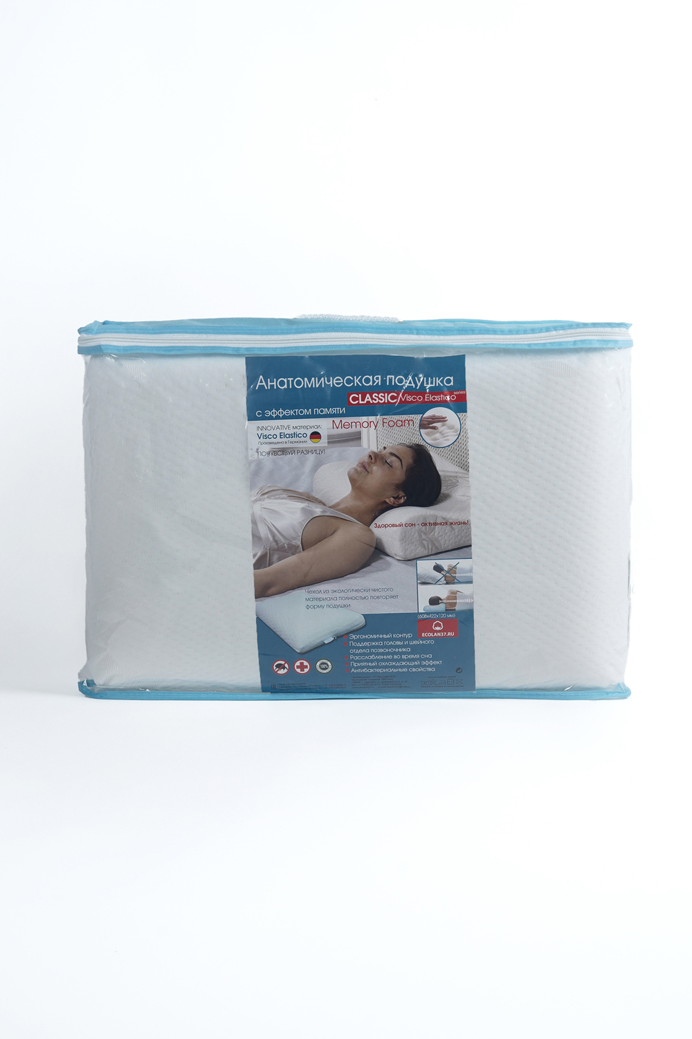 Наполнитель - Visco Латекс с эффектом памяти. Чехол - вентилируемый трикотаж 50% хлопок, 50% микрофибра. Плотность полотна трикотажа - 280гр/м2. Размер - 608х422х120мм. Ортопедическая подушка КЛАССИК - классическая форма данной подушки привычна и очень удобна для большинства пользователей. Подушка способствует физиологически правильному положению головы и шеи во время сна, обеспечивает разгрузку мышц и связочного аппарата шеи, благодаря этому нормализует кровоснабжение. Обеспечивает профилактику утомляемости и головных болей за счет нормализации кровоснабжения. Для профилактики болезней опорно-двигательной системы.