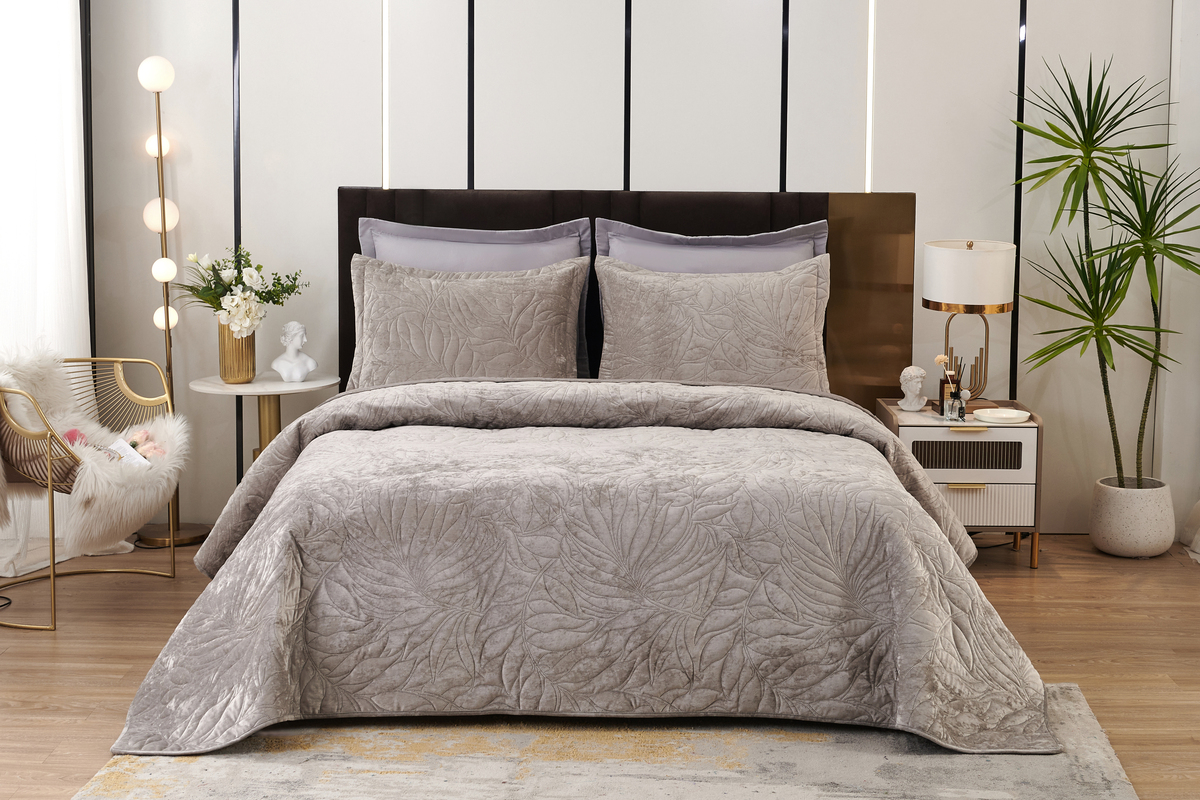 Велюровое покрывало Роузмор – это беспроигрышный вариант подарка на любой повод. Нет такого человека, который не хотел бы окружить себя комфортом и красотой. Безусловно шикарное с эстетической точки зрения покрывало Роузмор несомненно станет желанным элементом декора спальни. Крупный завораживающий узор летящих листьев придает покрывалу легкость и дарит ощущение свежести морского бриза. Бархатистая мягкость велюра погружает в бескрайнее море тактильного наслаждения. Материалы не только приятны визуально и тактильно, но и абсолютно безопасны, благодаря натуральному составу. Вискозное полотно обладает отличной гигроскопичностью и воздухопроницаемостью, что обеспечивает комфортное использования покрывала в любое время года. Покрывала Роузмор представлены в трех классических цветах: пепельная роза, крем, светло-серый.