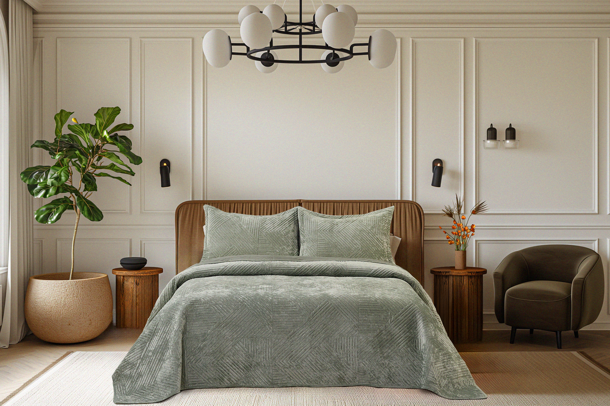 За что мы ценим покрывало Шелфорд? За истинно мужские качества: прямоту и четкость, классический джентельменский образ, практичность, функциональность, комфорт и нежную заботу. Брутальный и строгий снаружи, Шелфорд удивит Вас своей необыкновенной мягкостью с первого прикосновения. Для покрывала Шелфорд мы подобрали особенно нежный велюр с бархатистой, играющей оттенками цвета текстурой. Глубокие насыщенные цвета придают особый шик велюровому покрывалу. Материалы не только приятны визуально и тактильно, но и абсолютно безопасны, благодаря натуральному составу. Вискозное полотно обладает отличной гигроскопичностью и воздухопроницаемостью, что обеспечивает комфортное использования покрывала в любое время года. Покрывала Шелфорд представлены в пяти насыщенных акцентных цветах: изумруд, пепельная роза, светло-серый, крем, серый.
