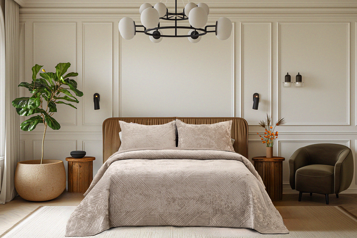 За что мы ценим покрывало Шелфорд? За истинно мужские качества: прямоту и четкость, классический джентельменский образ, практичность, функциональность, комфорт и нежную заботу. Брутальный и строгий снаружи, Шелфорд удивит Вас своей необыкновенной мягкостью с первого прикосновения. Для покрывала Шелфорд мы подобрали особенно нежный велюр с бархатистой, играющей оттенками цвета текстурой. Глубокие насыщенные цвета придают особый шик велюровому покрывалу. Материалы не только приятны визуально и тактильно, но и абсолютно безопасны, благодаря натуральному составу. Вискозное полотно обладает отличной гигроскопичностью и воздухопроницаемостью, что обеспечивает комфортное использования покрывала в любое время года. Покрывала Шелфорд представлены в пяти насыщенных акцентных цветах: изумруд, пепельная роза, светло-серый, крем, серый.