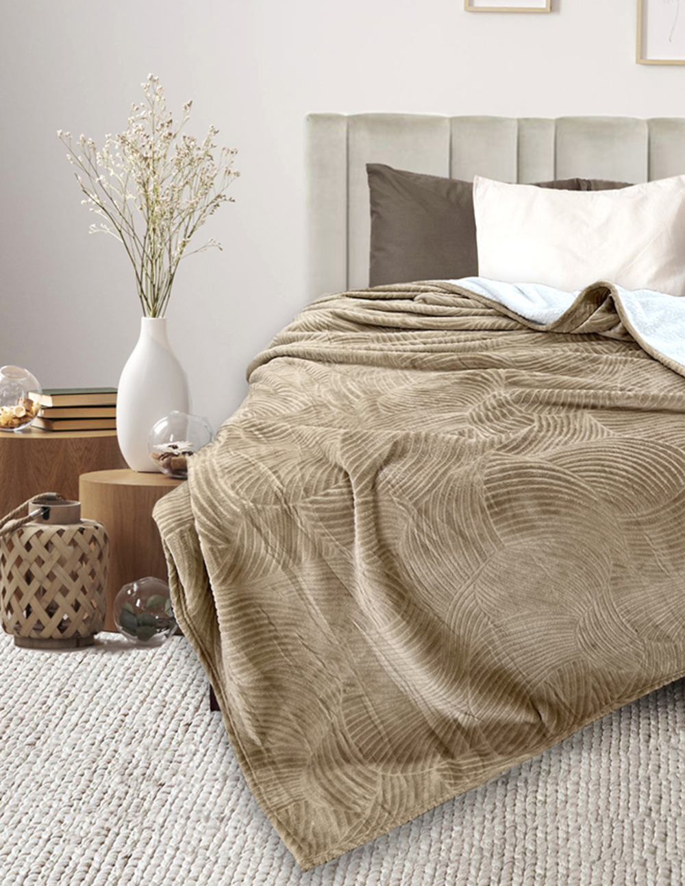 Плед-покрывало из велсофта. Красивый рисунок, приятная оборотная сторона, можно отогнуть при застилании кровати. Отличный вариант для подарка, достойный и красивый. Верхний слой с выбитым рисунком (стрижка) плотность 190 гр, Нижний слой шерпа плотностью 160 гр Слои между собой склеены, и составляют единое полотно.