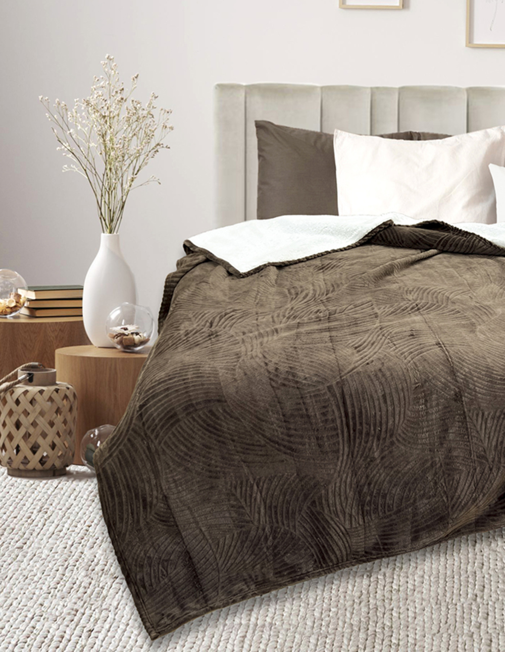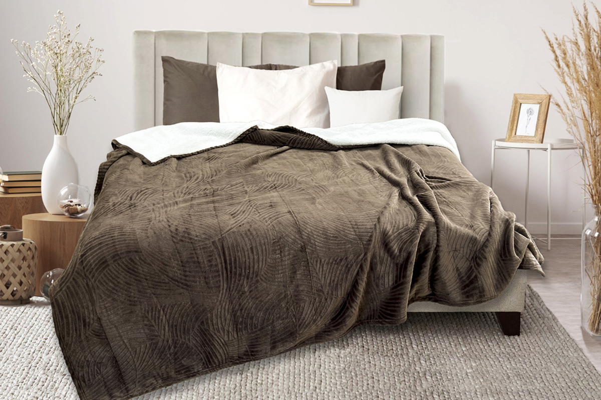 Плед-покрывало из велсофта. Красивый рисунок, приятная оборотная сторона, можно отогнуть при застилании кровати. Отличный вариант для подарка, достойный и красивый. Верхний слой с выбитым рисунком (стрижка) плотность 190 гр, Нижний слой шерпа плотностью 160 гр Слои между собой склеены, и составляют единое полотно.