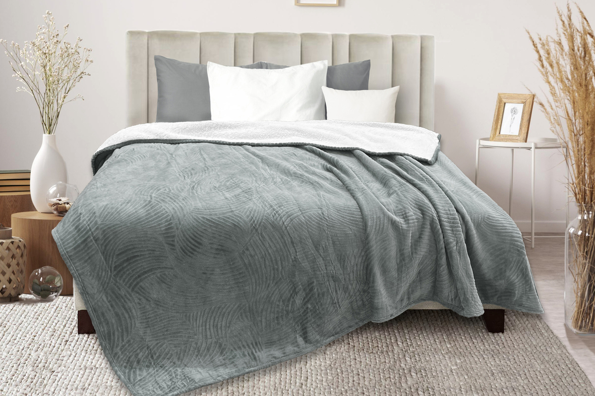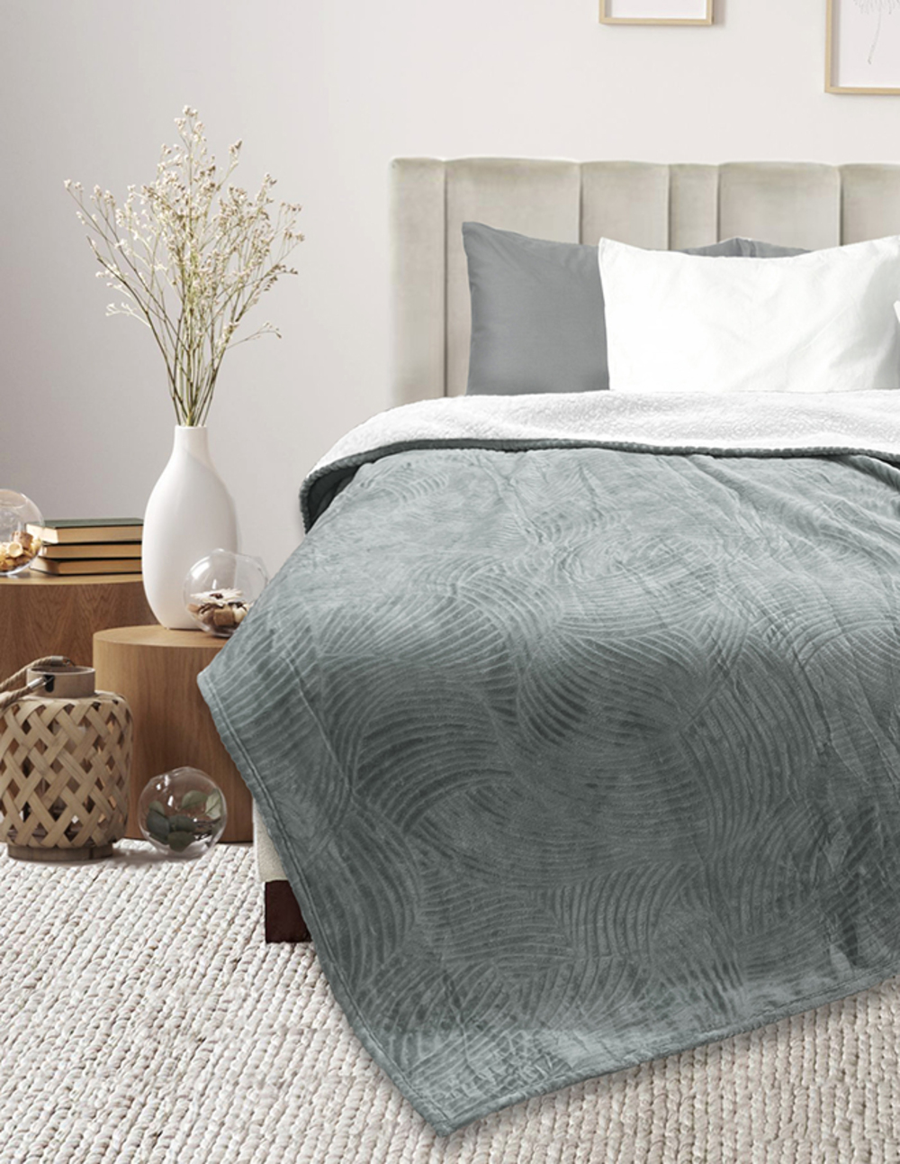 Плед-покрывало из велсофта. Красивый рисунок, приятная оборотная сторона, можно отогнуть при застилании кровати. Отличный вариант для подарка, достойный и красивый. Верхний слой с выбитым рисунком (стрижка) плотность 190 гр, Нижний слой шерпа плотностью 160 гр Слои между собой склеены, и составляют единое полотно.