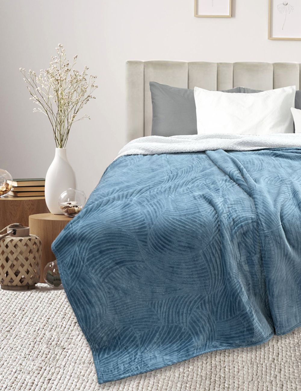 Плед-покрывало из велсофта. Красивый рисунок, приятная оборотная сторона, можно отогнуть при застилании кровати. Отличный вариант для подарка, достойный и красивый. Верхний слой с выбитым рисунком (стрижка) плотность 190 гр, Нижний слой шерпа плотностью 160 гр Слои между собой склеены, и составляют единое полотно.